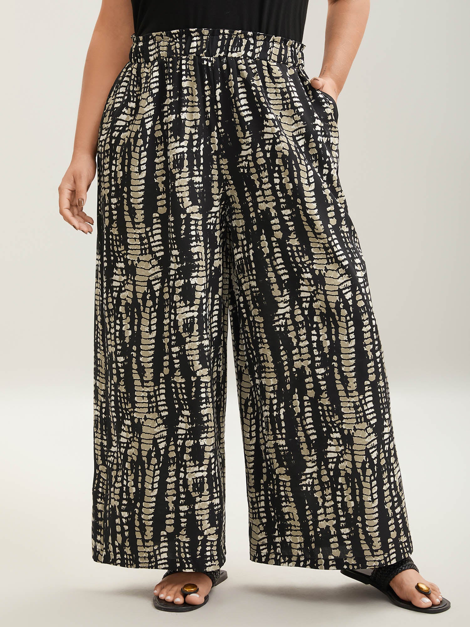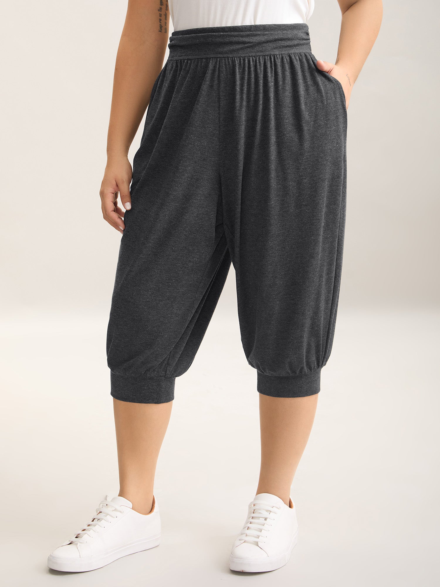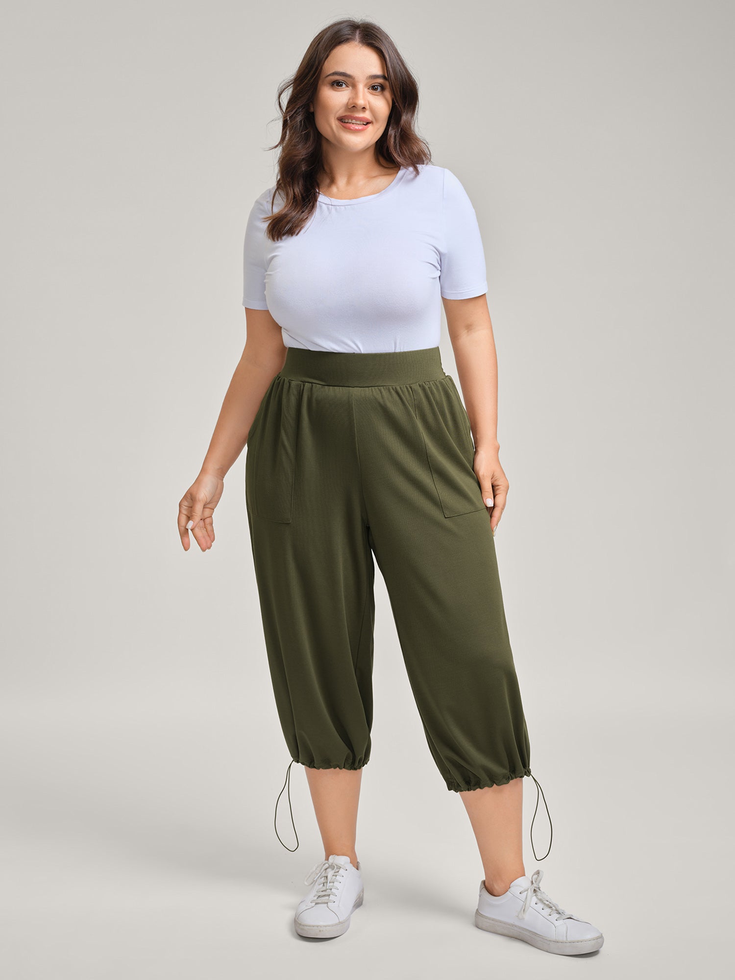 Stretchy Adjustable Cuffs Wide-Leg Pants