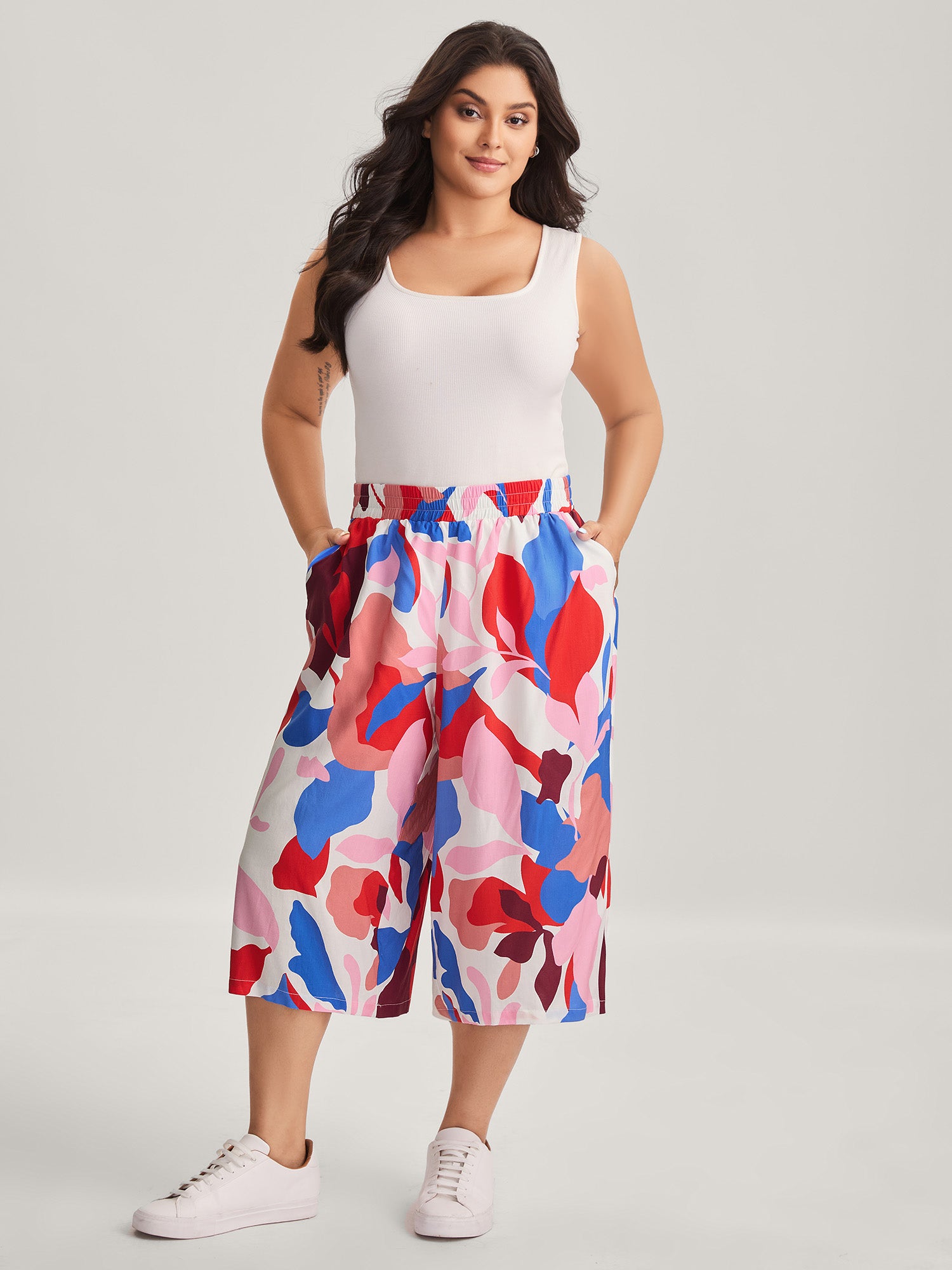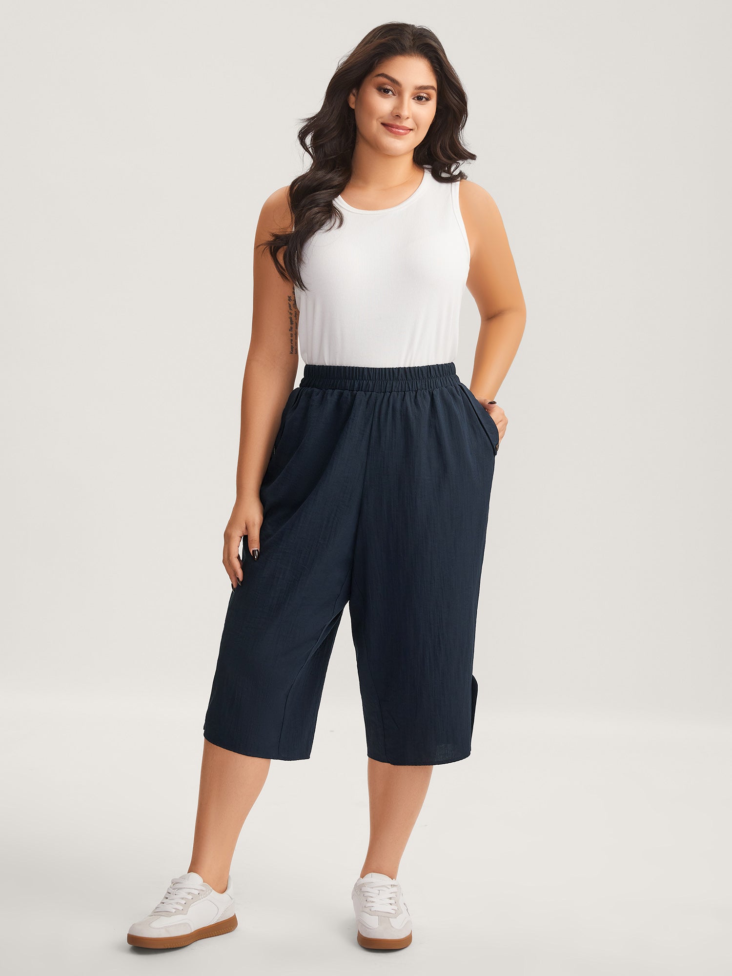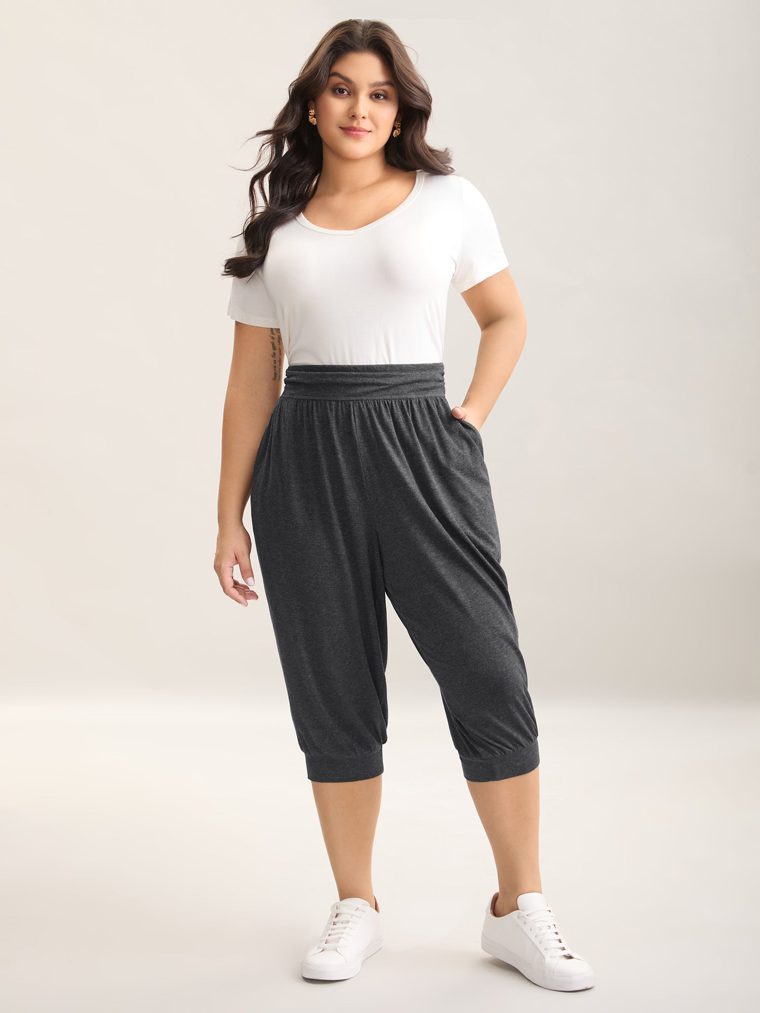 Stretchy Adjustable Cuffs Wide-Leg Pants