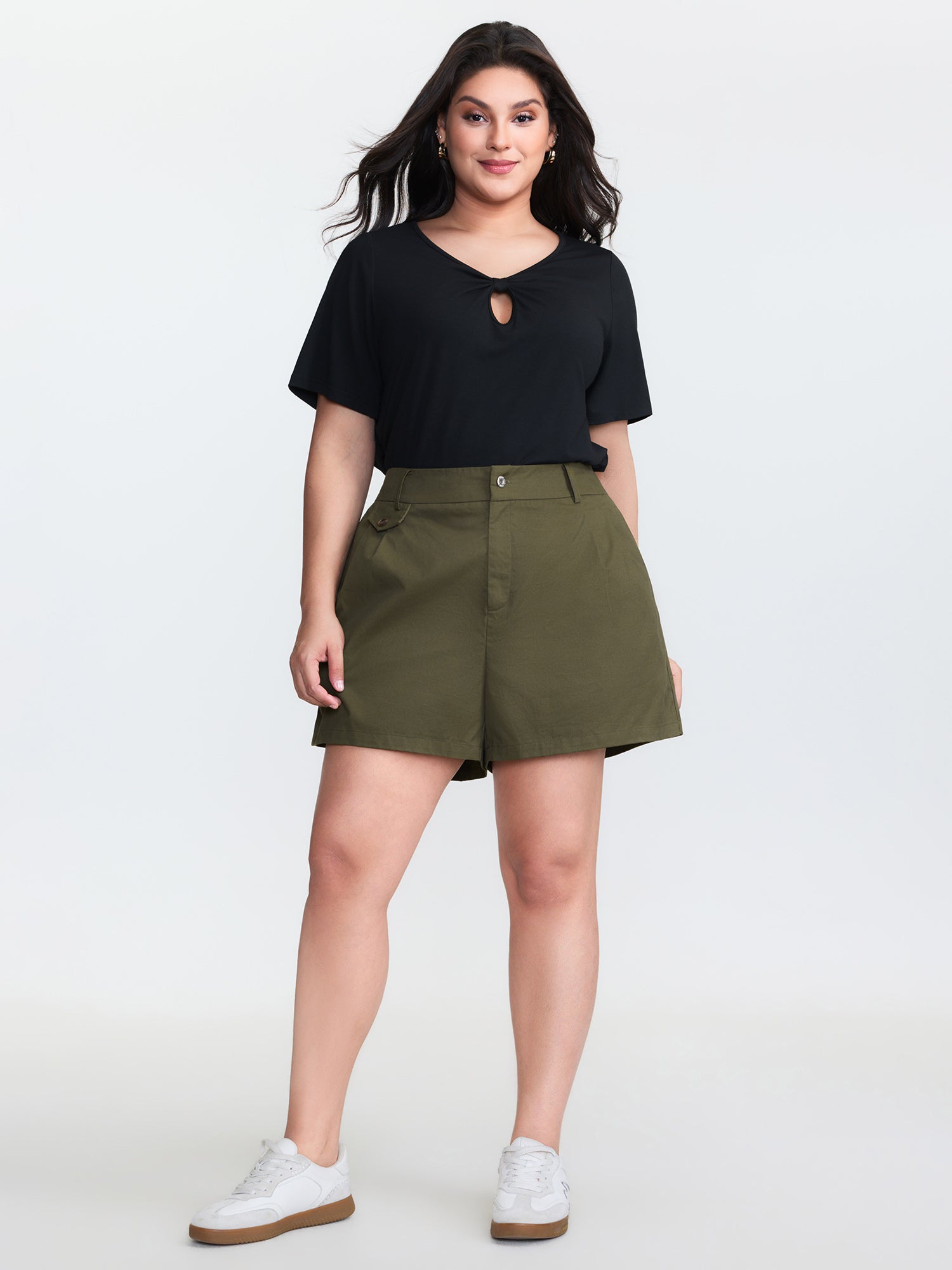 Stretchy Slit Straight-Leg Shorts