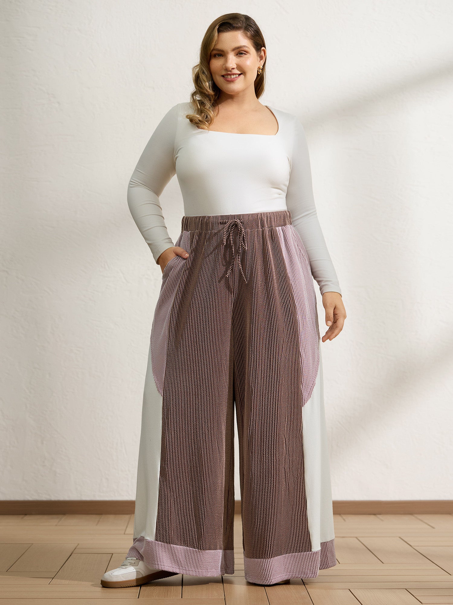 Colorblock Waist Drawstring Wide-Leg Pants