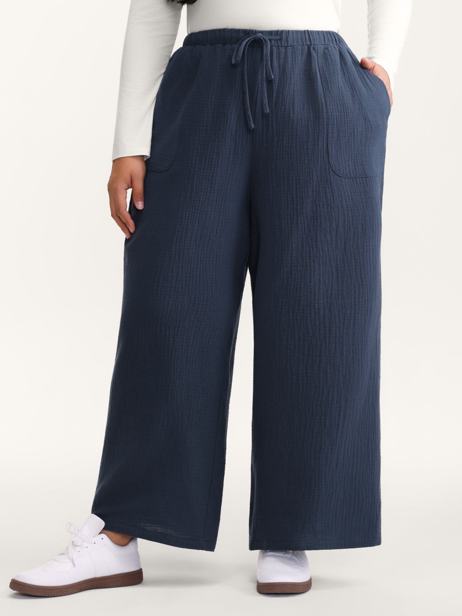 Cotton Textured Waist Drawstring Straight-Leg Pants