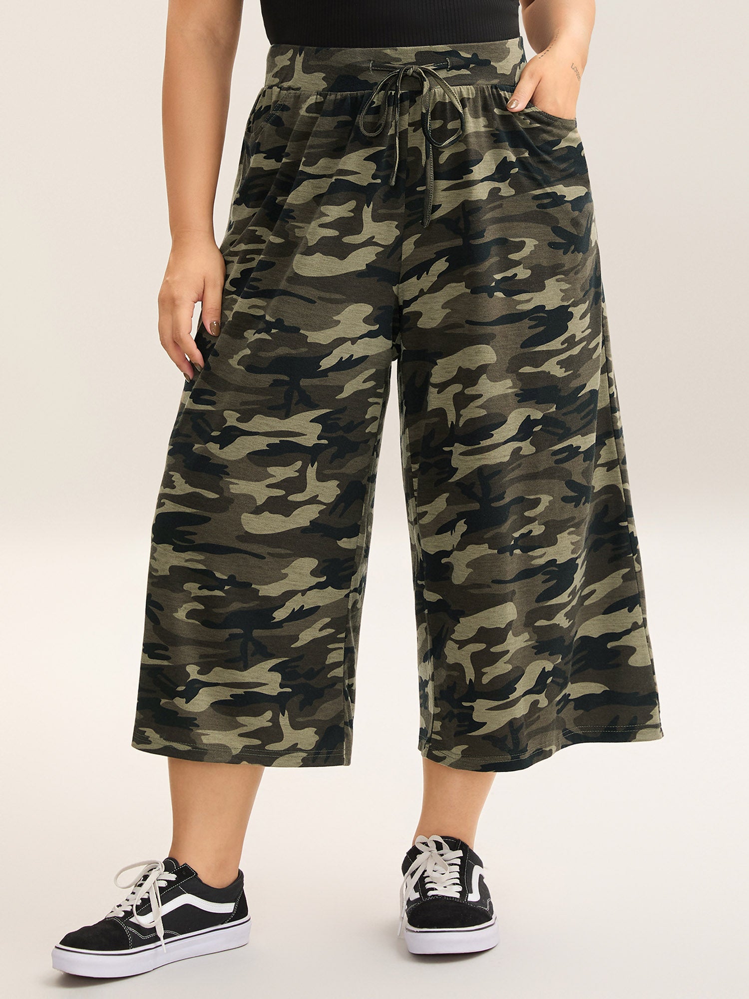 Camouflage Print Tie-Waist Wide-Leg Pants