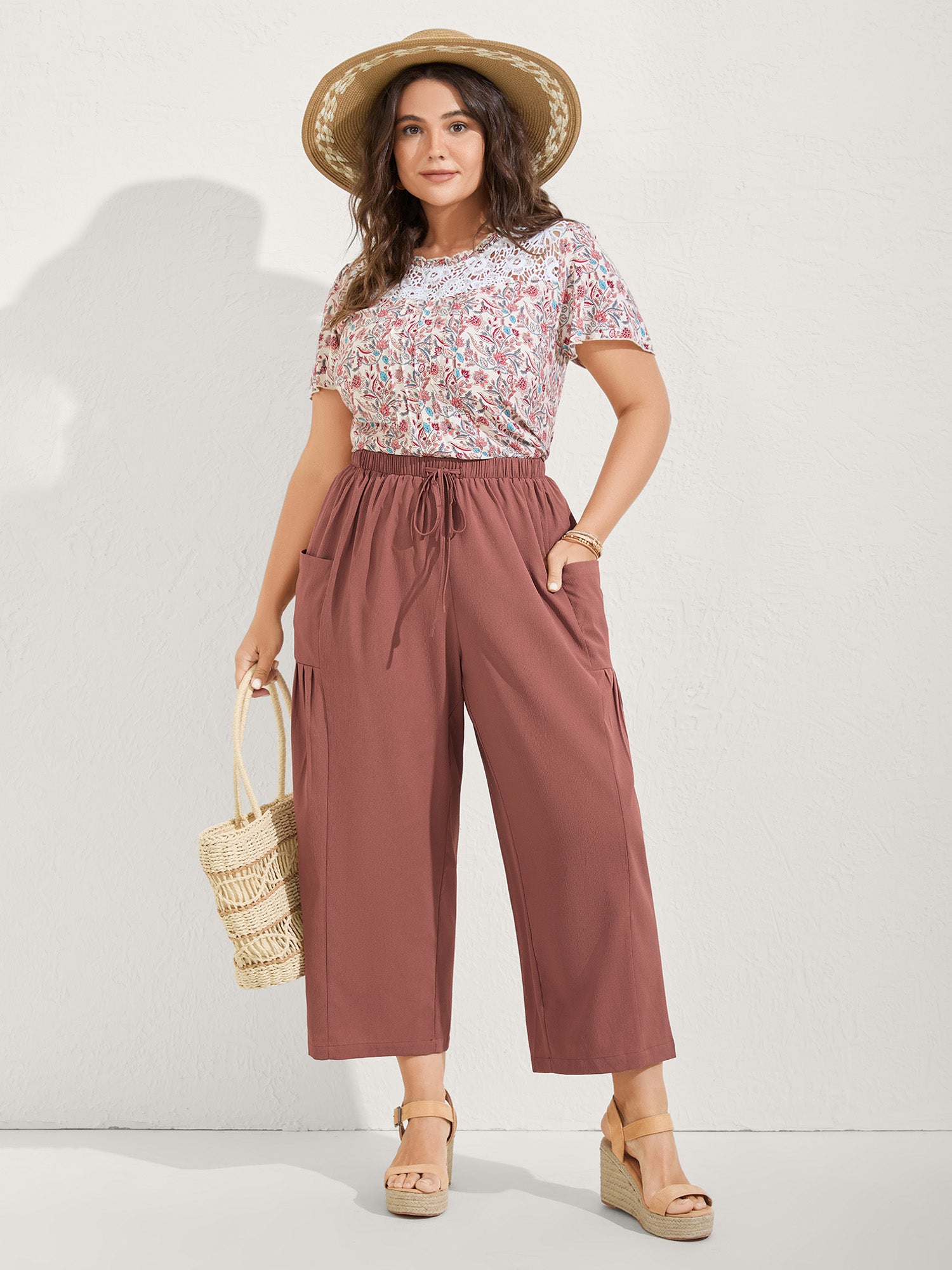 Floral Collage Drawstring Wide-Leg Pants