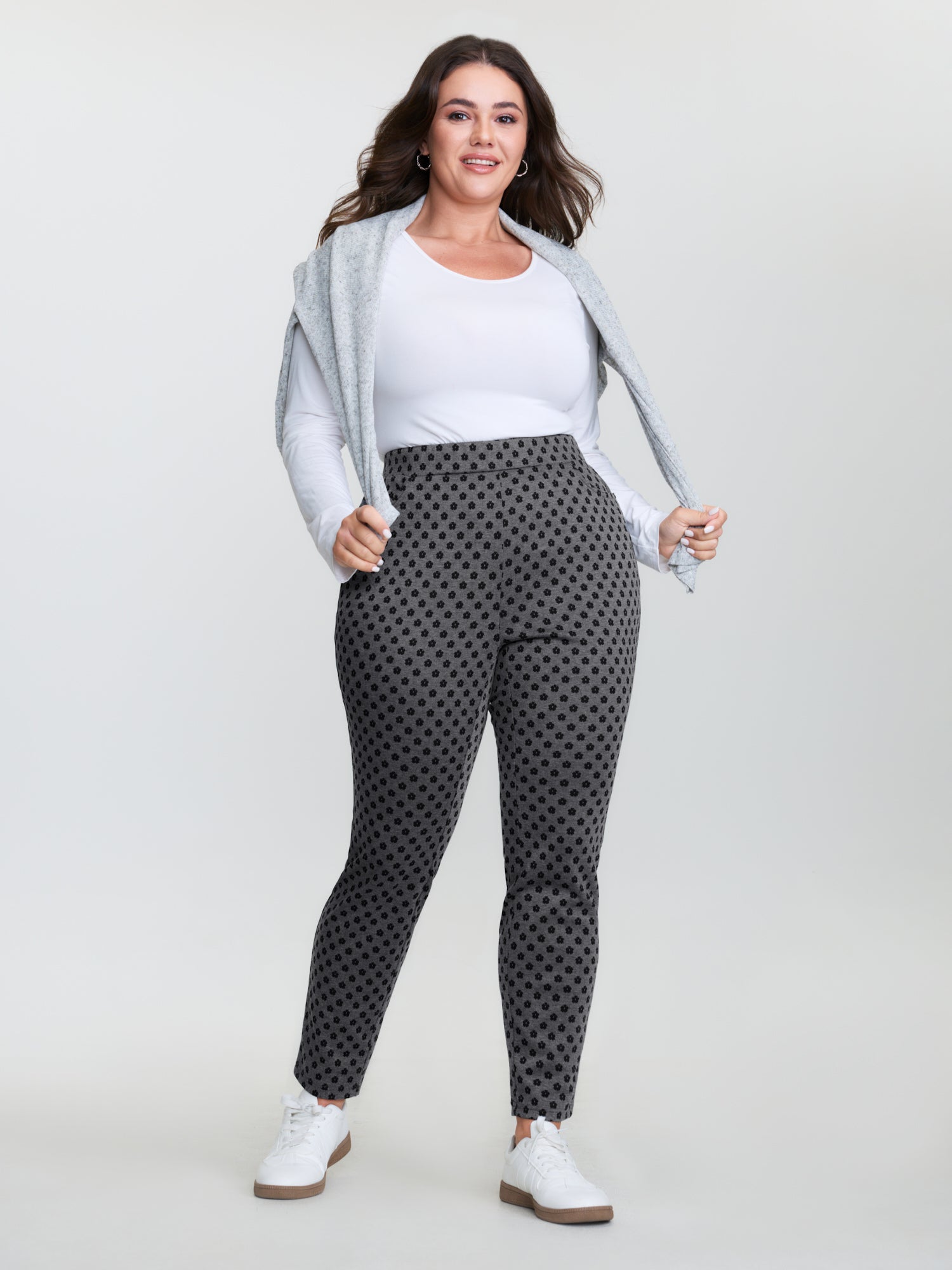 Monochrome Floral Print Stretchy Pants