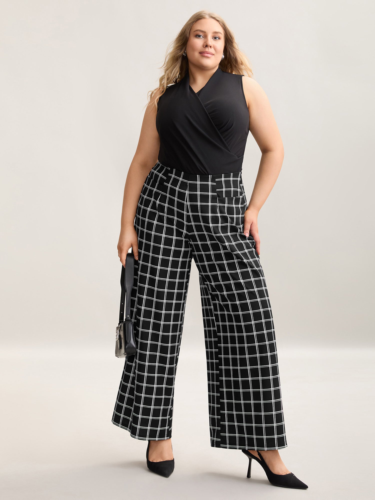 Plaid Pattern Stretchy Waist Wide-Leg Pants