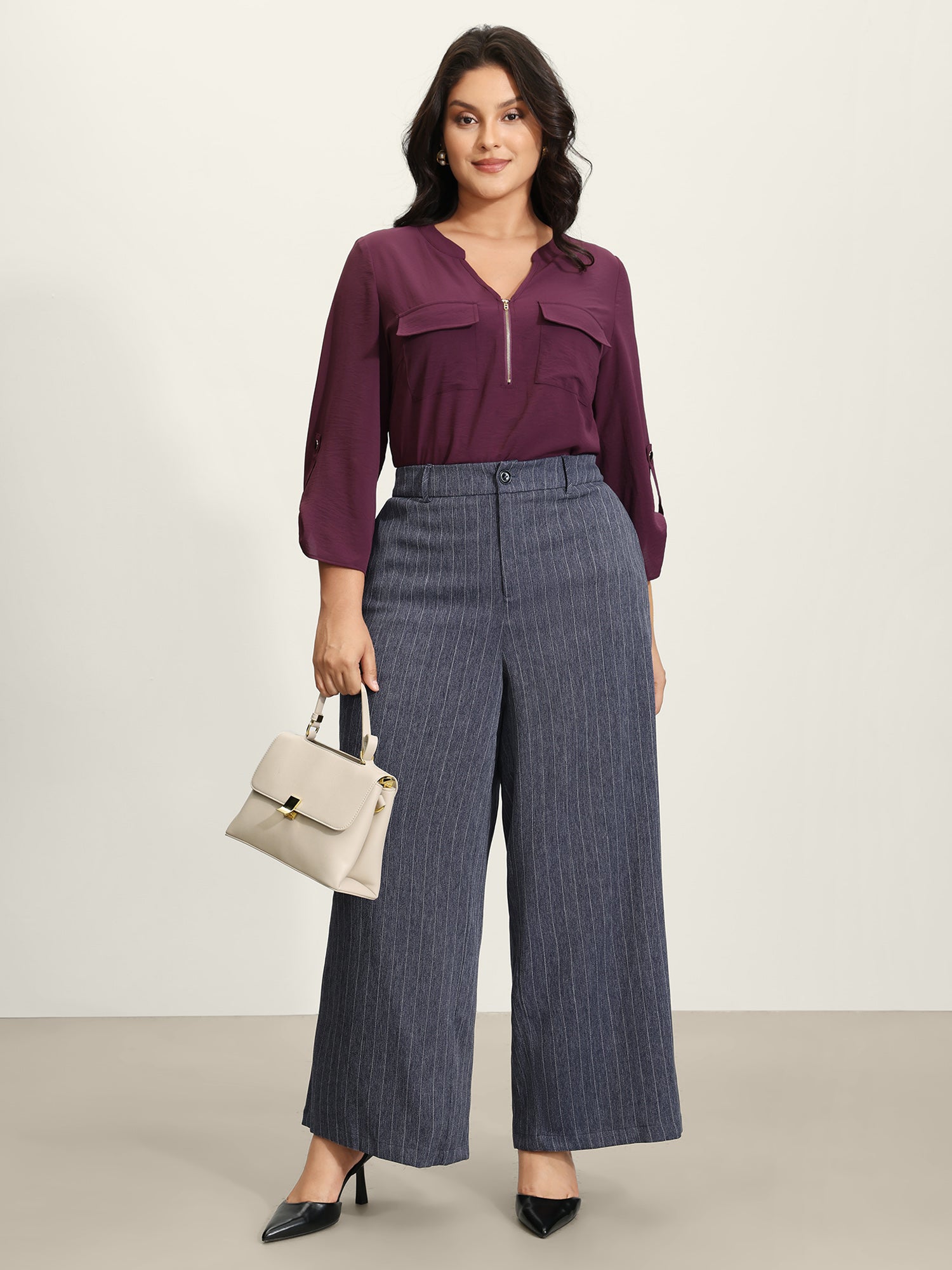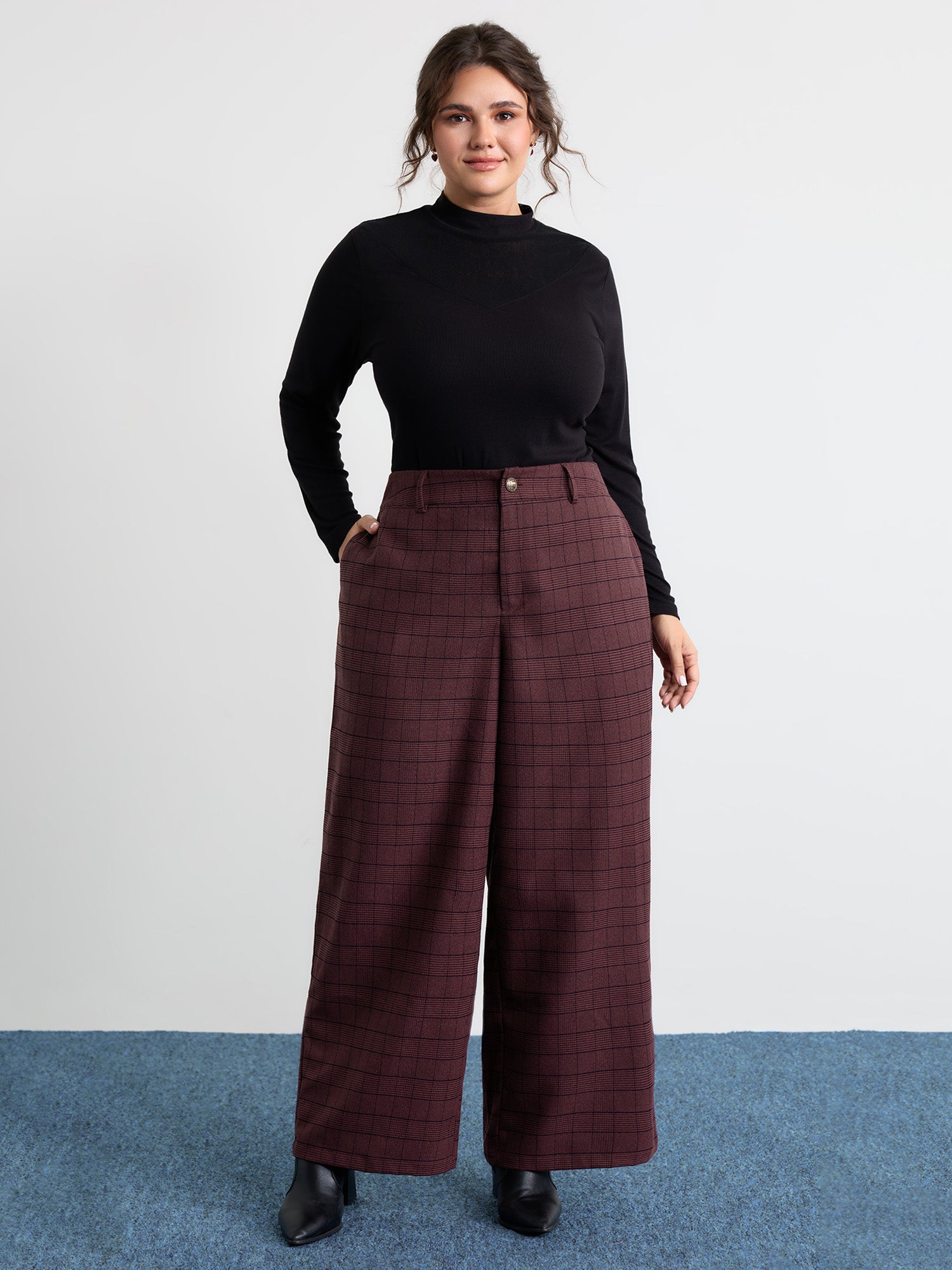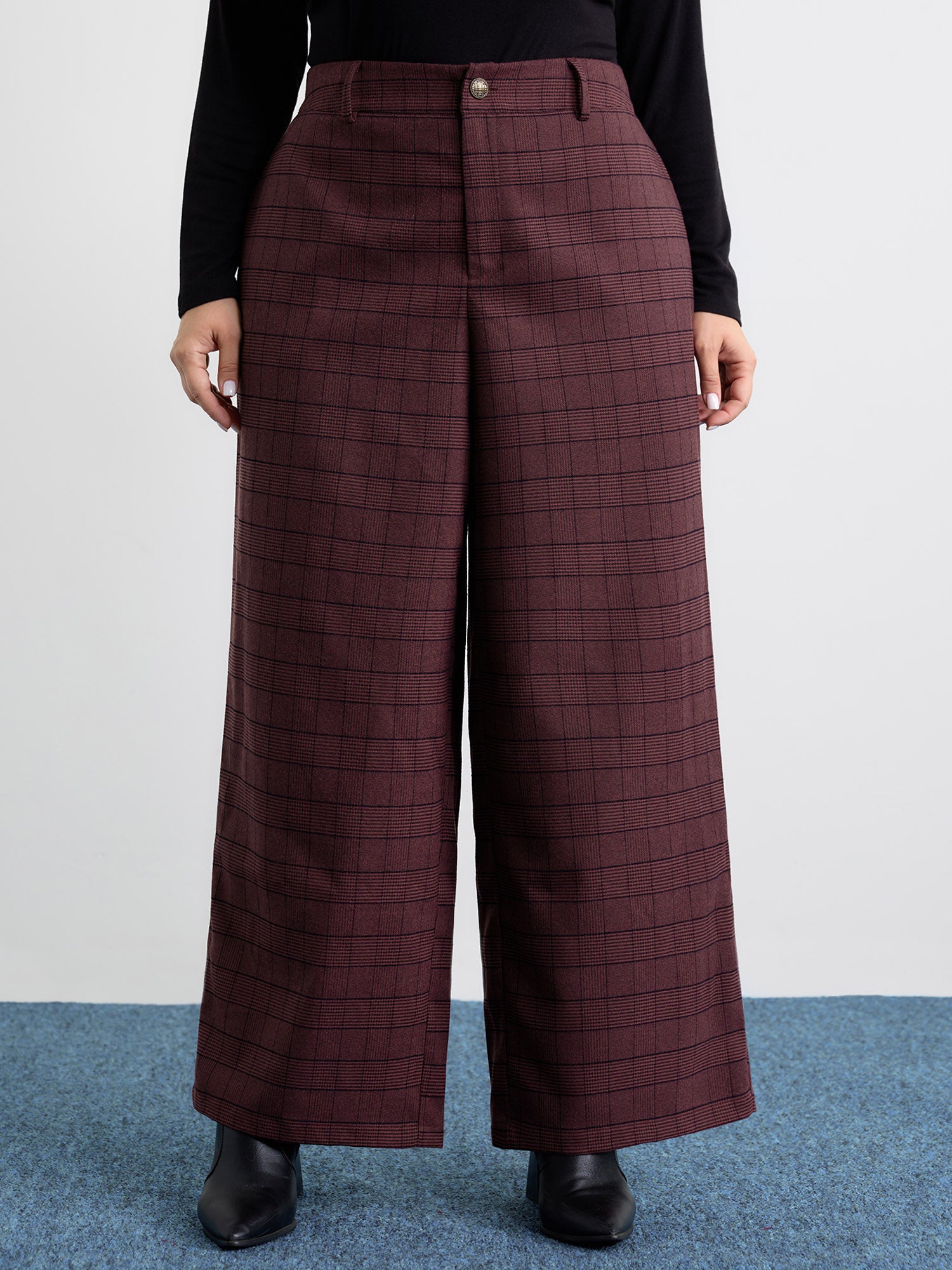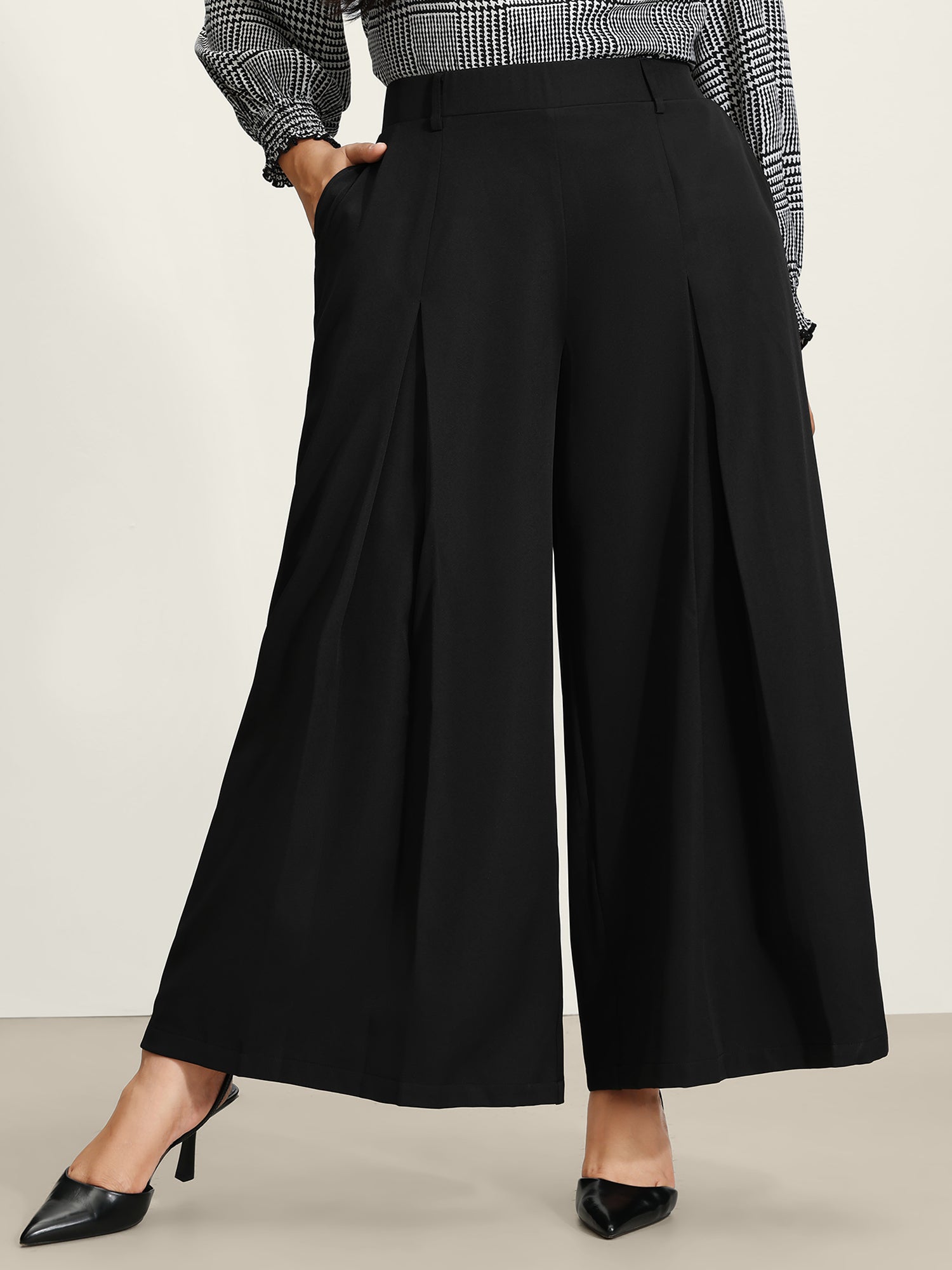 Plain Pleated Details Wide-Leg Pants