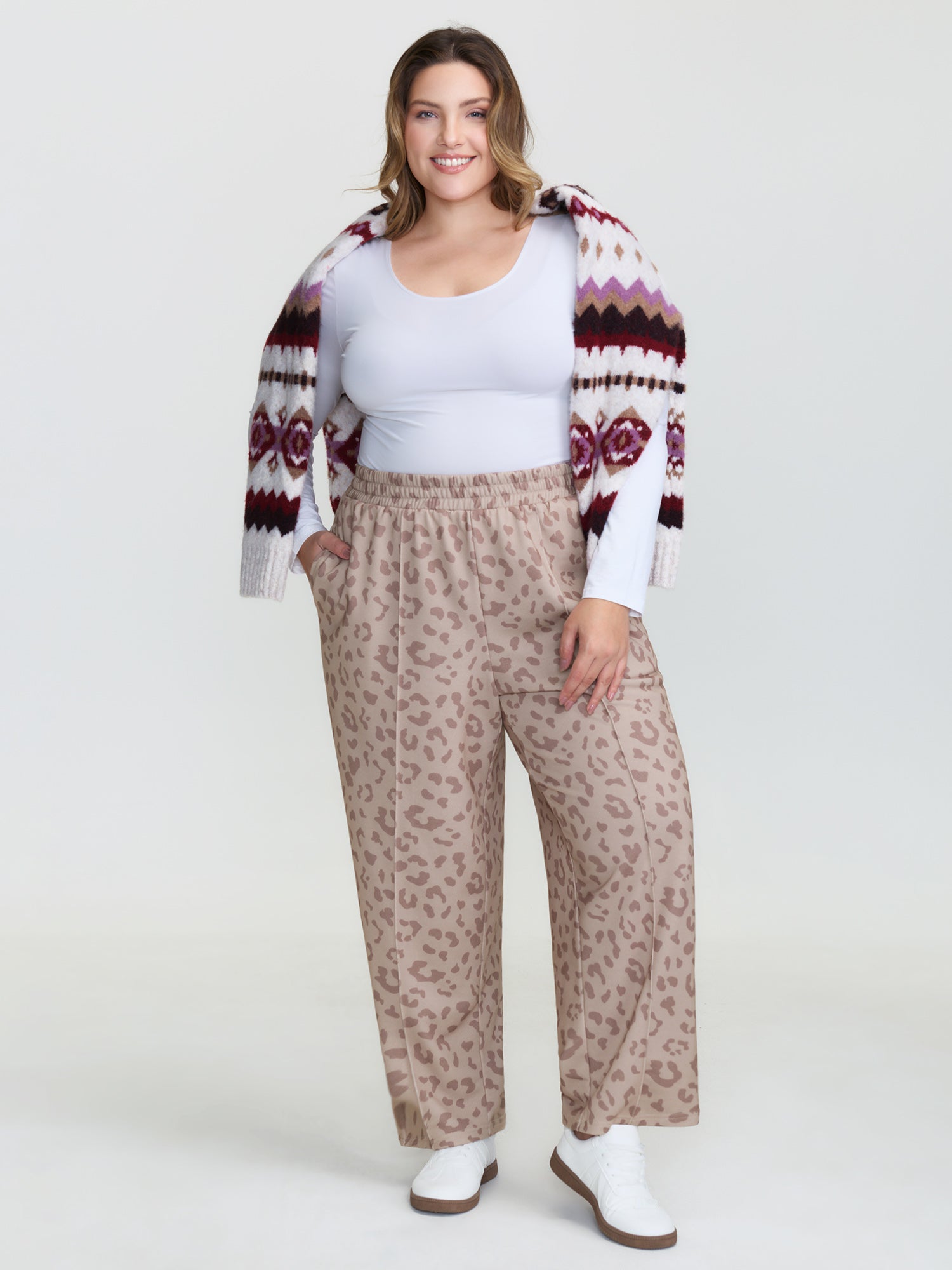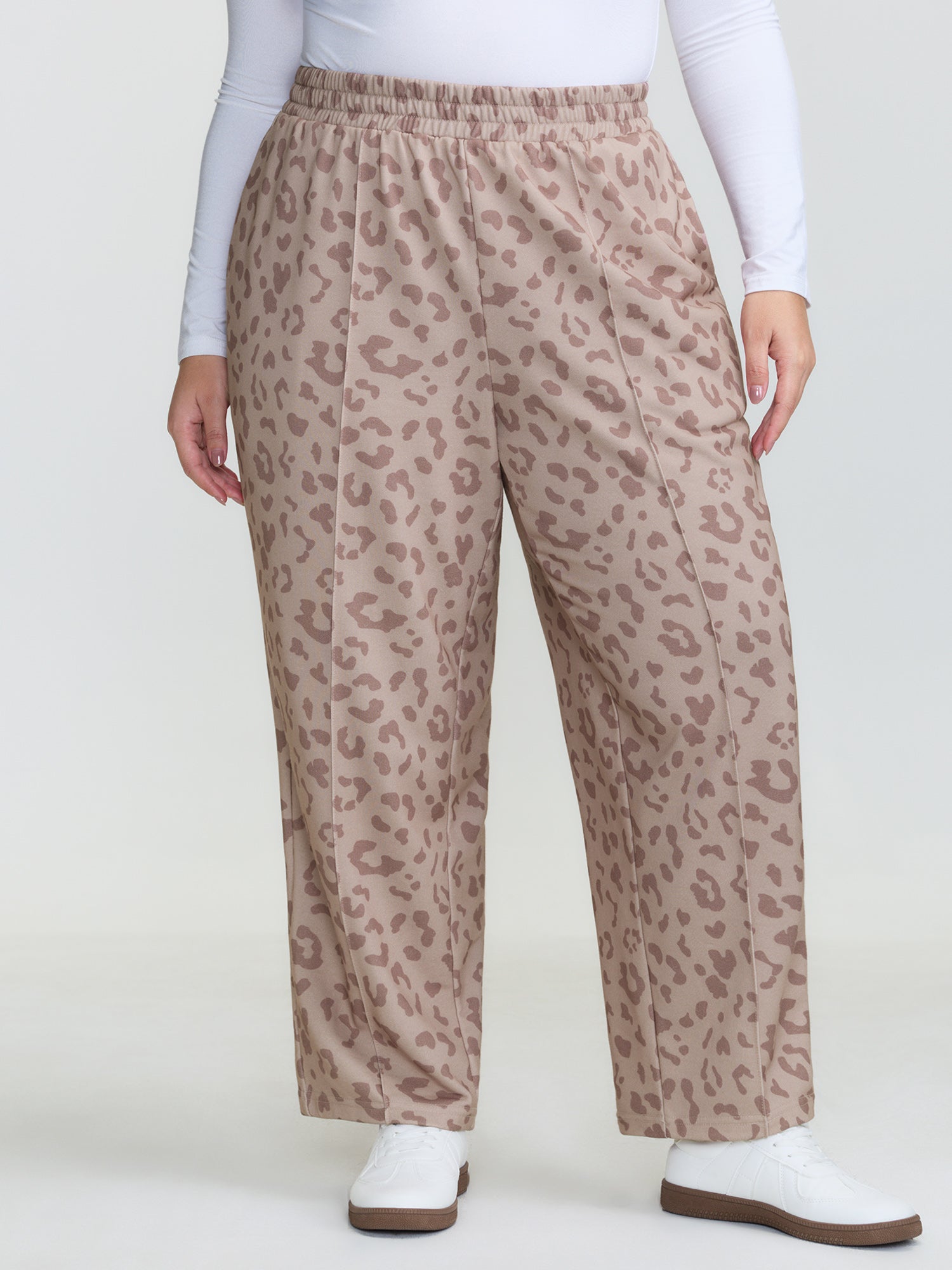 Leopard Seamed Shirred Waistband Pants