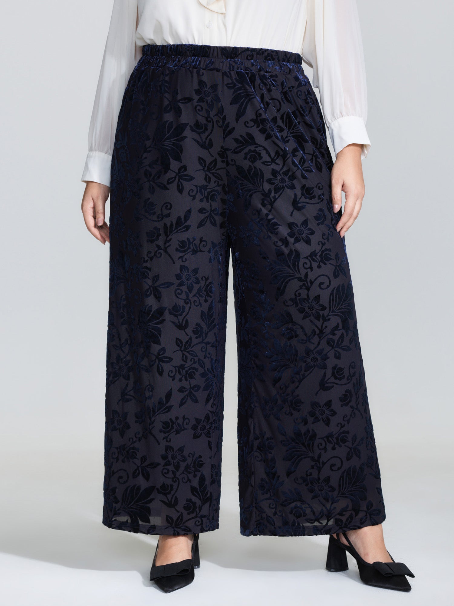 Elastic Flocked Stretchy Waist Sheer Pants