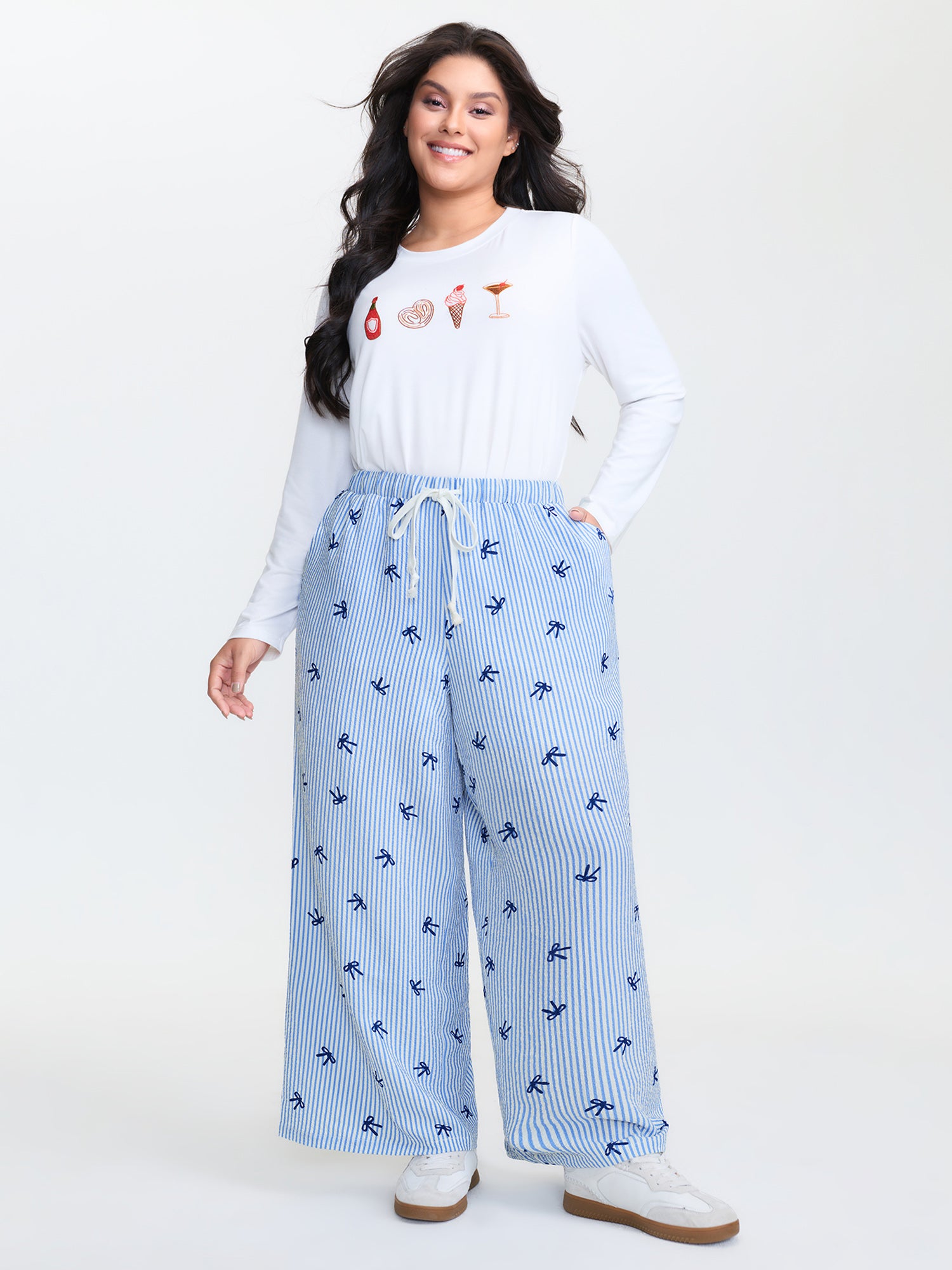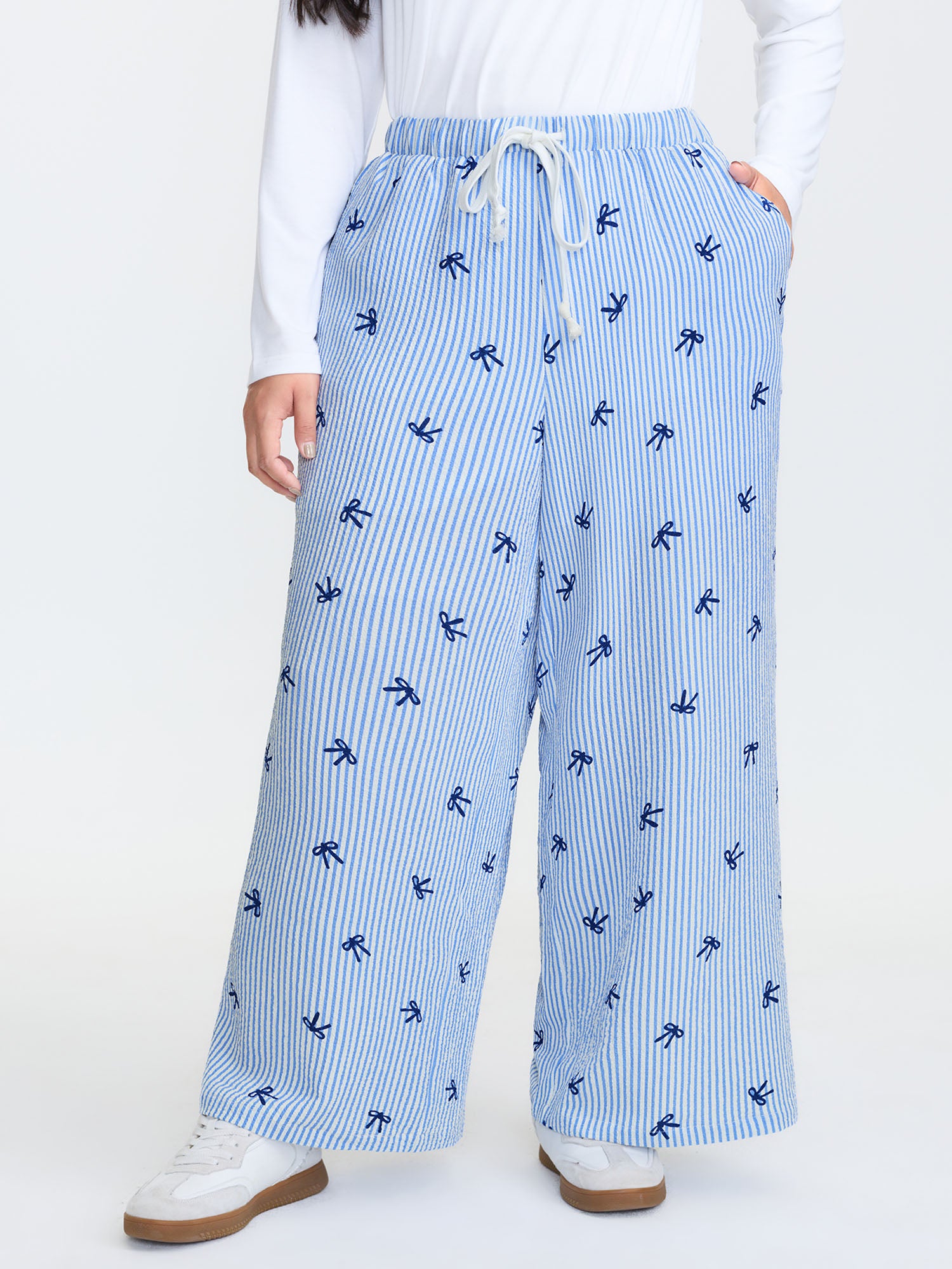 Stripe Bowknot Print Pockets Pants