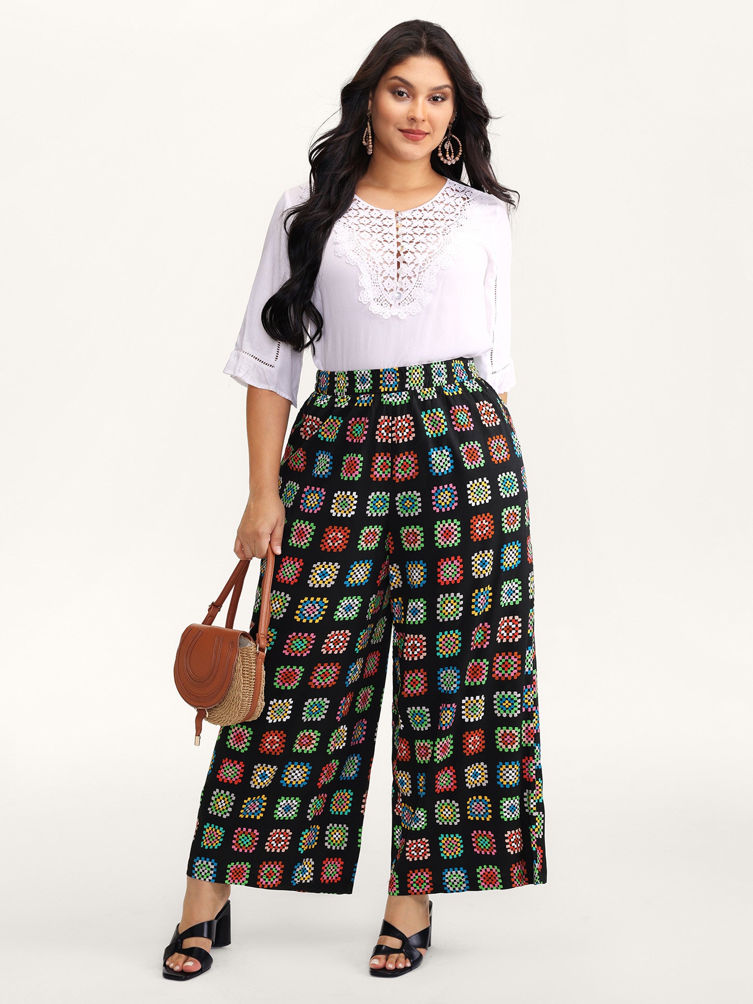 Floral Collage Colorful Wide-Leg Pants