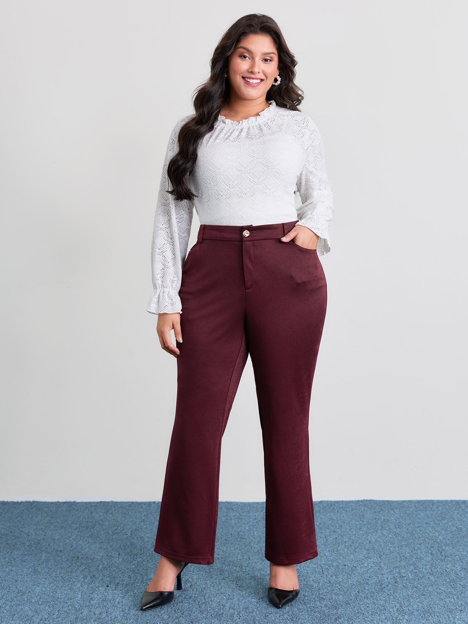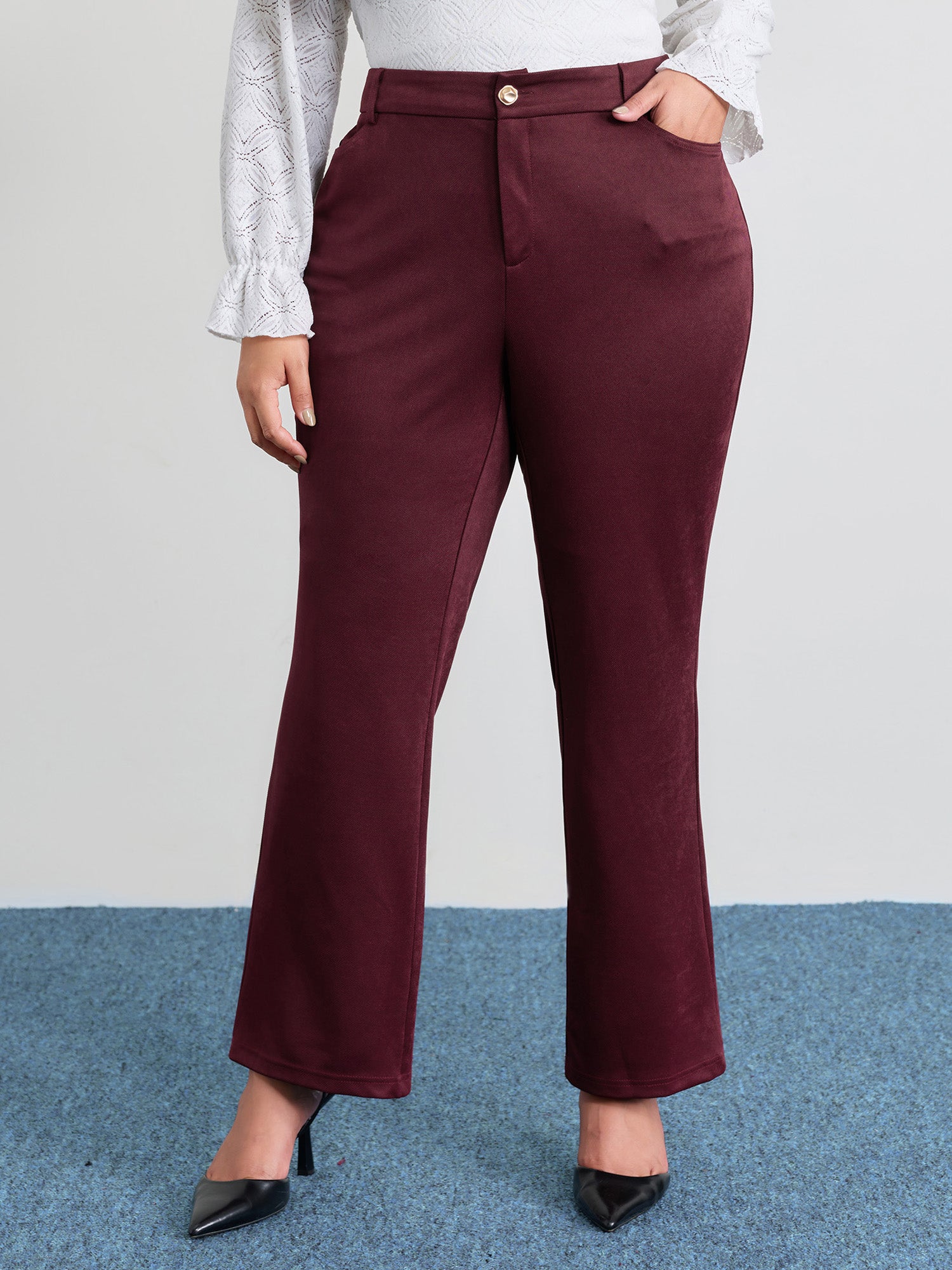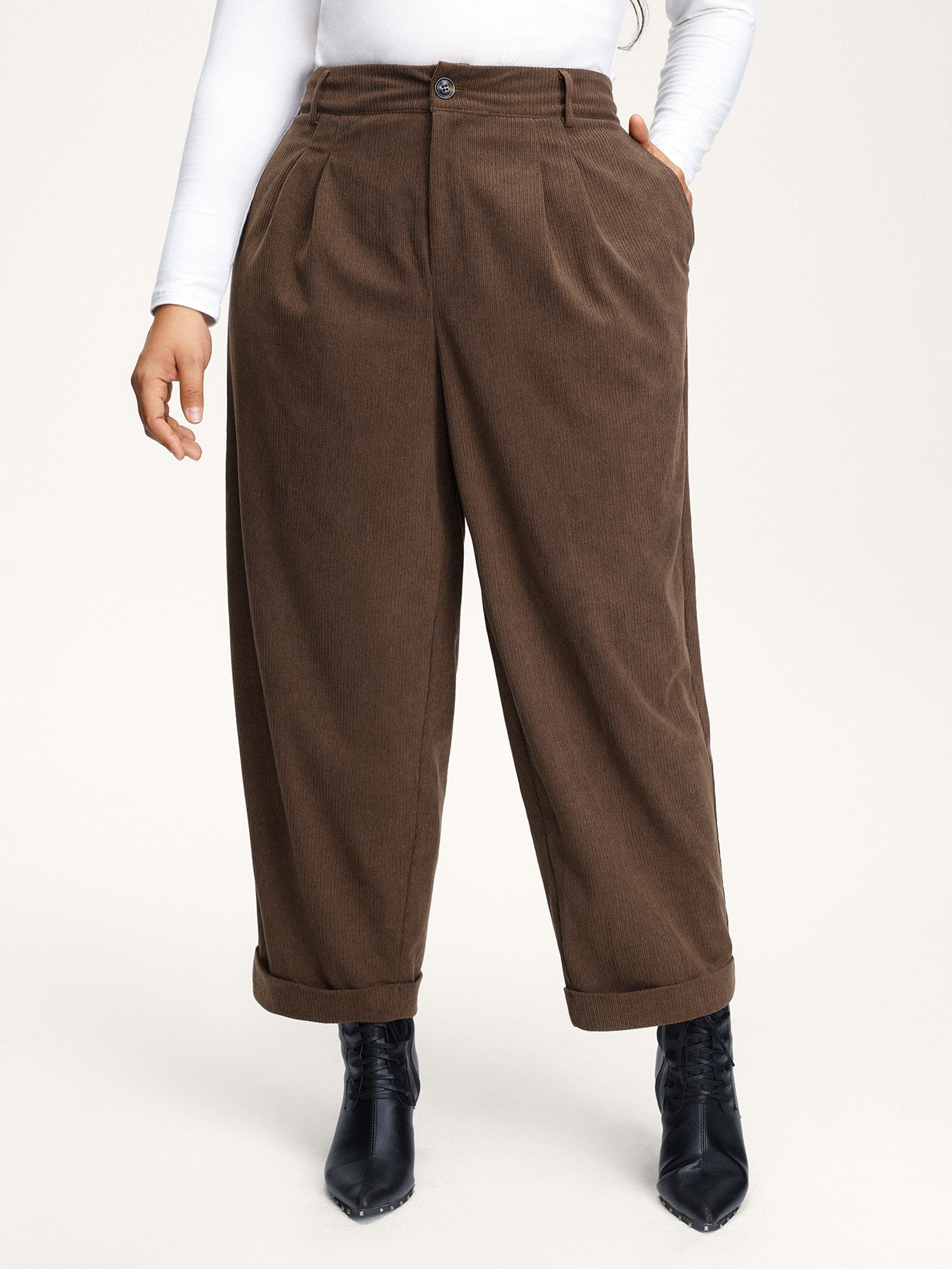 Textured Rolled Cuffs Straight Leg Pants