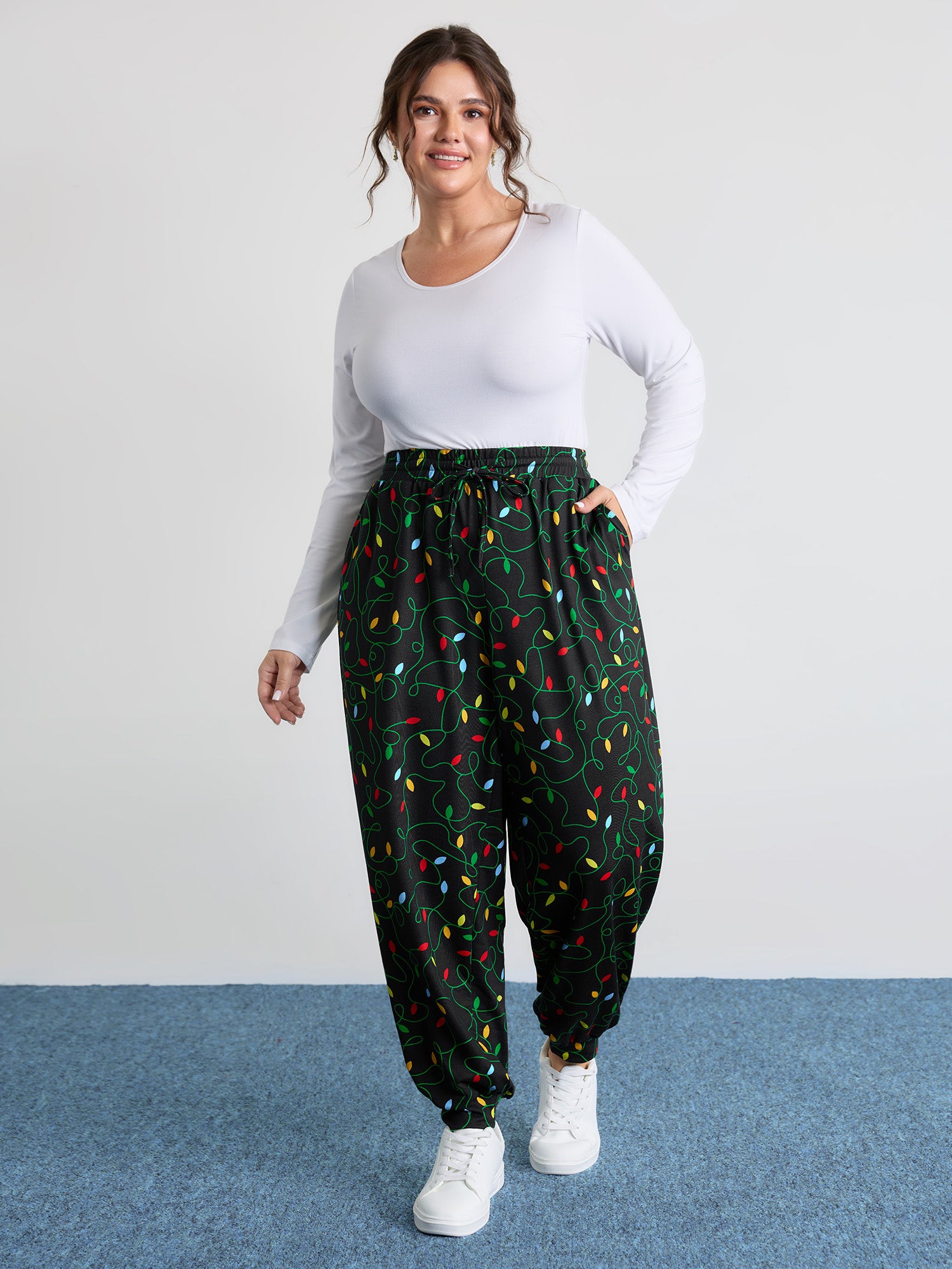 Colorful Lights Pattern Stretchy-Fit Pants