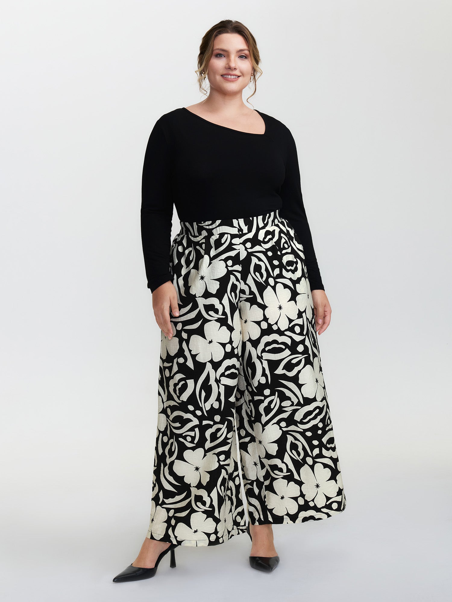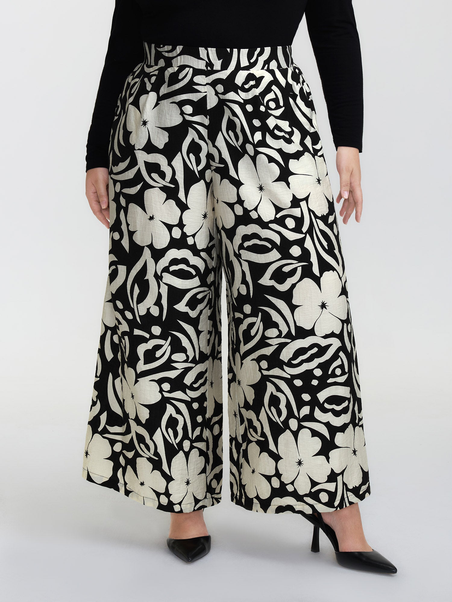 Abstract Floral Print Wide-Leg Pants