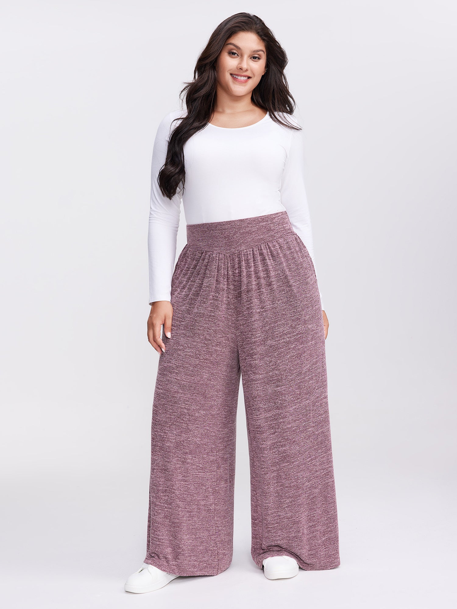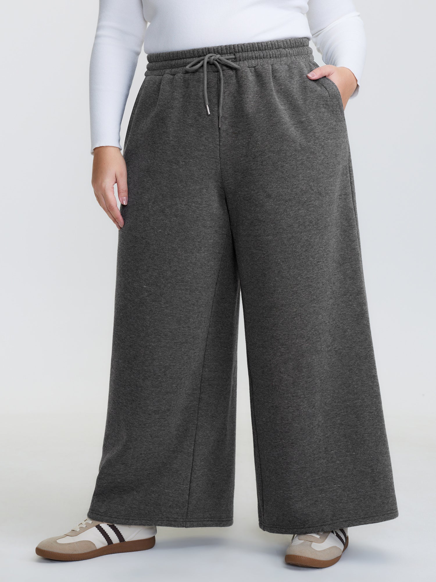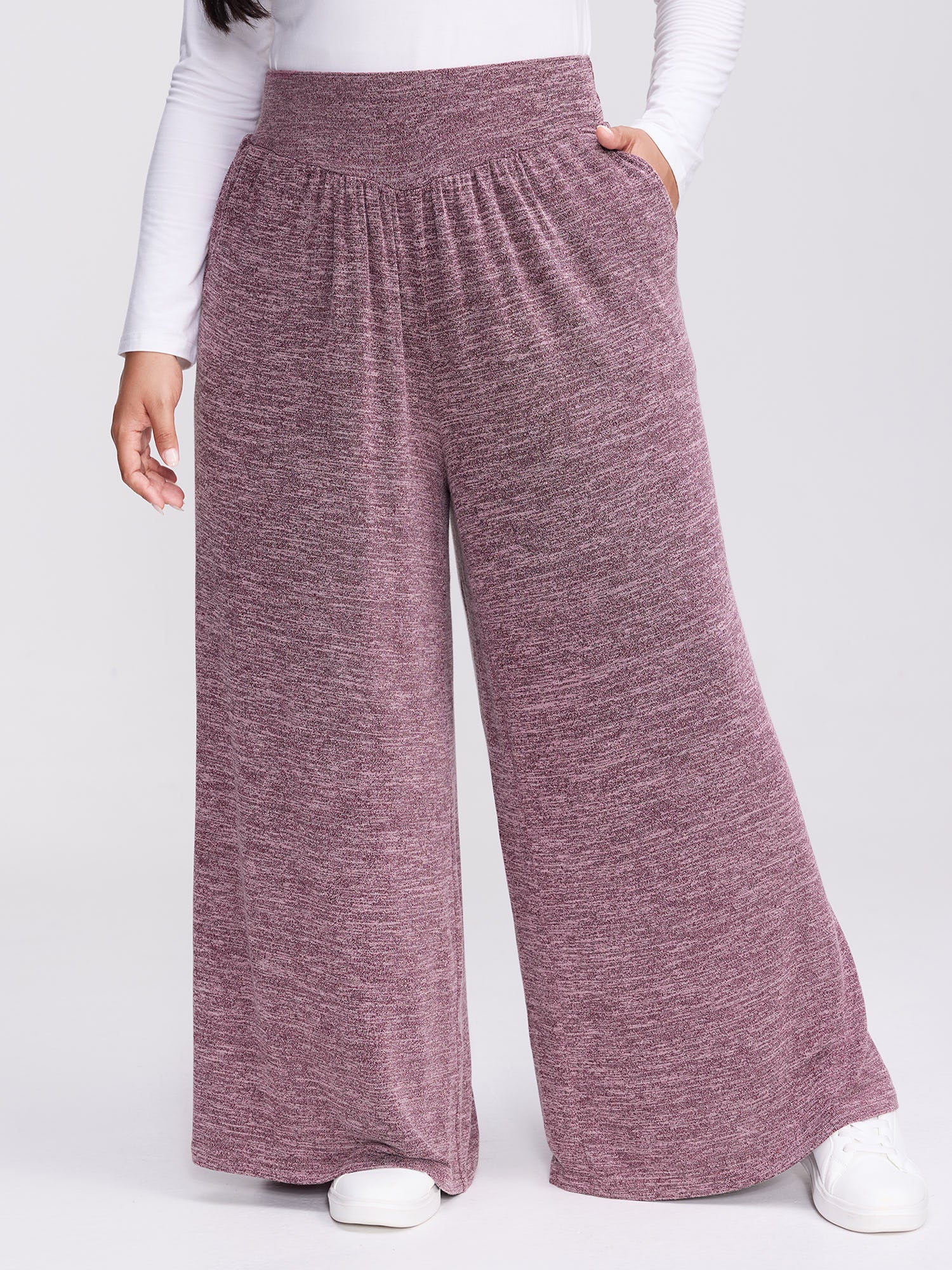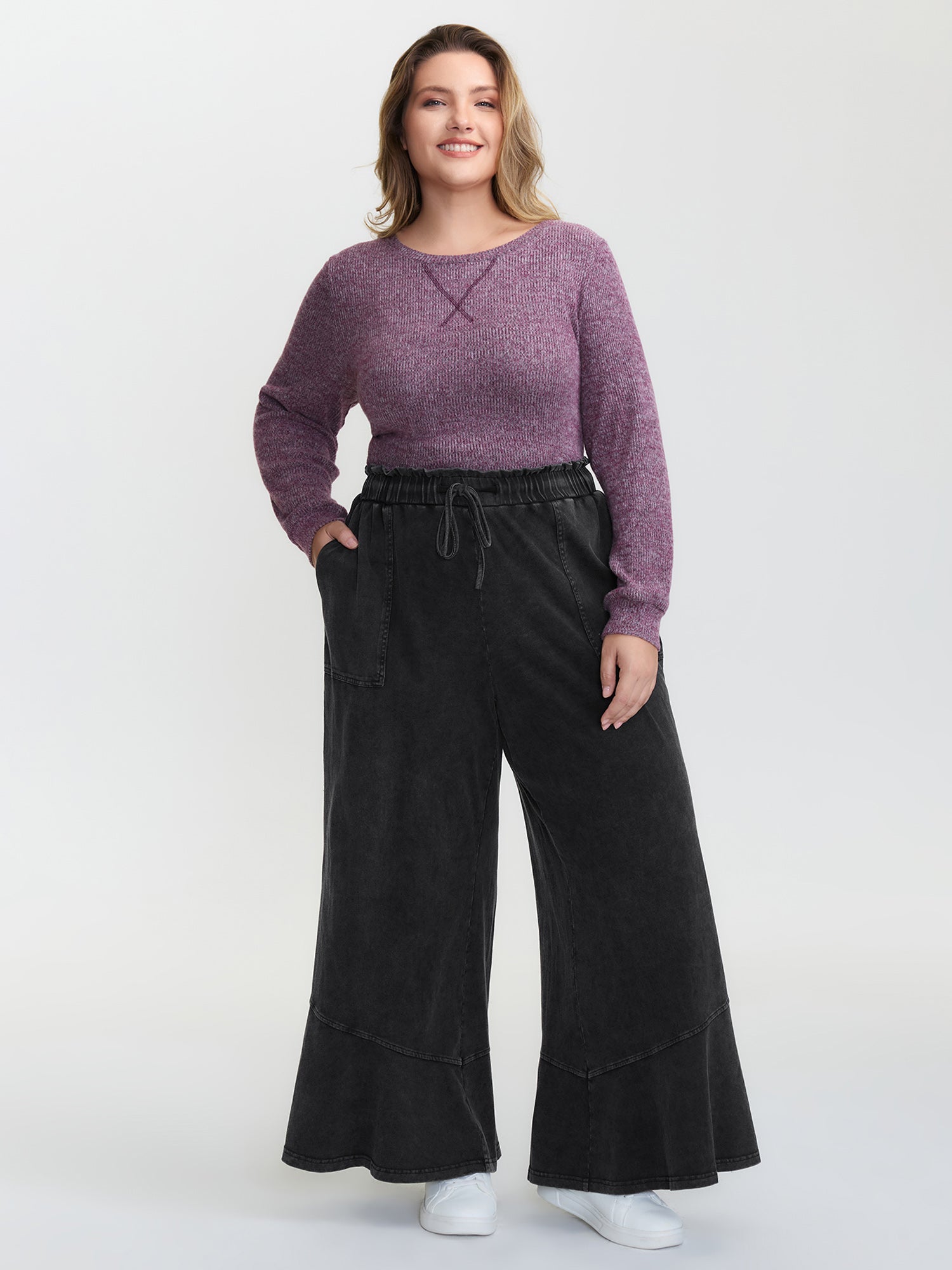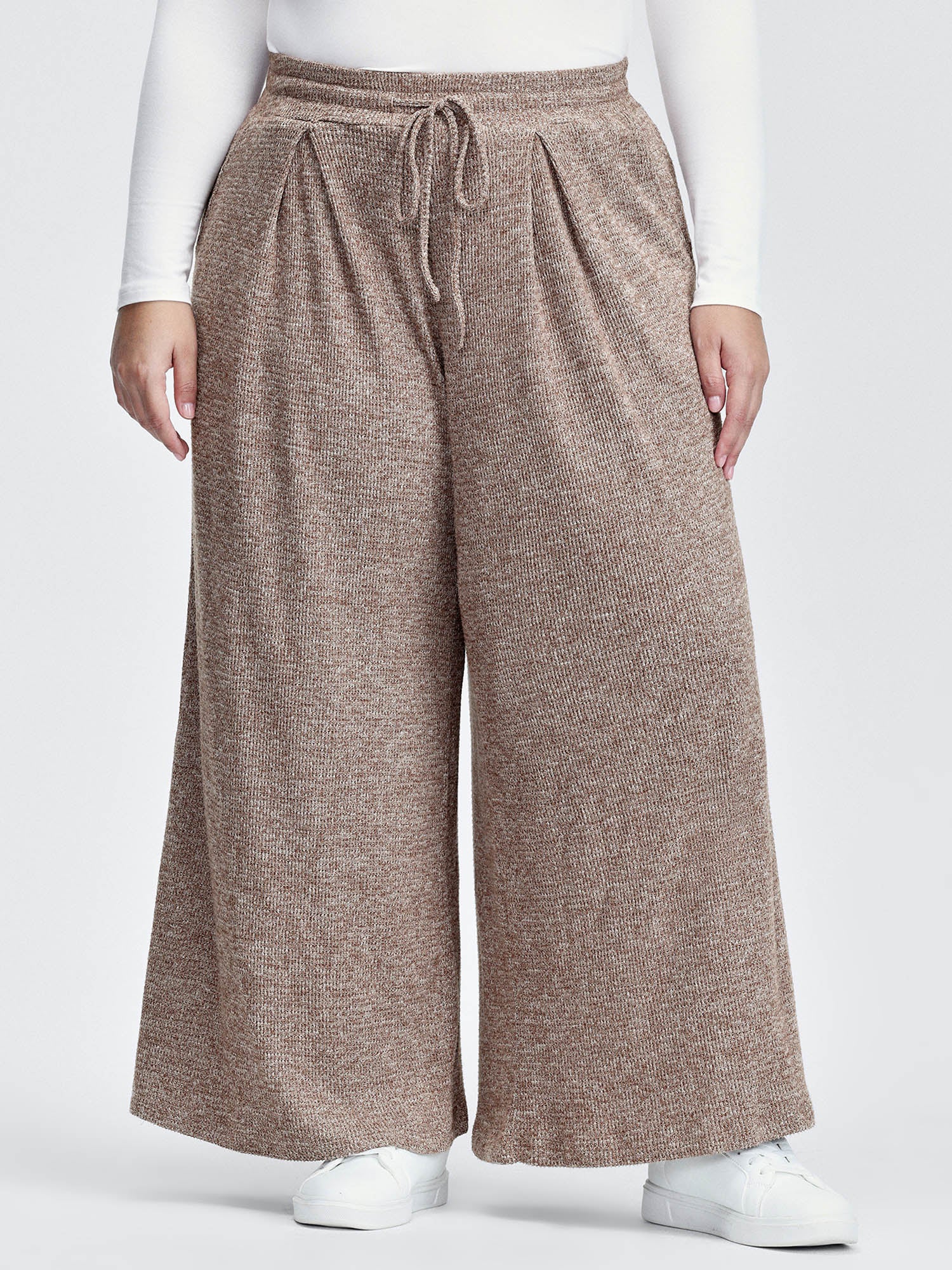 Heather Drawstring Waist Wide-Leg Pants