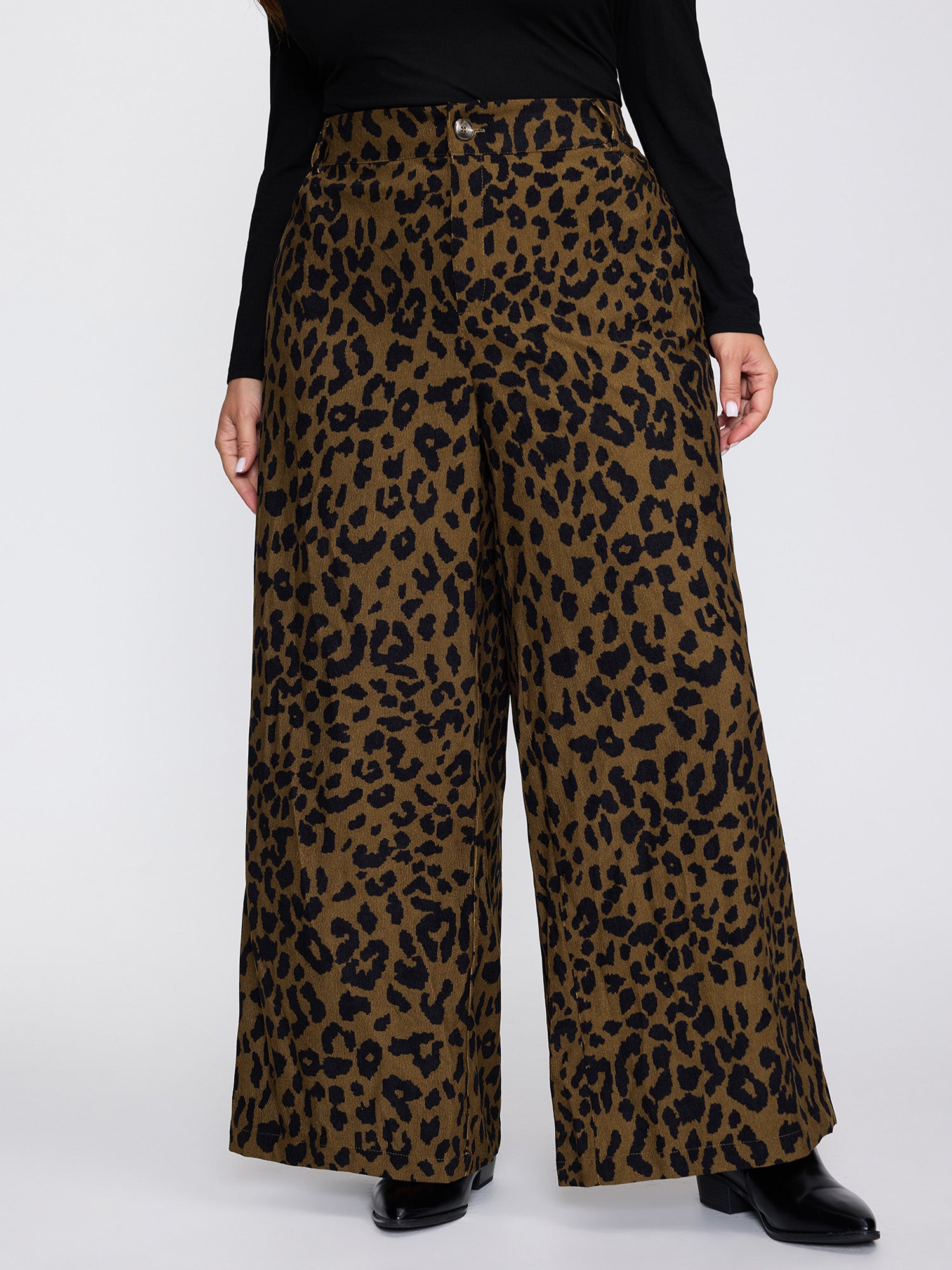 Leopard Corduroy Print Pockets Pants