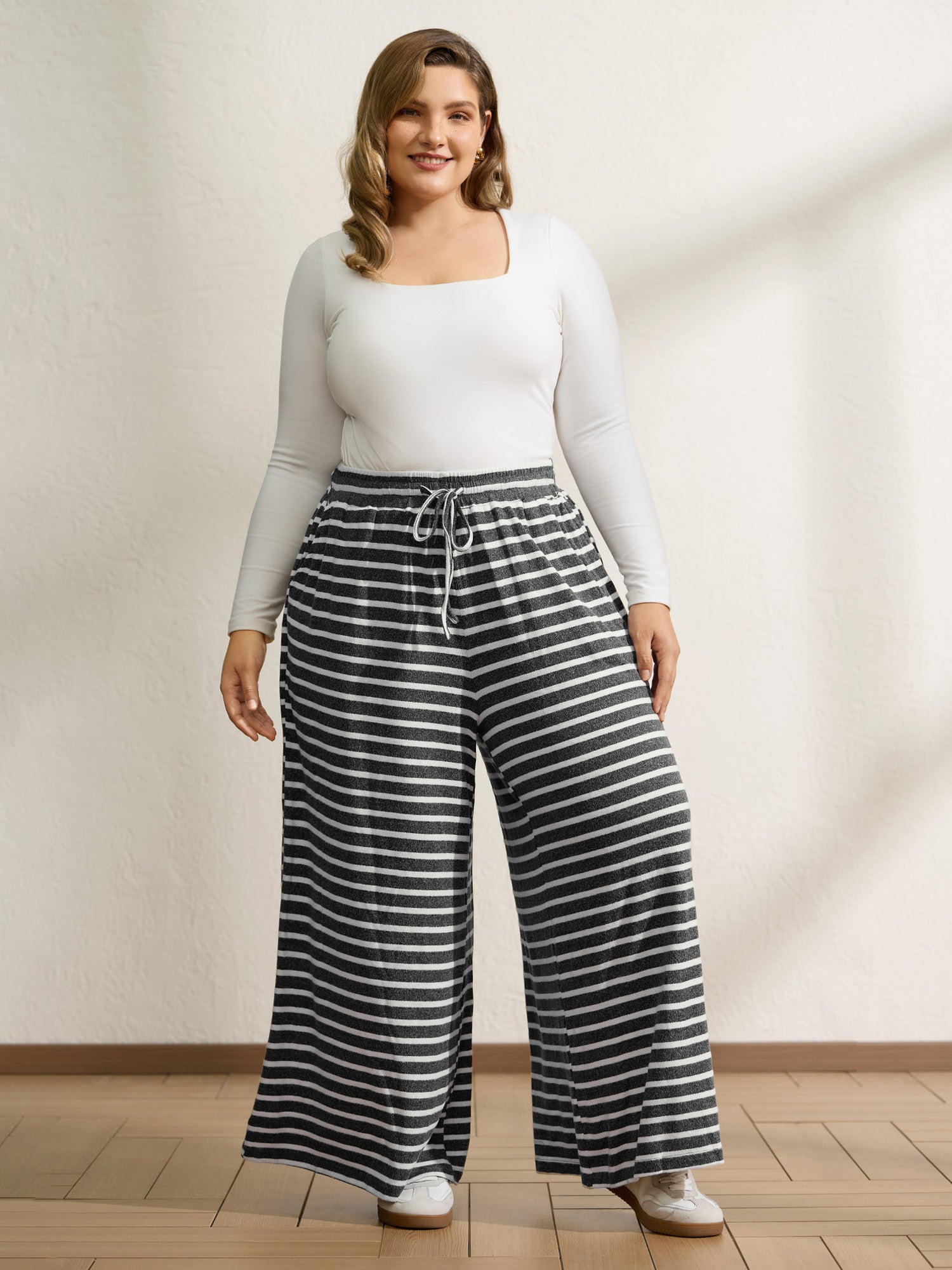 Stretchy Stripes Drawstring Wide-Leg Pants