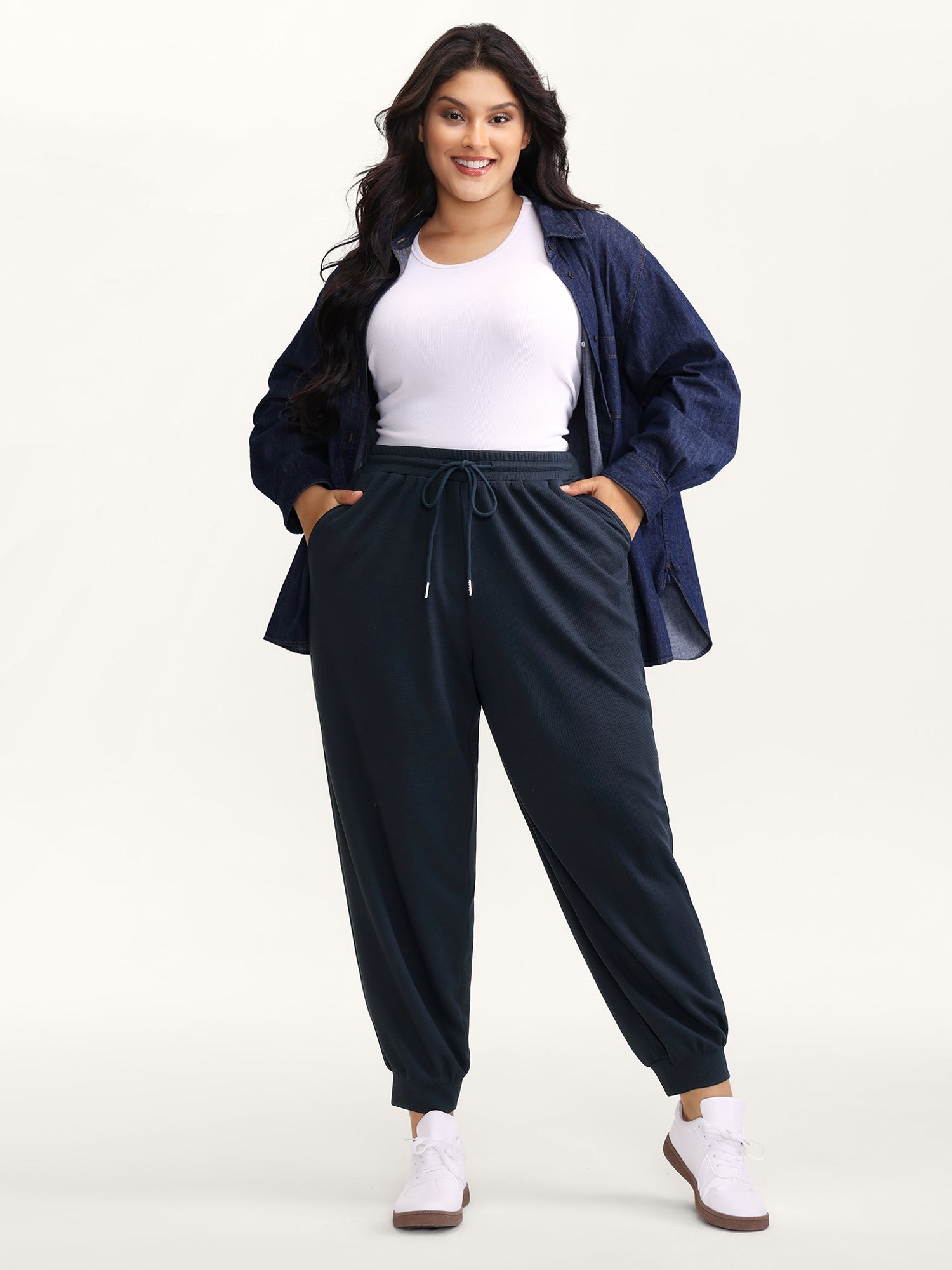 Textured Waist Drawstring Jogger Pants