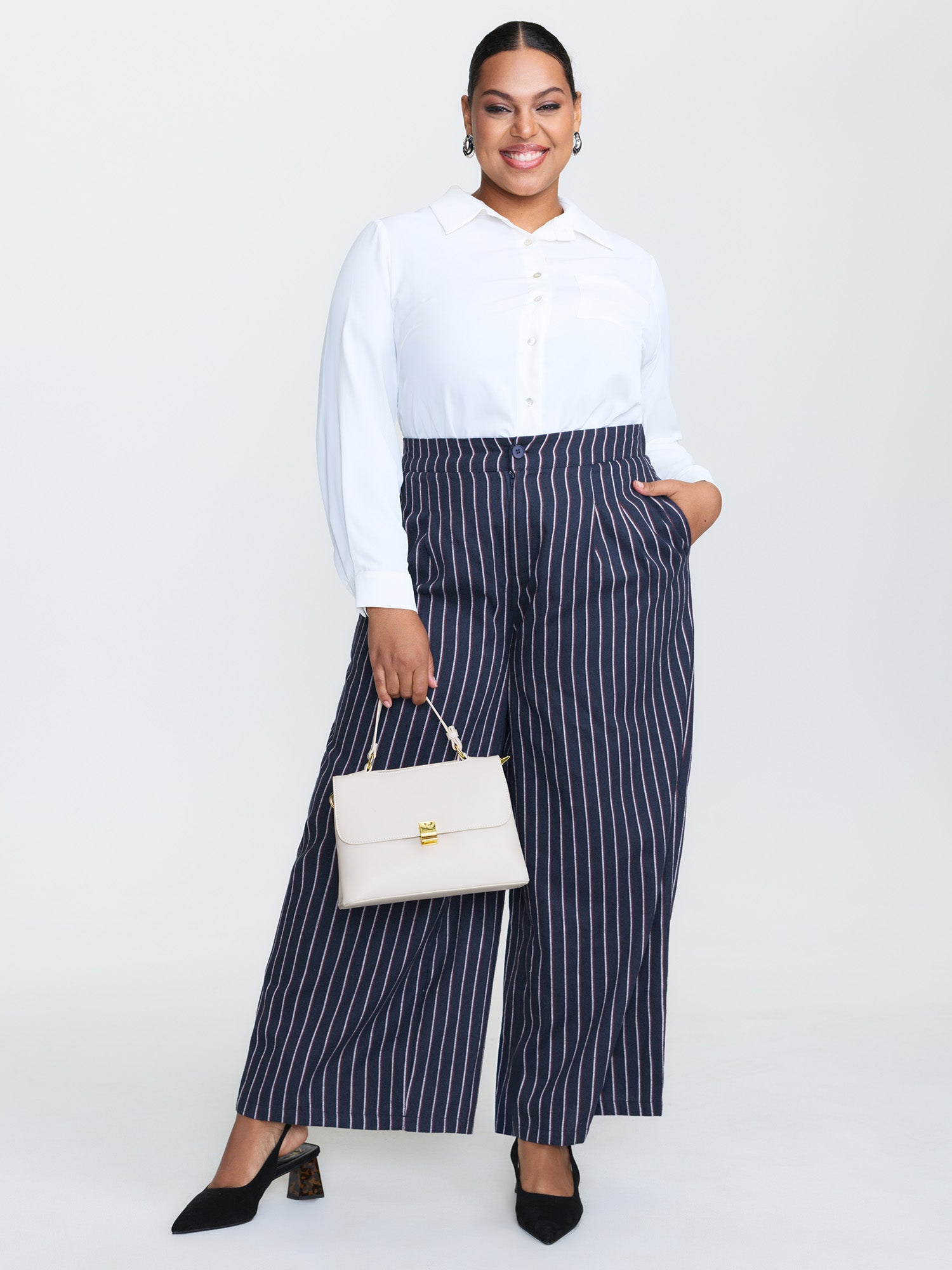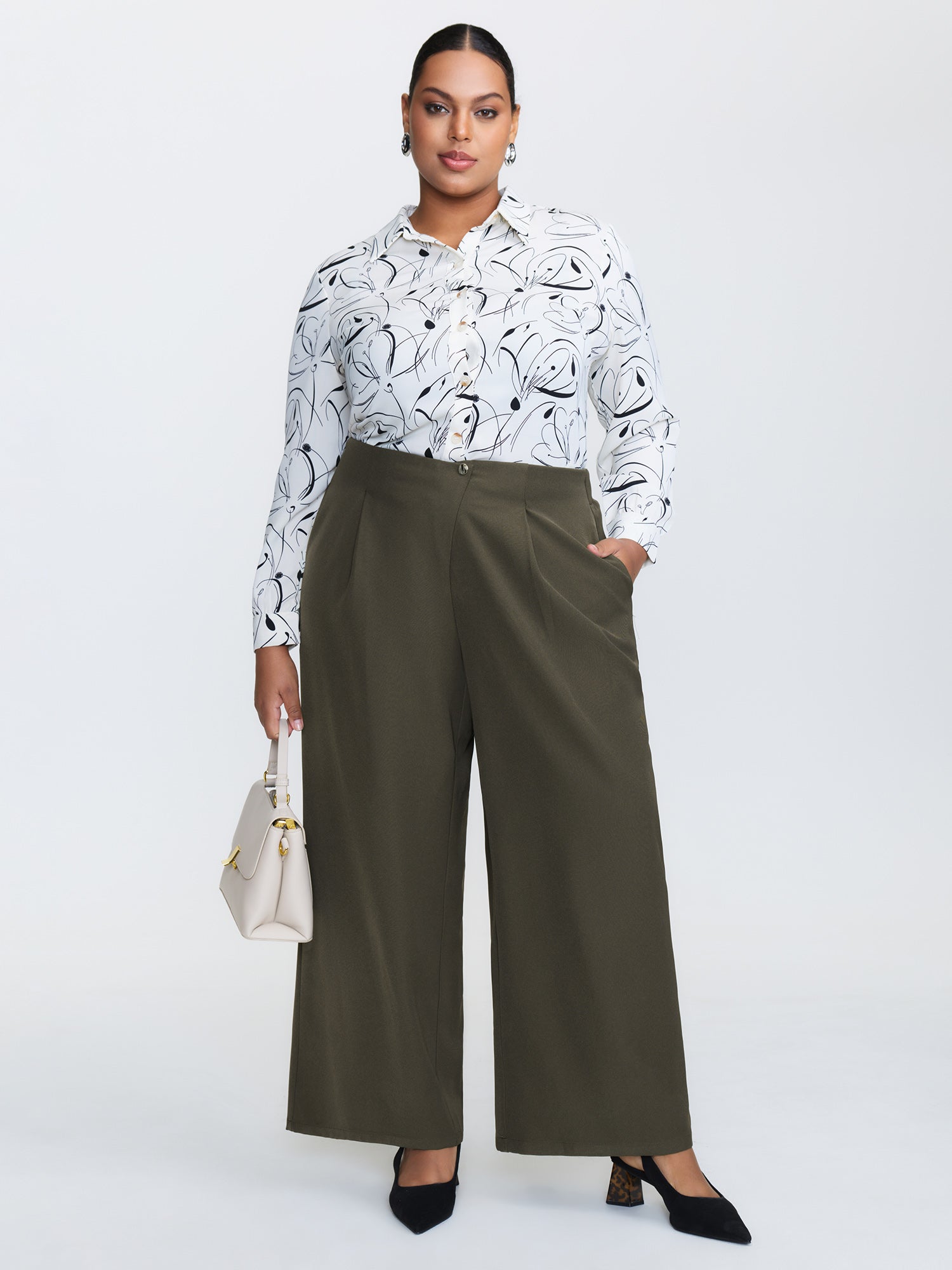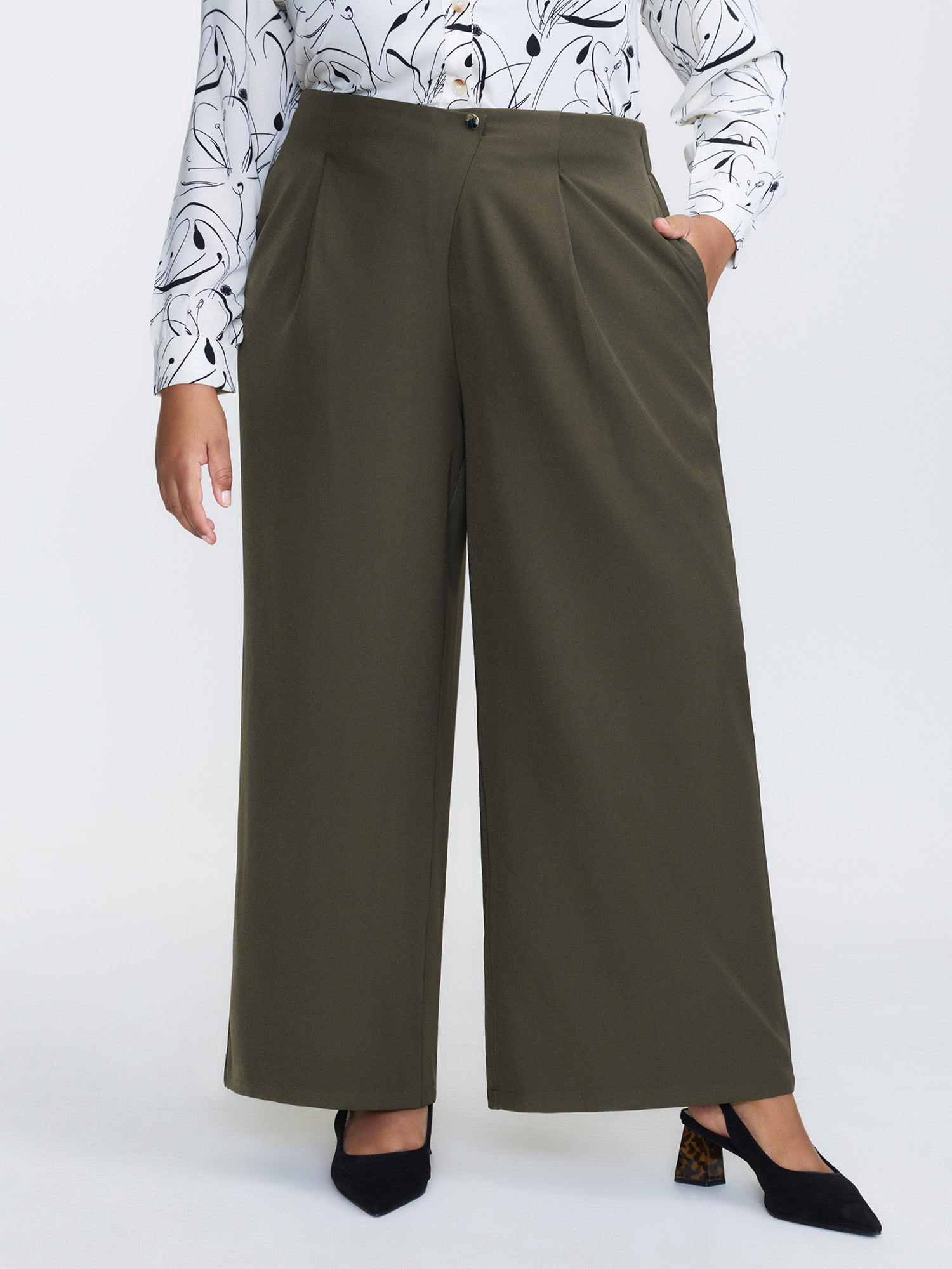 Stretchy Back Waistband Wide-Leg Pants