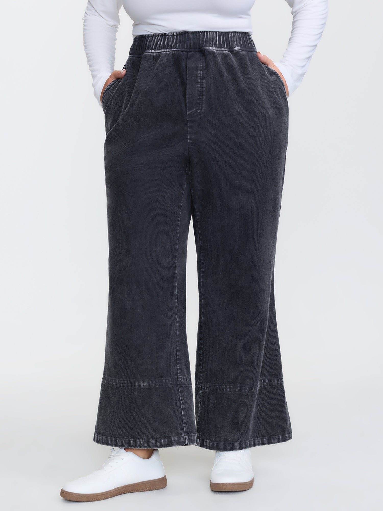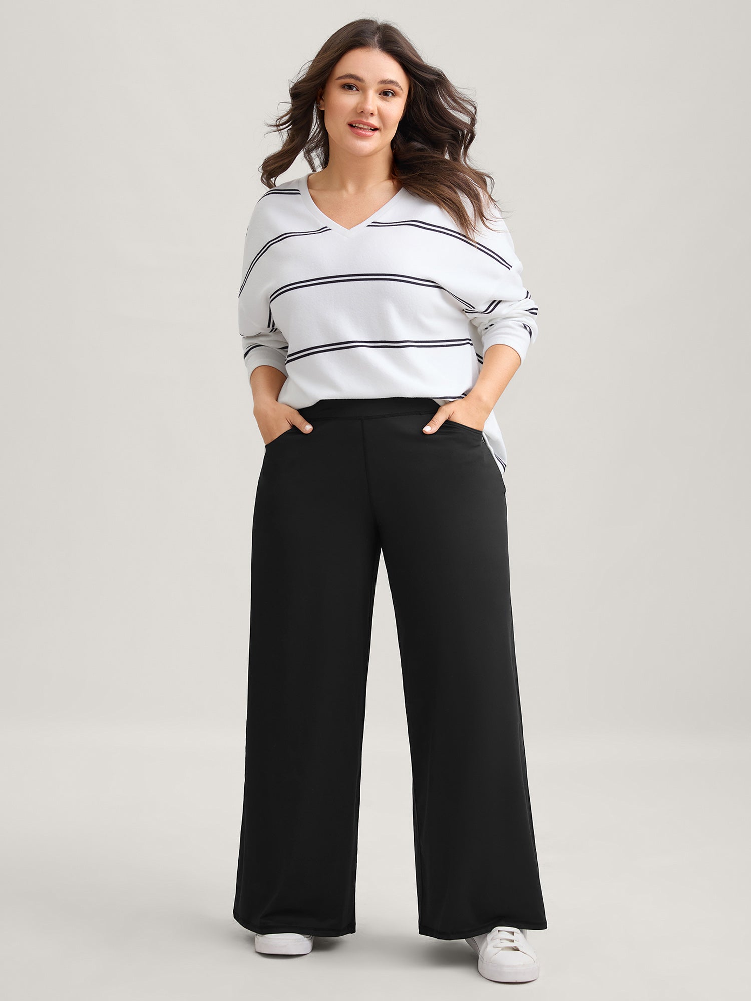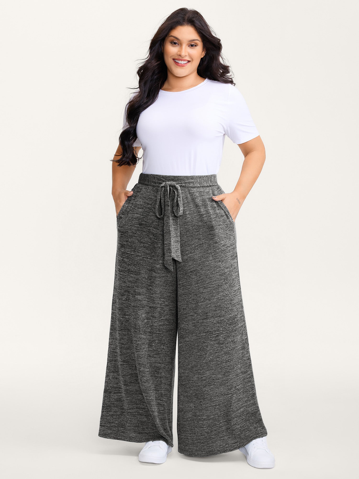 Side Seam Pockets Stretchy Waist Wide-Leg Pants