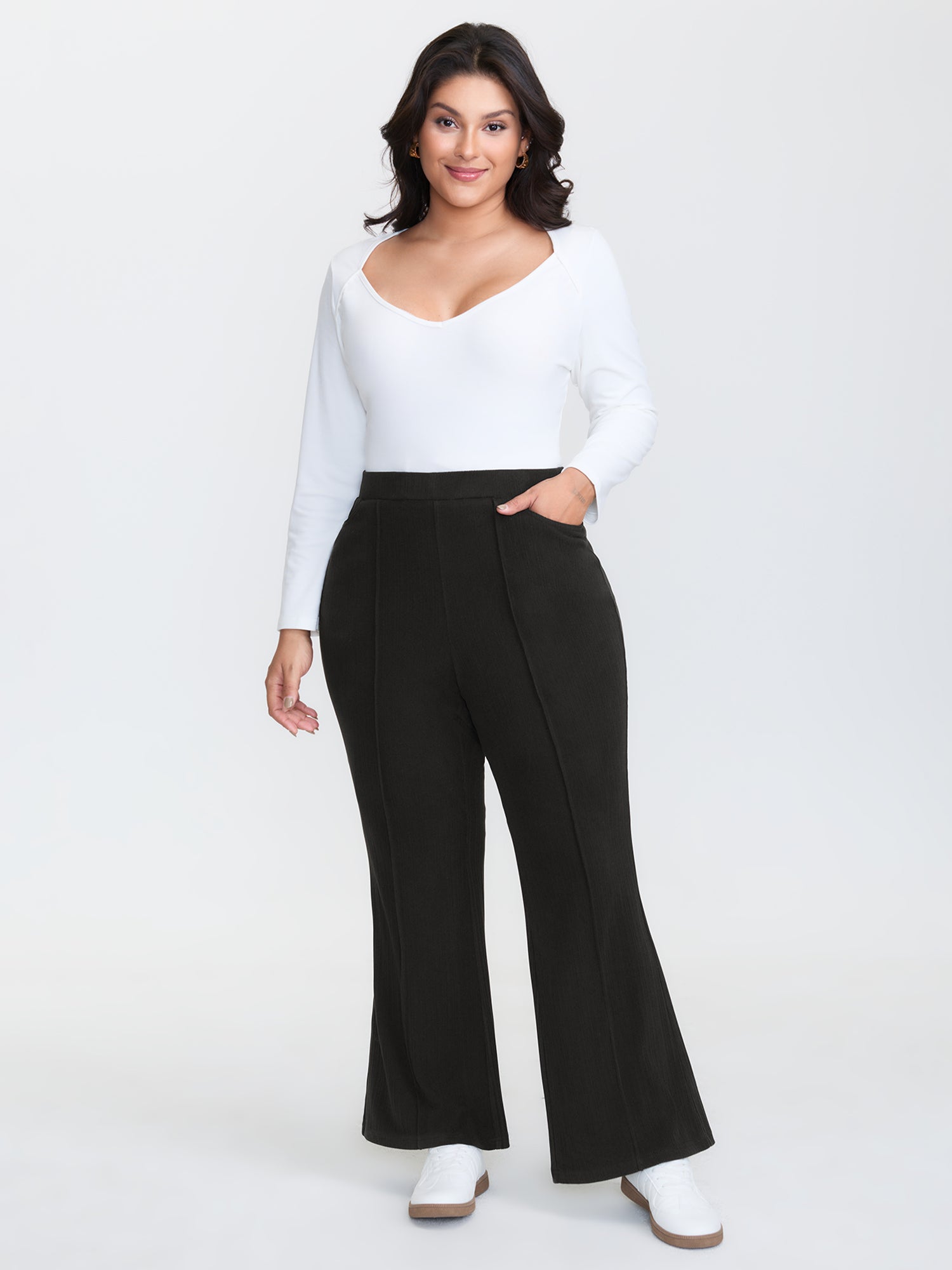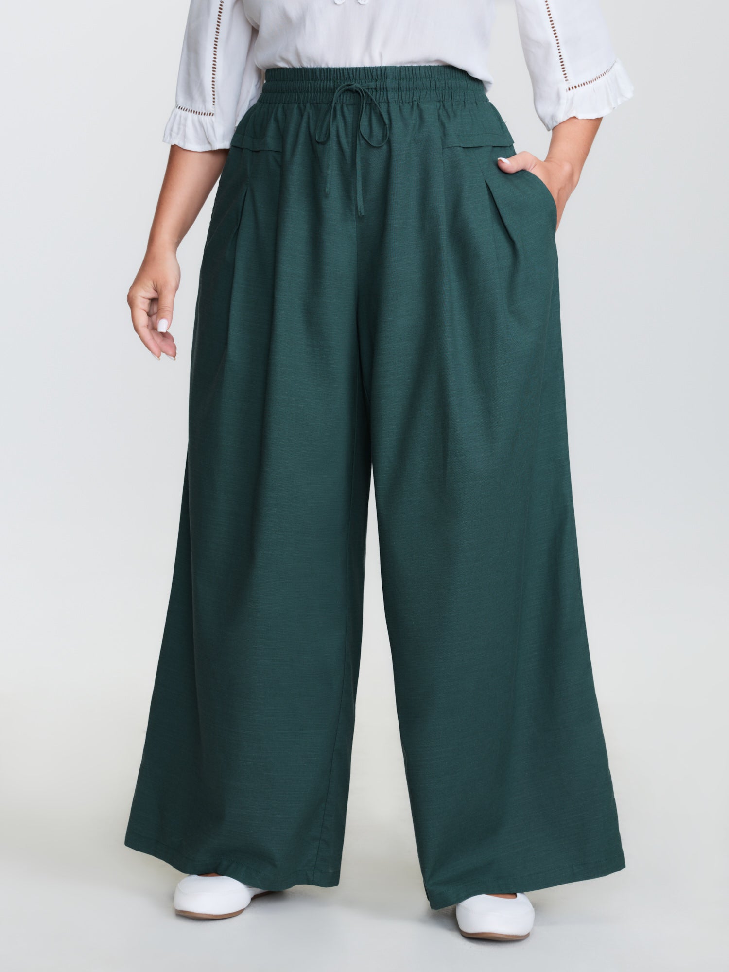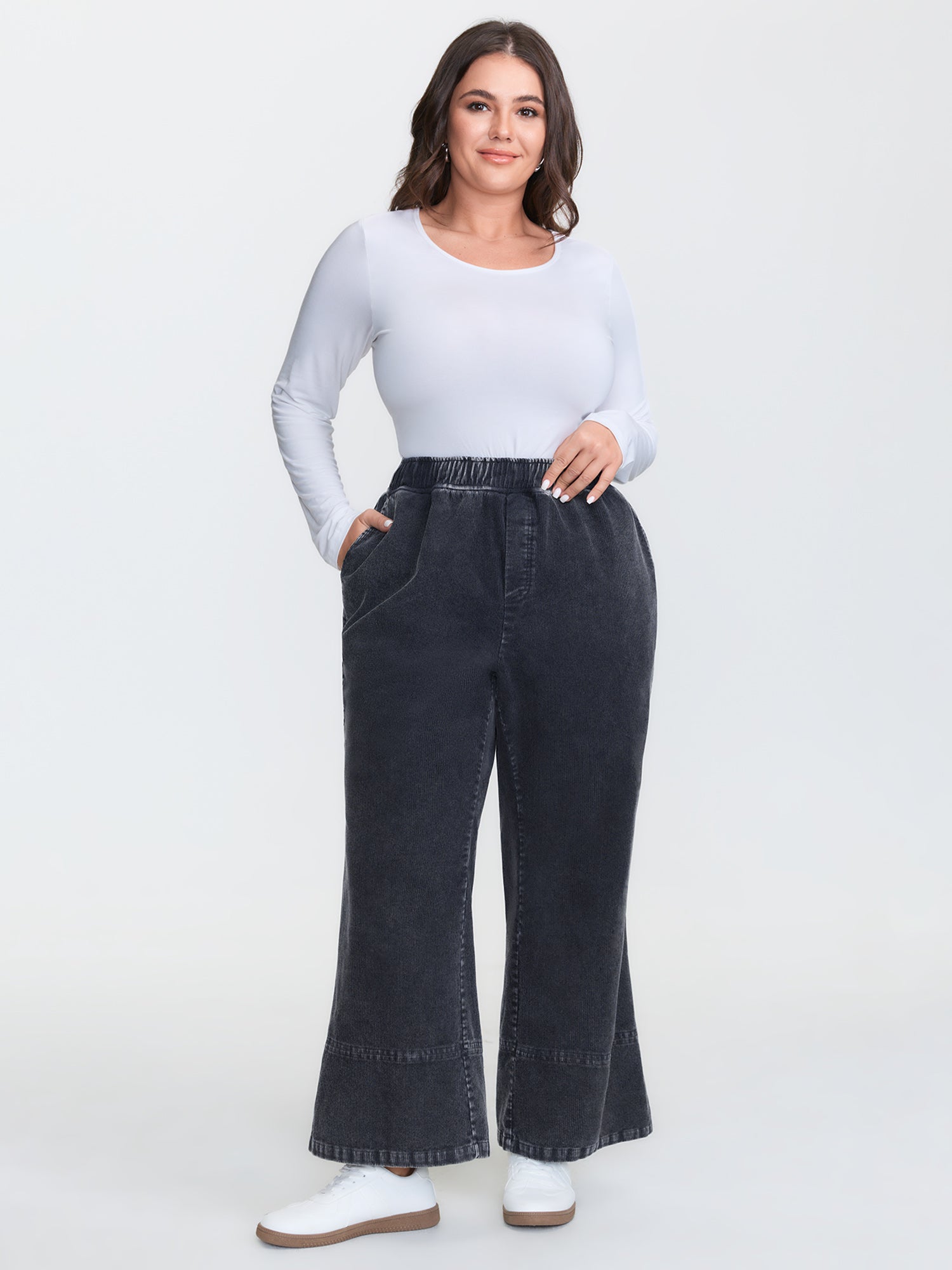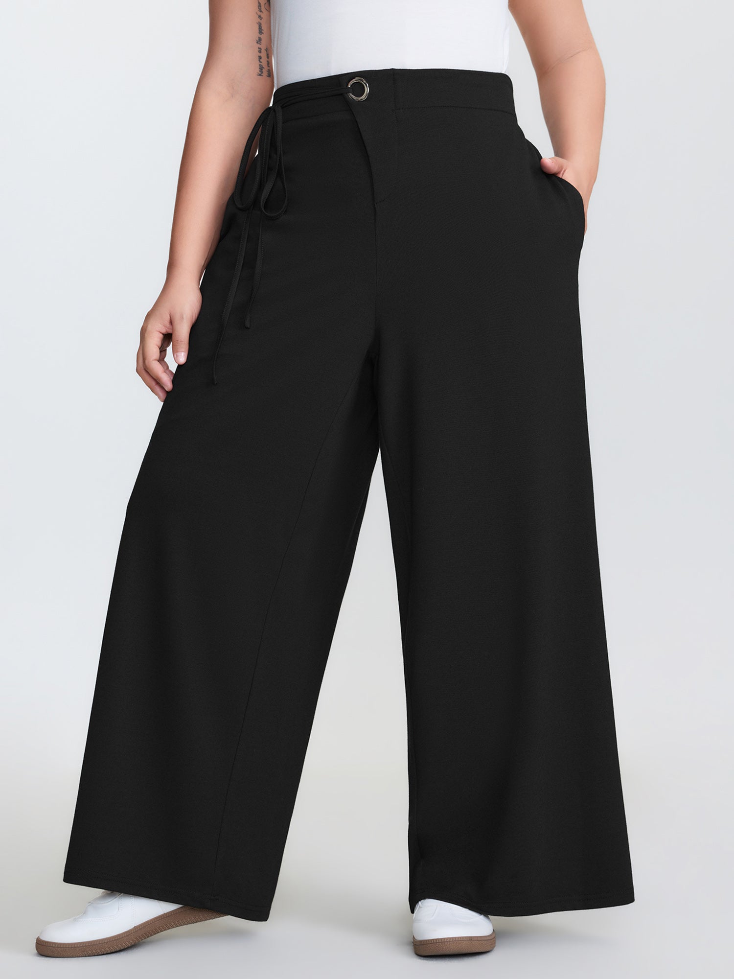 Side Seam Pockets Stretchy Waist Wide-Leg Pants