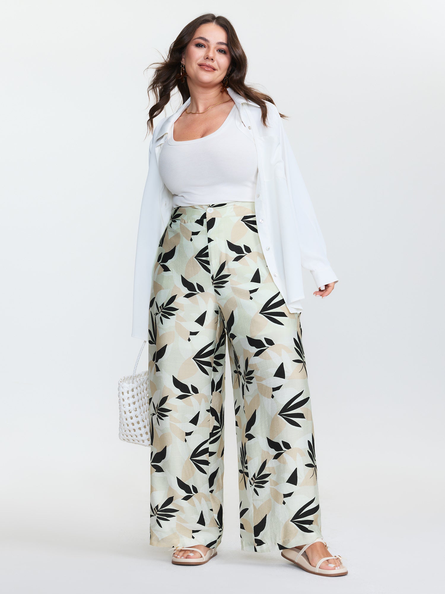 Floral Print Button Straight-Leg Pants