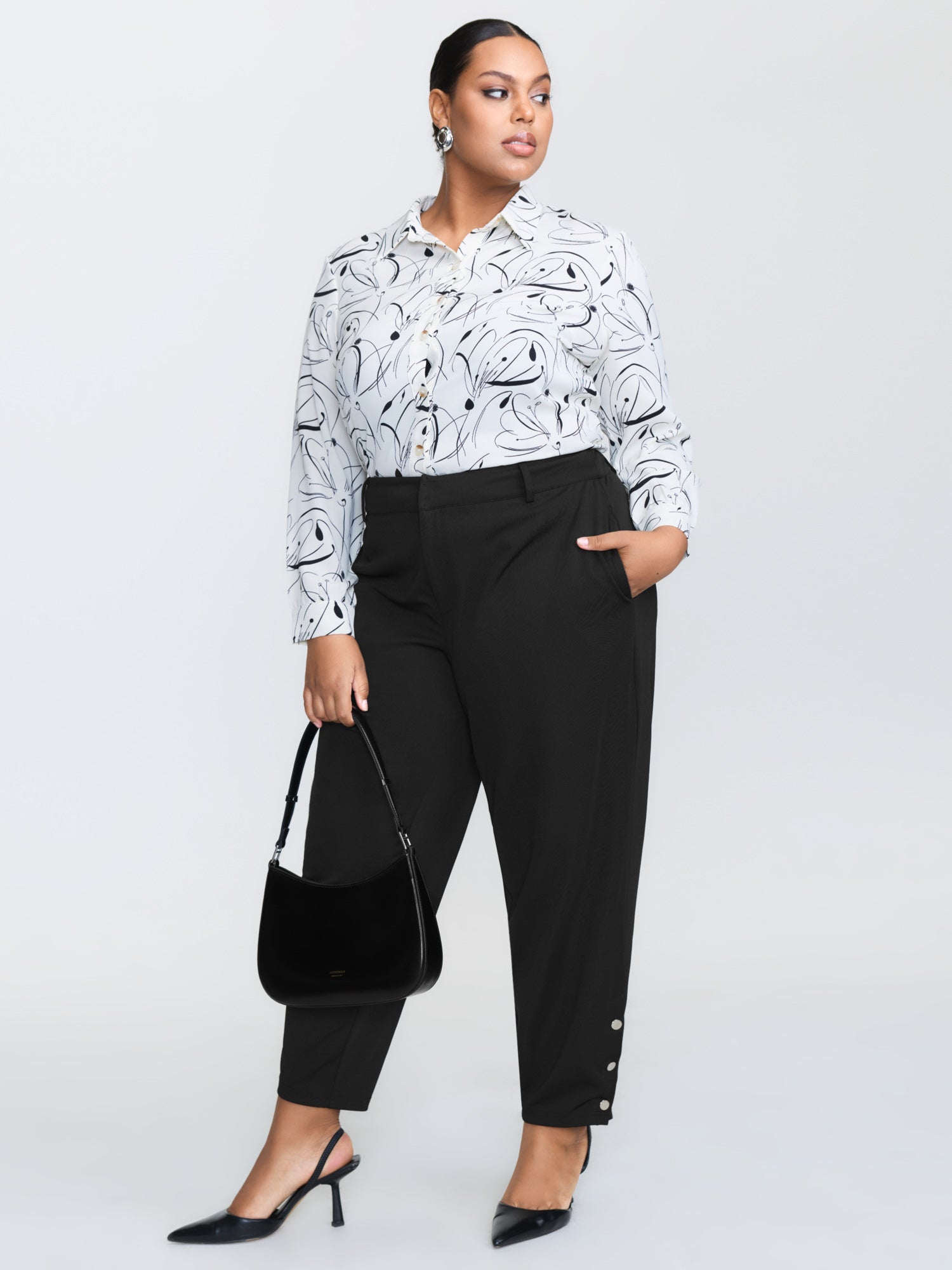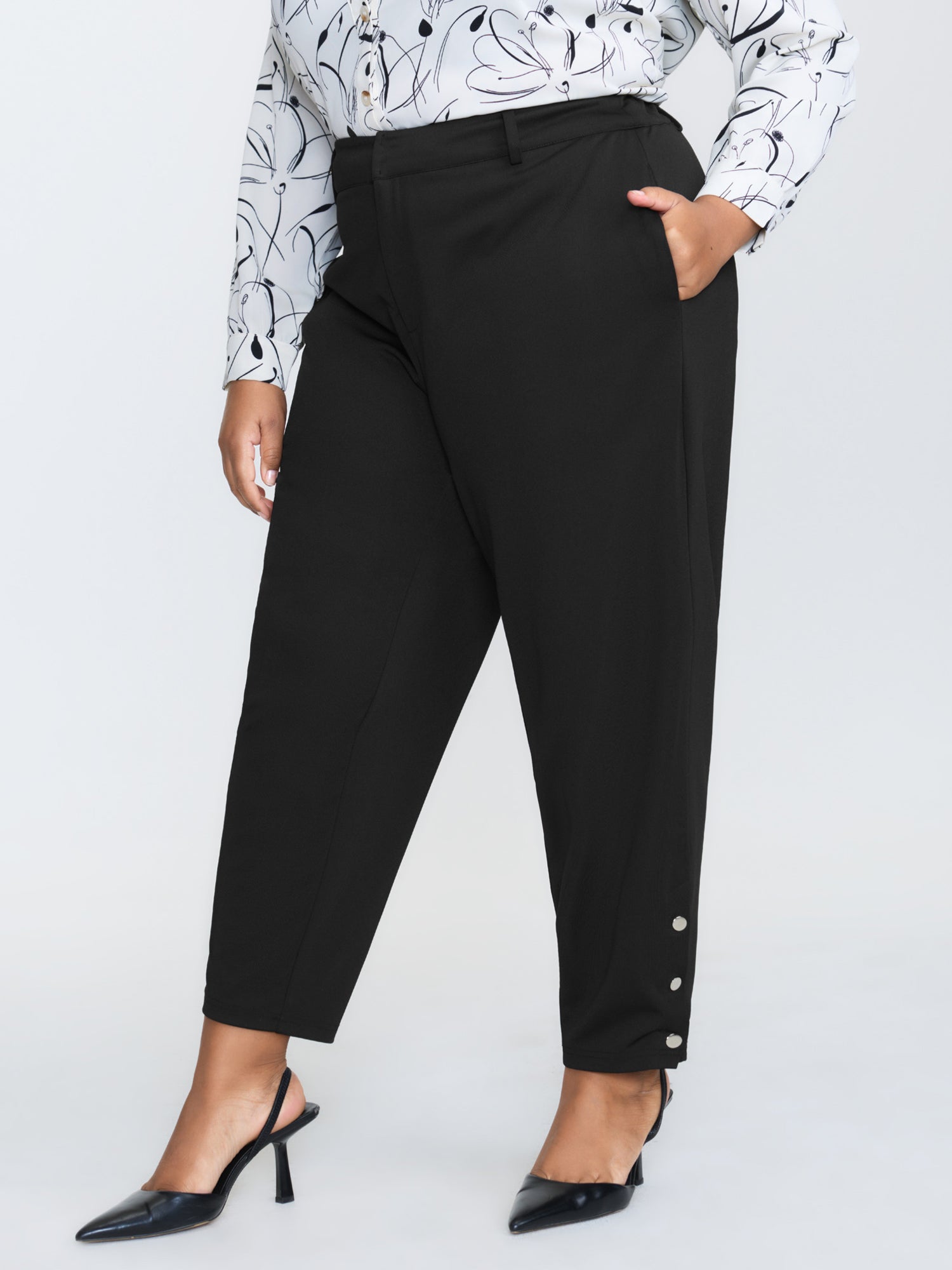 Stretchy Adjustable Fit Button Hem Pants
