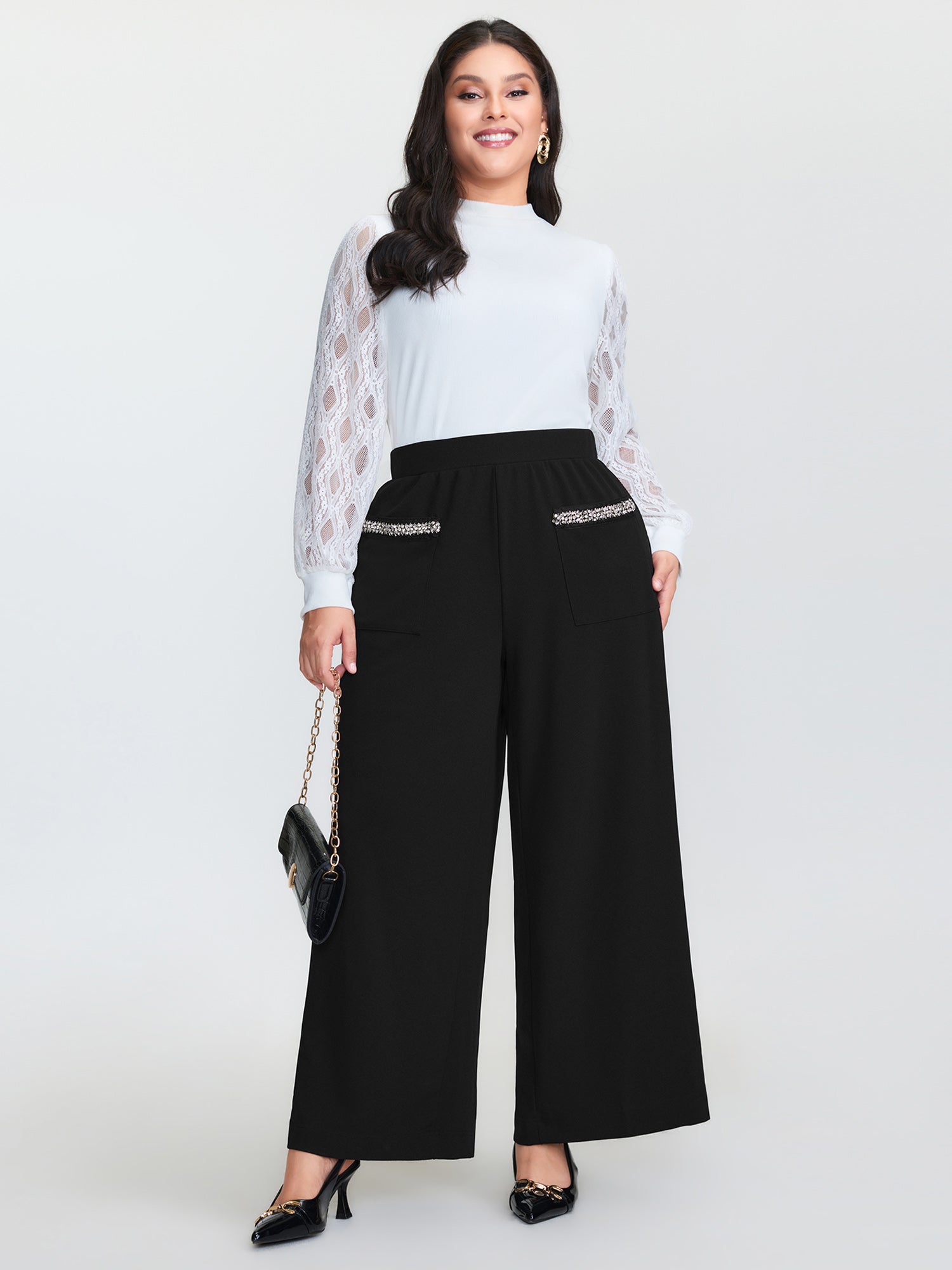 Stretchy Diamond Detail Hem Pants