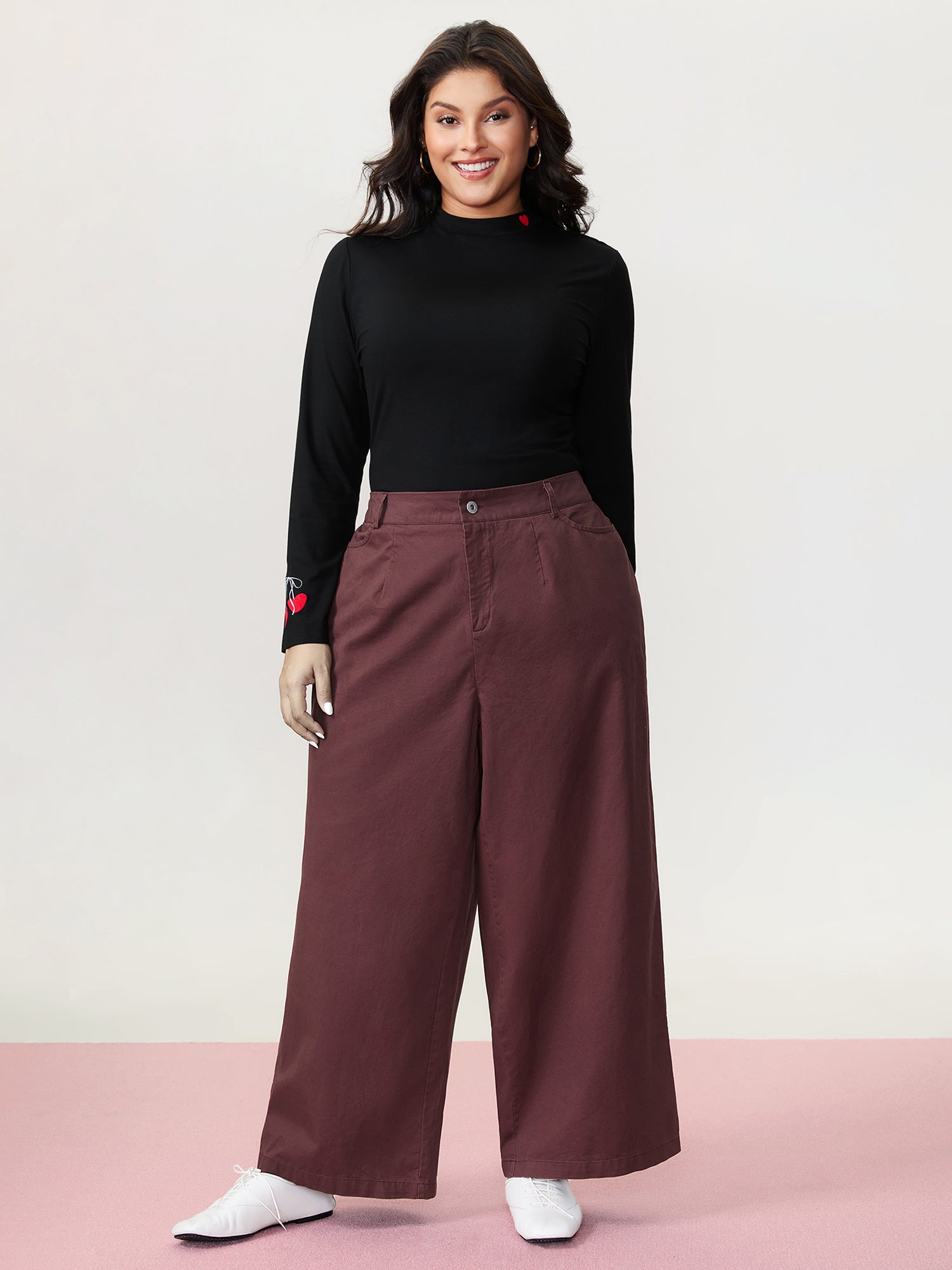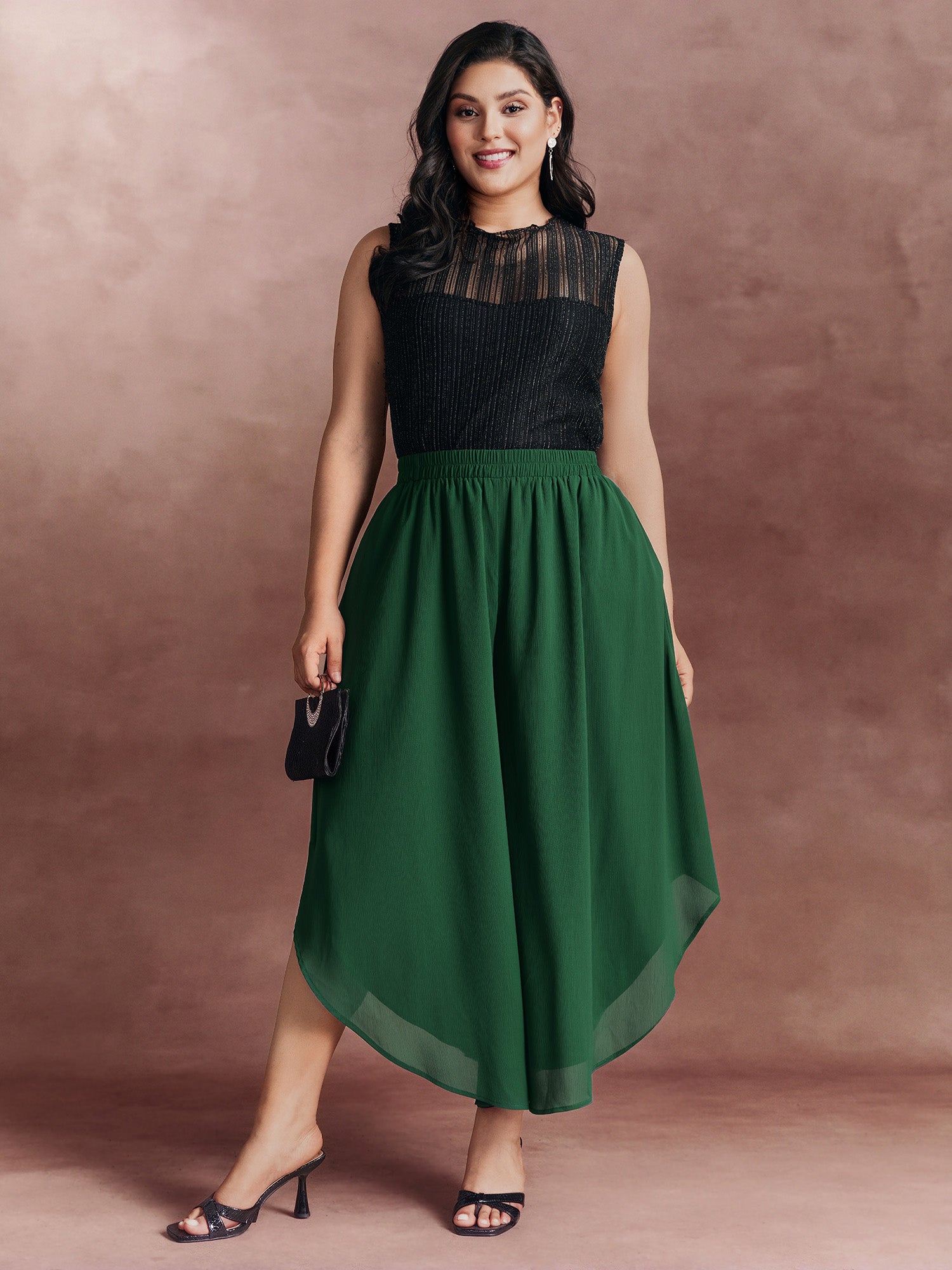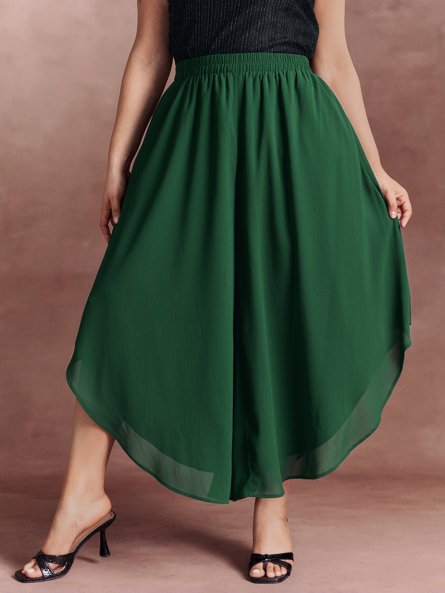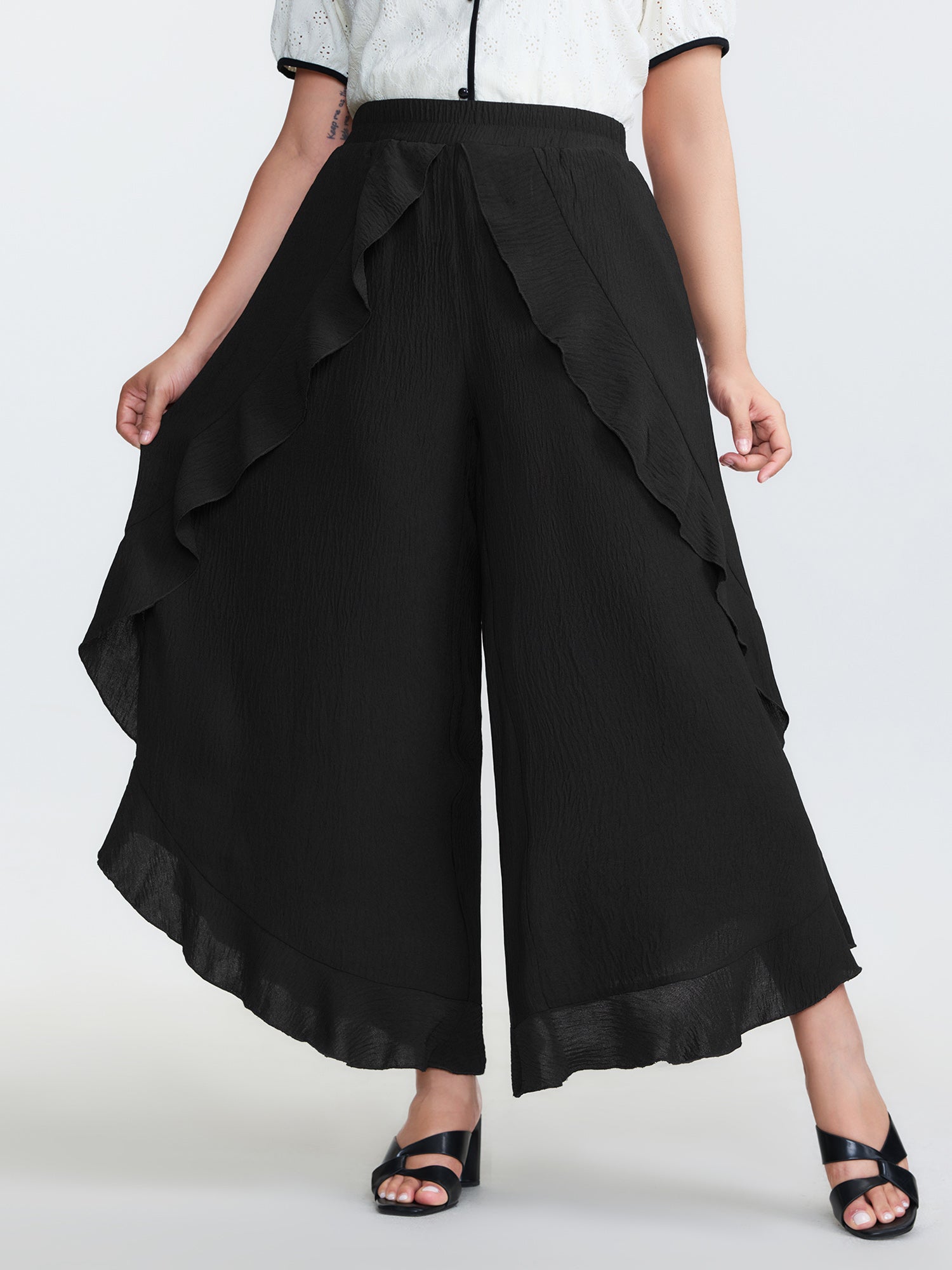 Ruffled Curvy Hem Wide-Leg Pants
