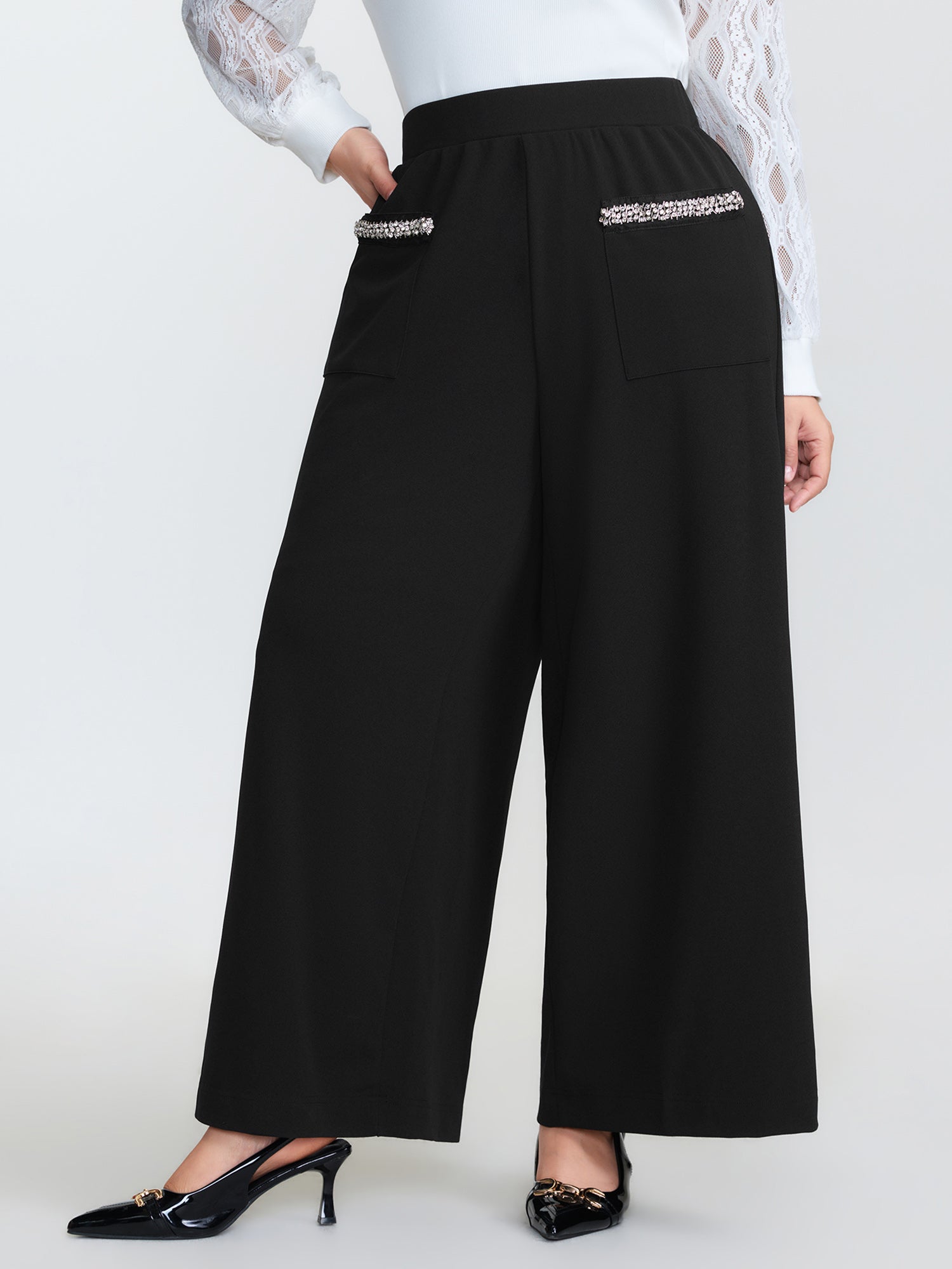 Bead Detail Pockets Pull-On Pants