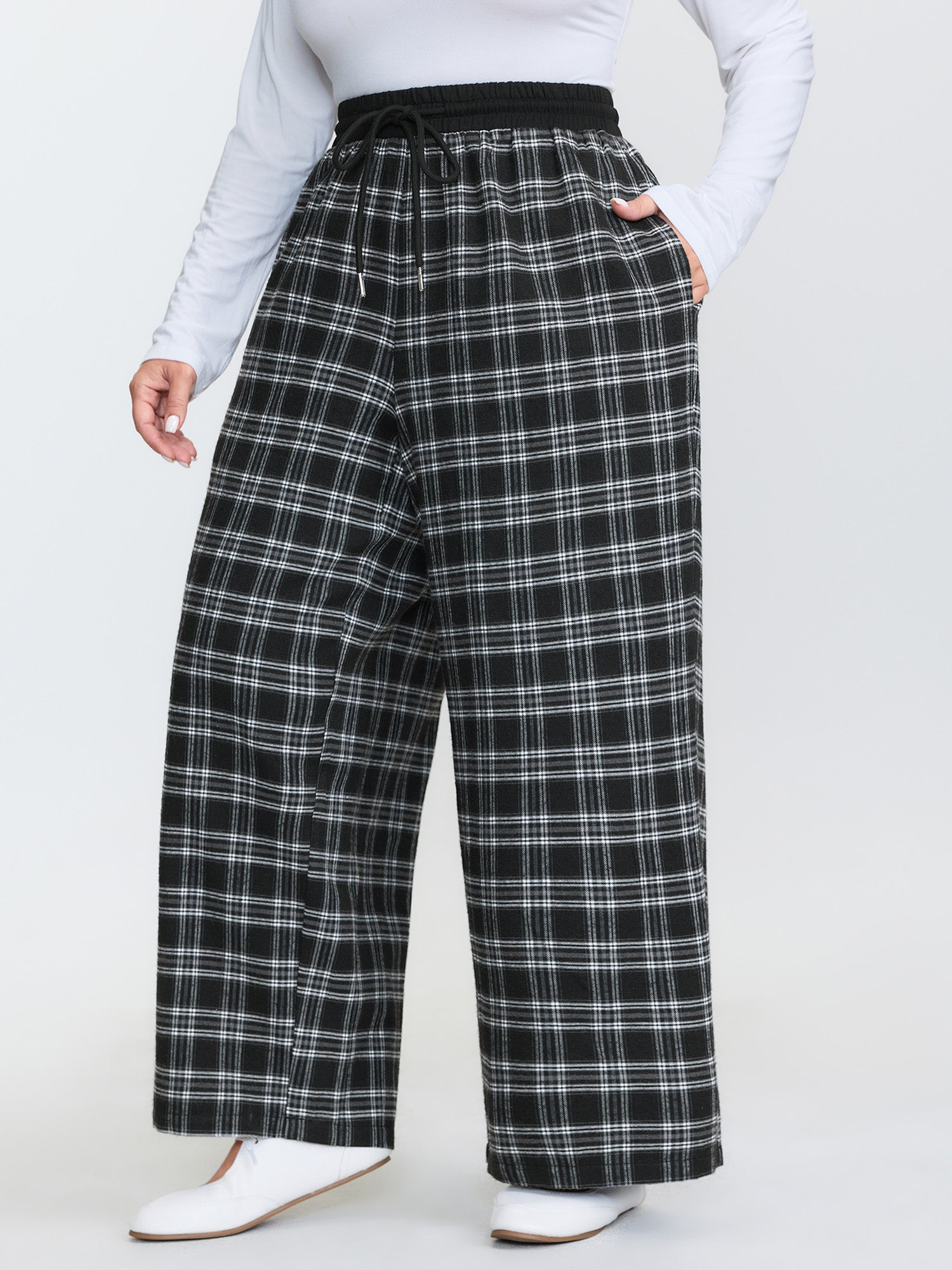 Grid Pattern Contrast Drawstring Pants