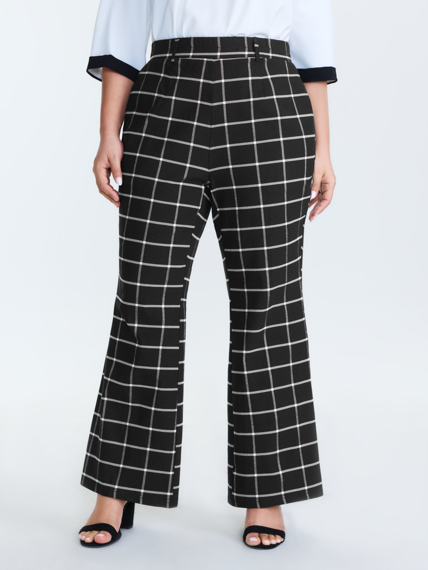 Stretchy Grid Pattern Flared Pants