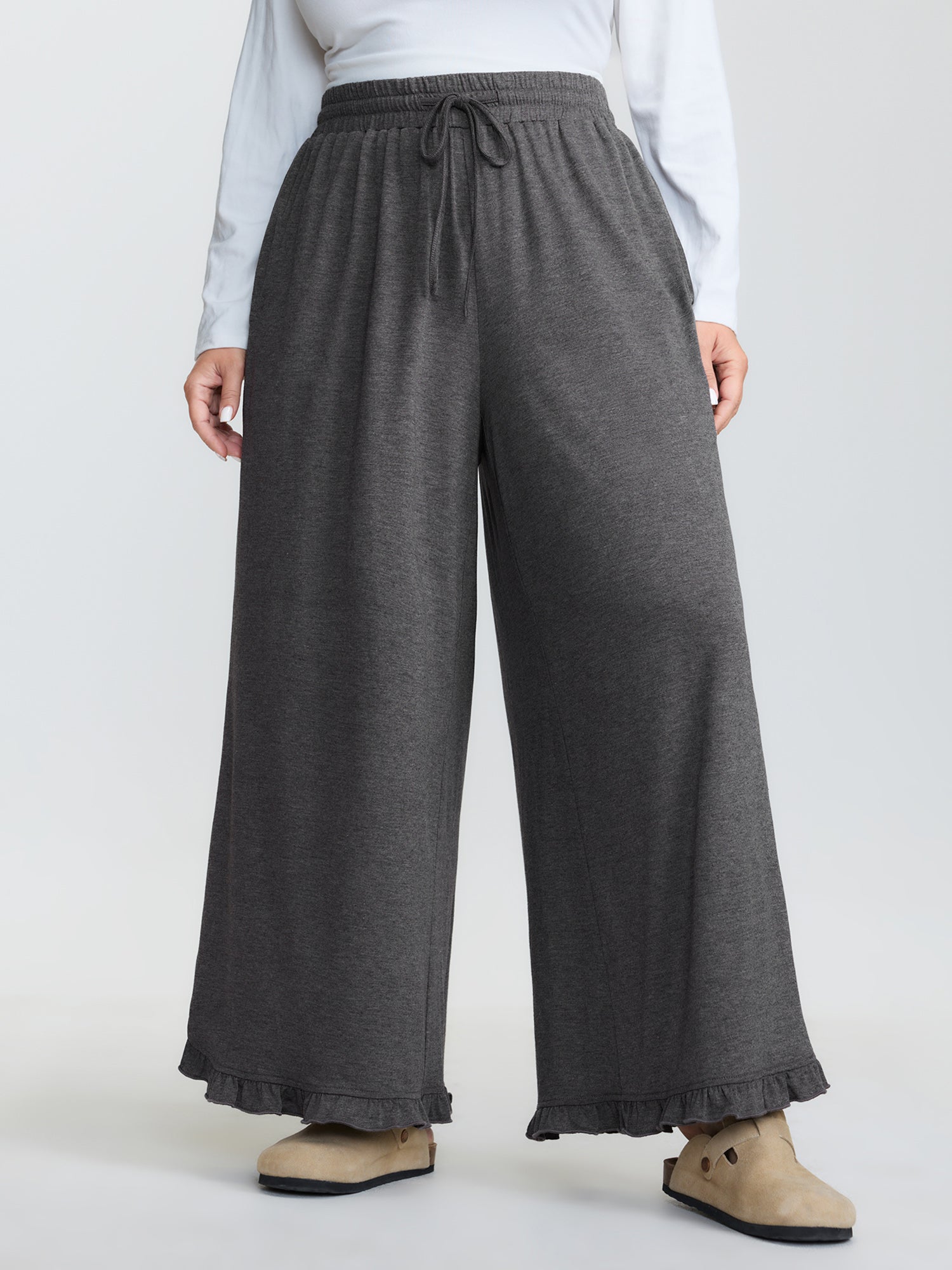 Supersoft Drawstring Waist Ruffled Hem Pants