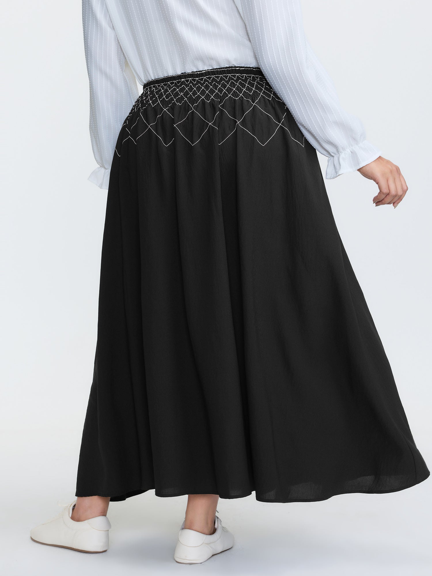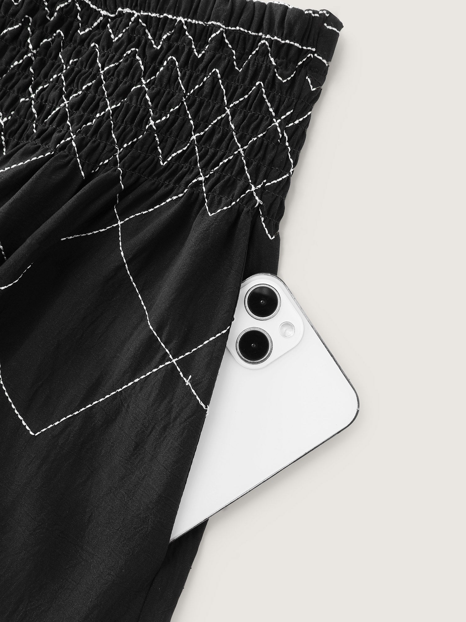 Shop Crisscross Waistband Shirred Midi Dress now and redefine your style with confidence at BloomChic. Tailored for mid and plus-size women. This trendy Bottoms Women, sizes 10-30. Color:Black;Style:Leisure;Prints:Non;Details:Shirred;Pocket:Side seam pocket;Belt:No-belt;Closure Type:Non