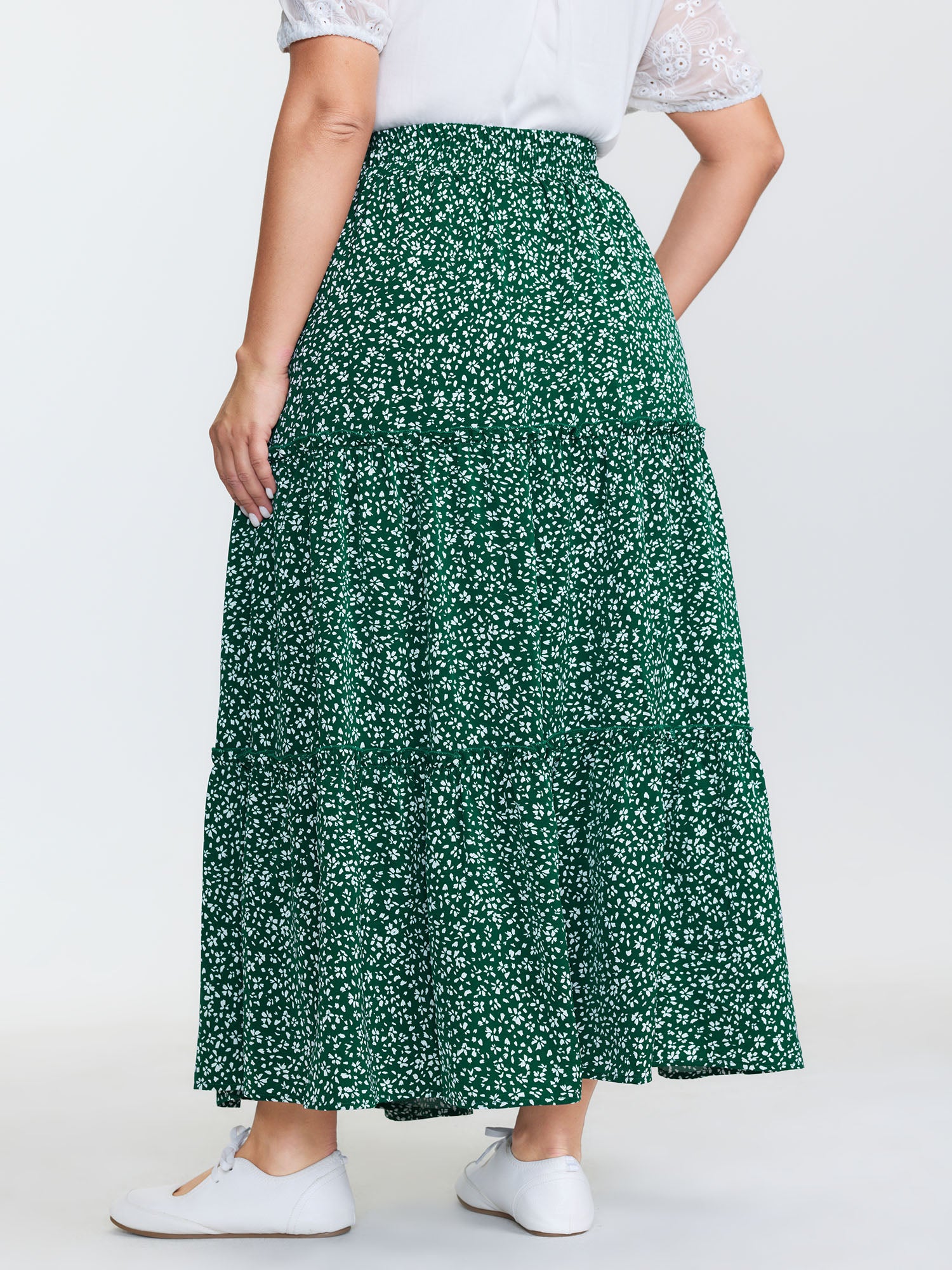 Shop Floral Print Pockets Tiered Maxi Skirt now and redefine your style with confidence at BloomChic. Tailored for mid and plus-size women. This trendy Bottoms Women, sizes 10-30. Color:Dark Green;Style:Leisure;Pattern Type:Natural Flowers;Prints:Ditsy floral;Details:Ruffles;Pocket:Side seam pocket;Belt:No-belt;Closure Type:Non