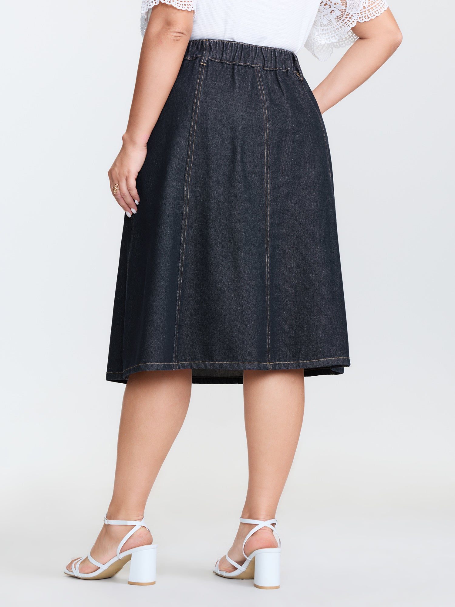 Shop Stretchy Maxi Denim Skirt now and redefine your style with confidence at BloomChic. Tailored for mid and plus-size women. This trendy Denim Women, sizes 10-30. Color:Midnight;Style:Timeless;Prints:Non;Pocket:Side seam pocket;Belt:No-belt;Closure Type:Open front with closure;Wash:Dark Wash