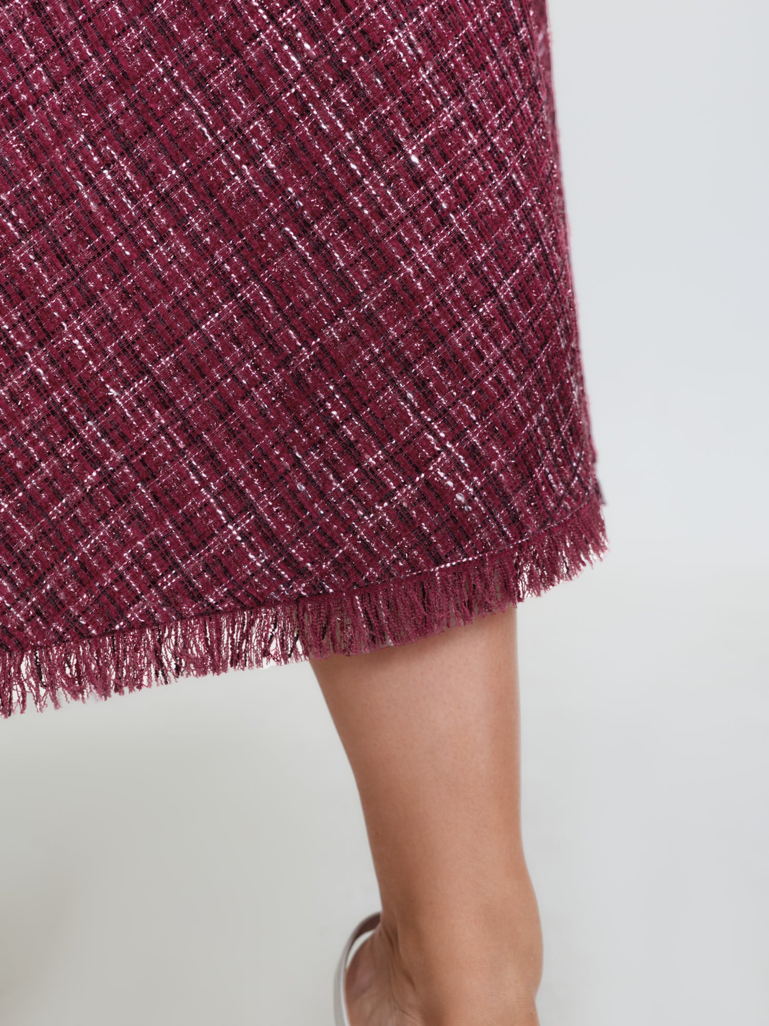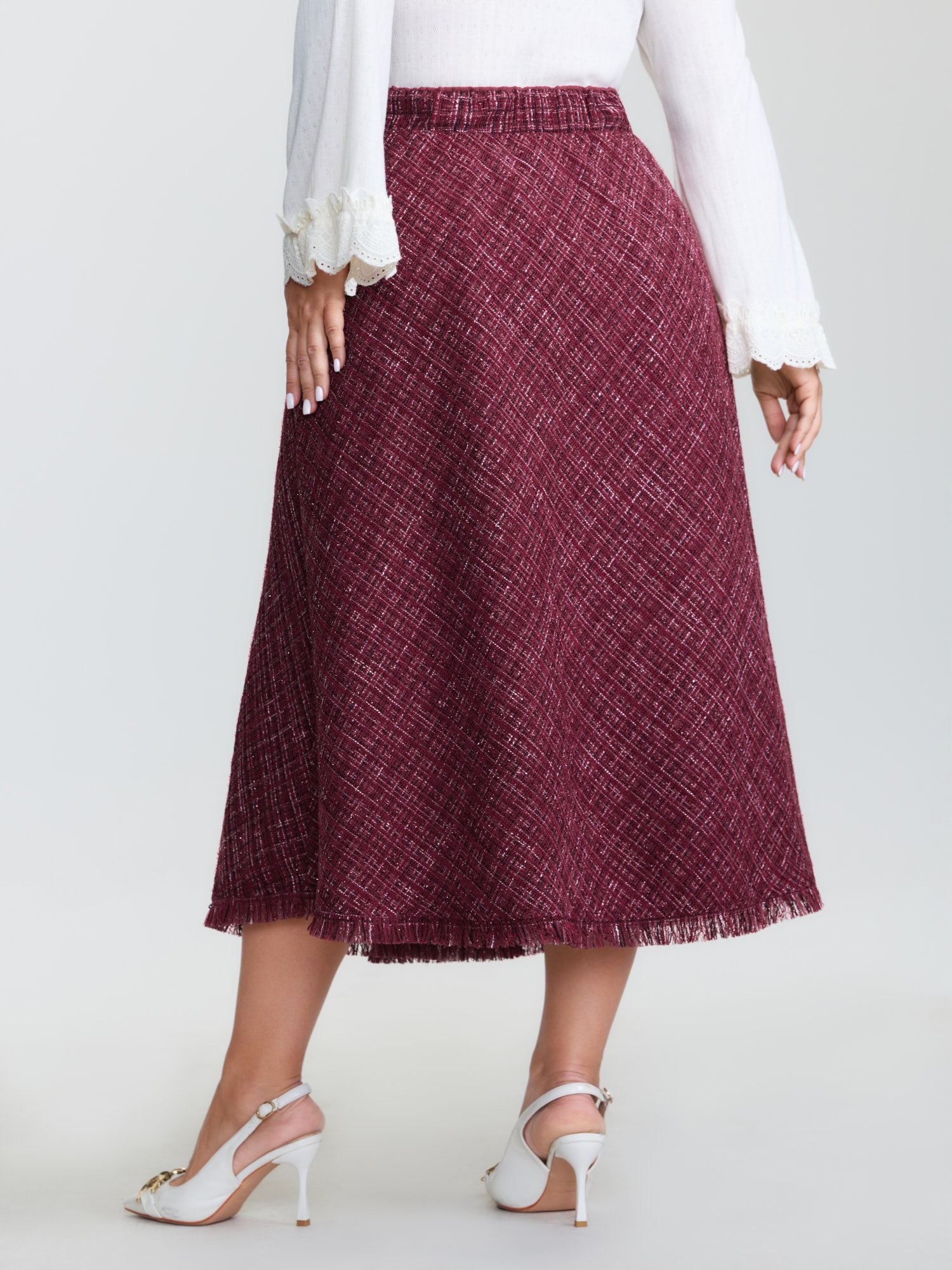 Tweed Fringe Hem Flowy Maxi Skirt
