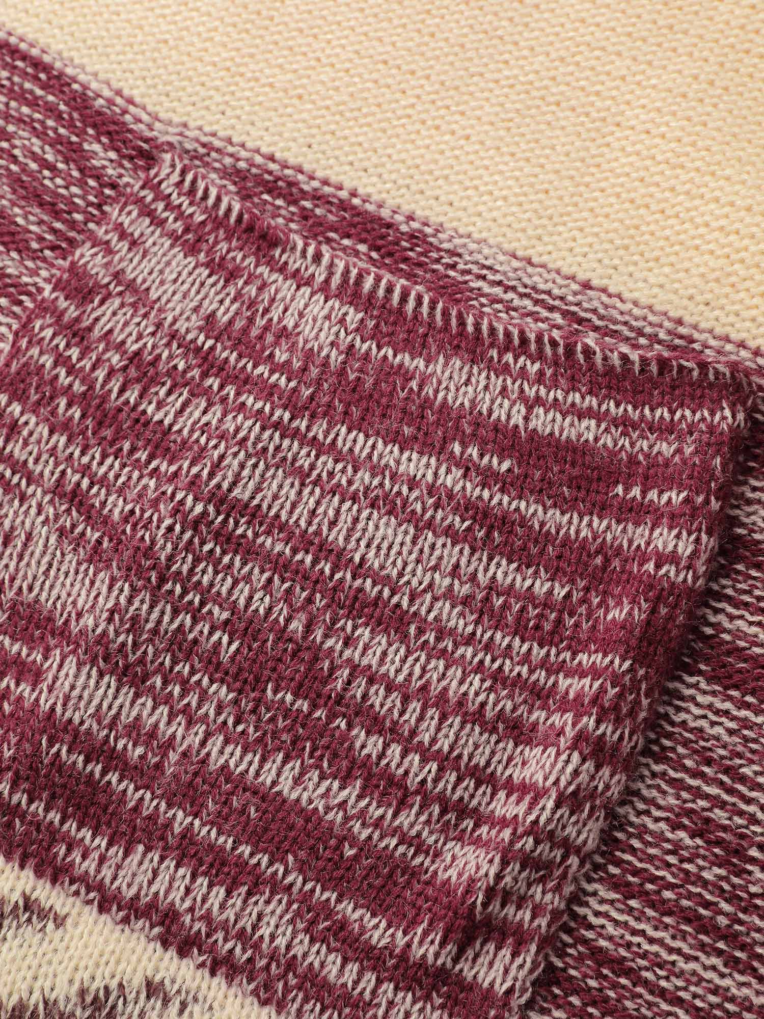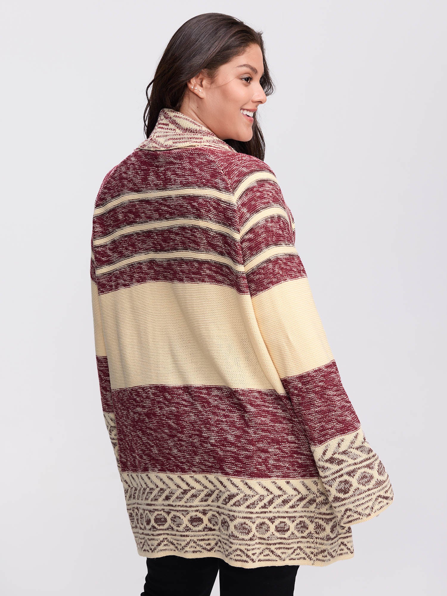 Boho Striped Jacquard Open-Front Knit Cardigan