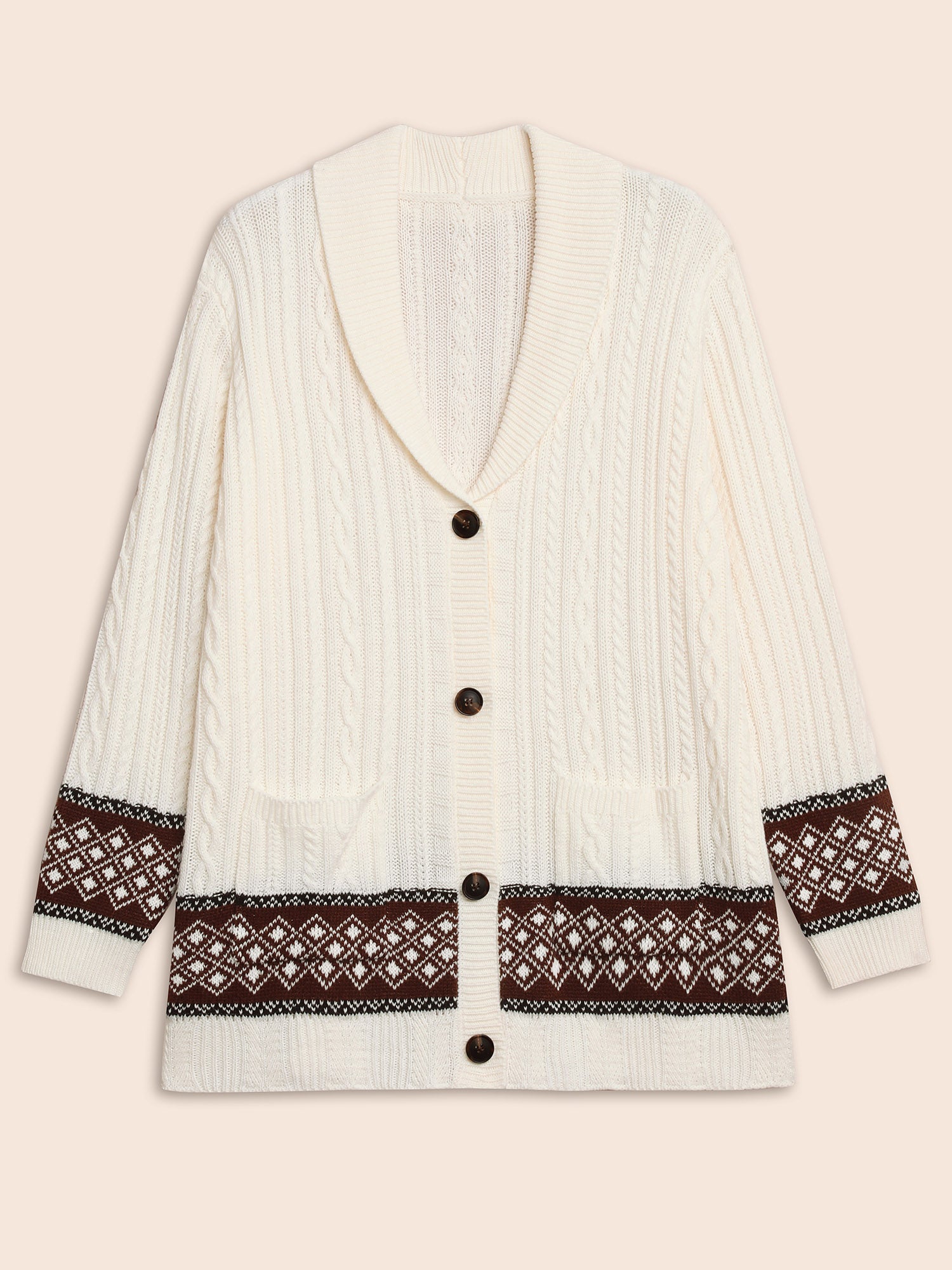Shop Cable Knit Pockets Collared Cardigan now and redefine your style with confidence at BloomChic. Tailored for mid and plus-size women. This trendy Sweaters Cardigans Women, sizes 10-30. Season:Winter;Color:Ivory;Style:Casual Everyday;Neckline:Lapel Collar;Sleeve Type:Regular Sleeve;Prints:Bohemian print;Details:Button, Contrast, Texture, Cable Knit;Pocket:Patch pocket;Belt:No-belt;Closure Type:Open front with closure