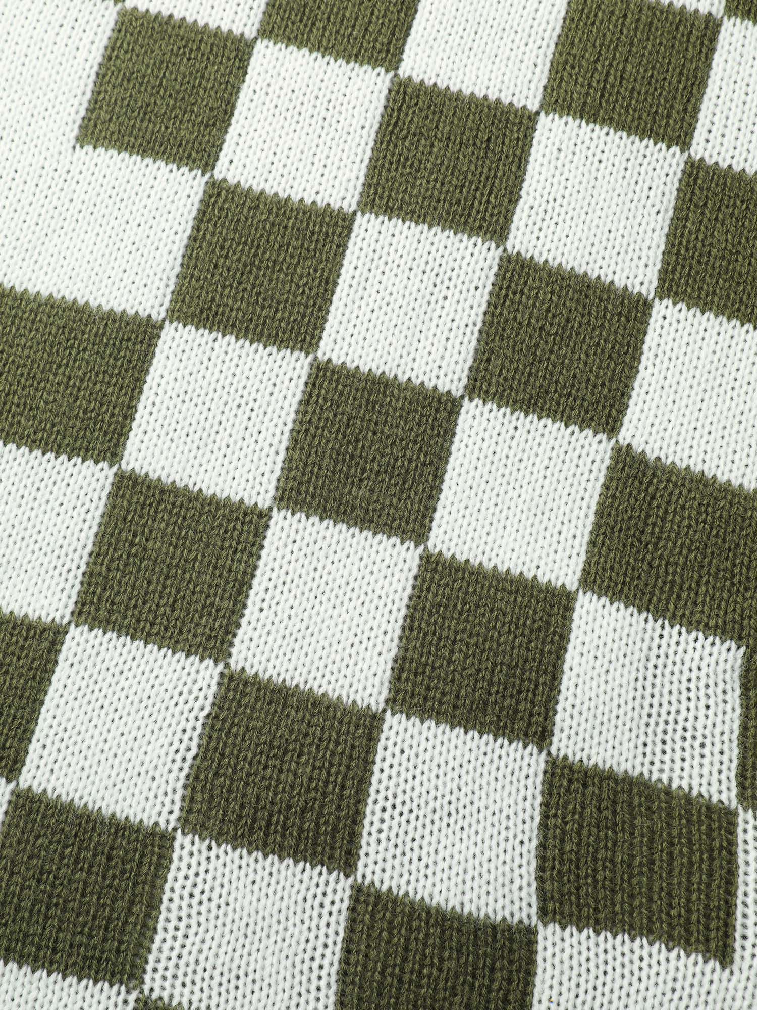 Colorblock Checkered Print Pullover