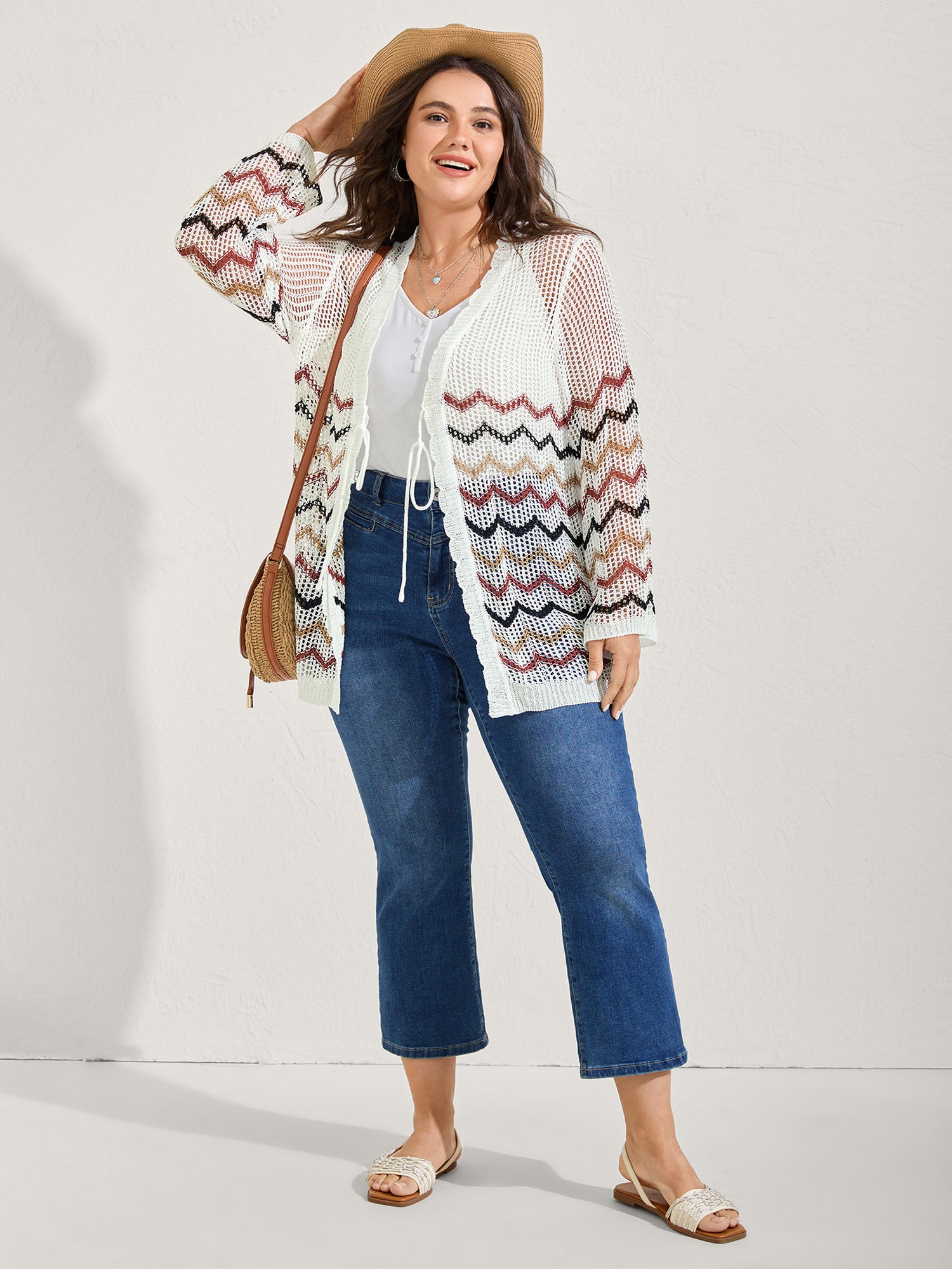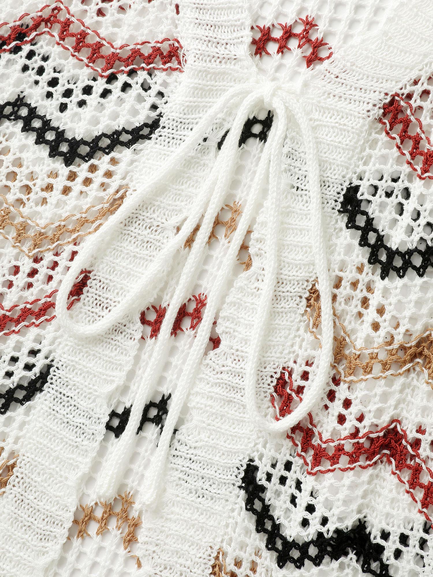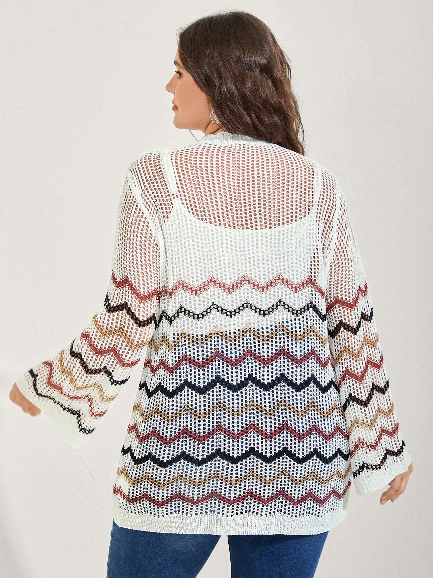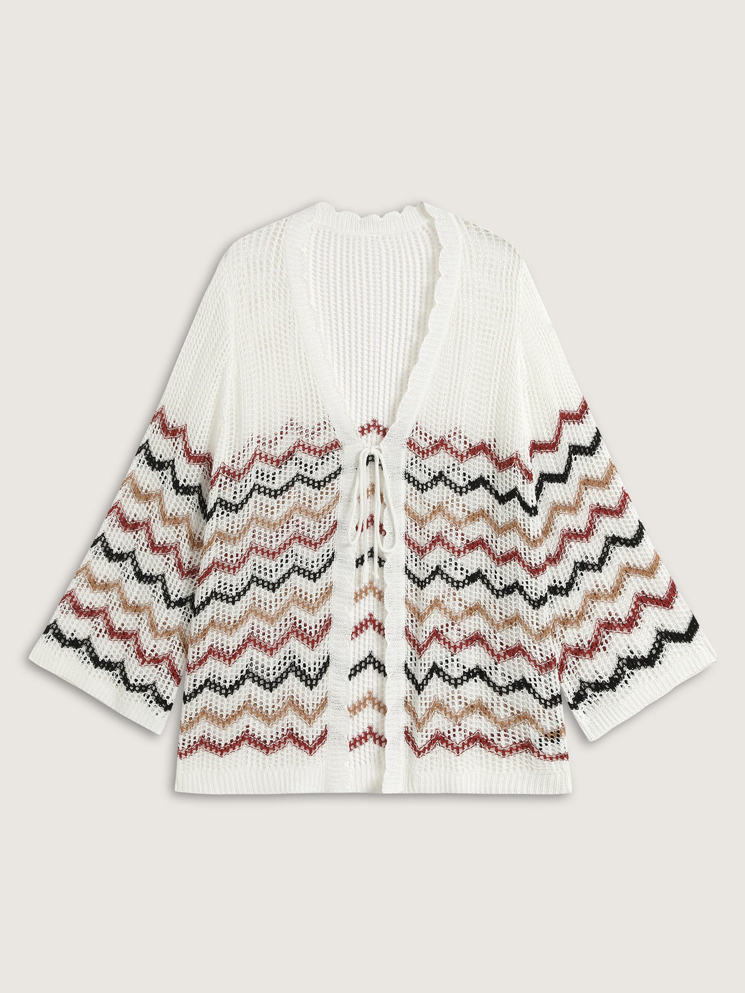 Shop Irregular Stripes Front Double Tie Lightweight Cardigan now and redefine your style with confidence at BloomChic. Tailored for mid and plus-size women. This trendy Sweaters Cardigans Women, sizes 10-30. Color:Ivory;Neckline:V-neck;Sleeve Type:Bell Sleeve;Prints:Stripes;Details:Tie knot, Contrast, Texture, Cut-Out;Pocket:No-pocket;Belt:No-belt;Closure Type:Tie belt