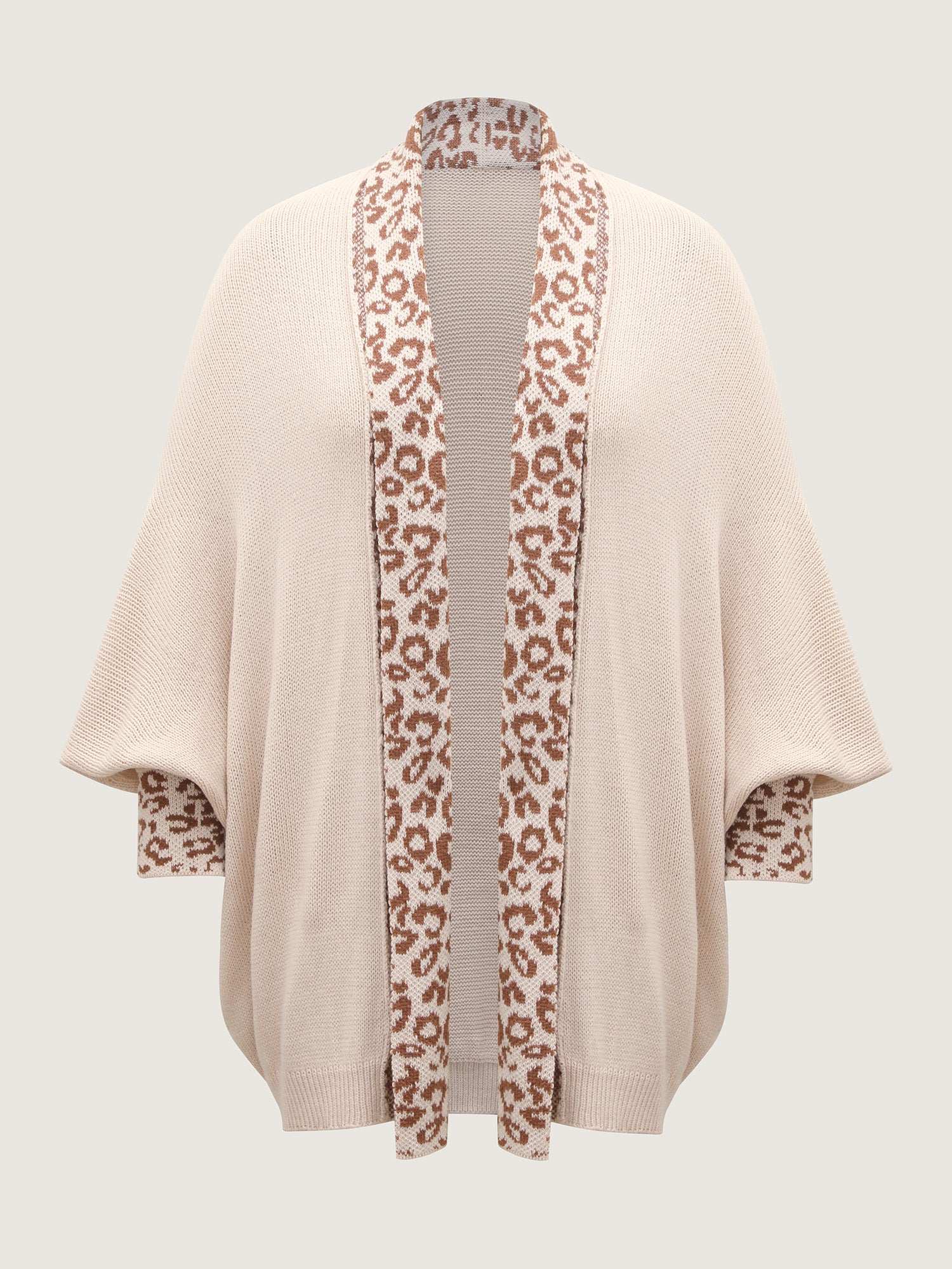Leopard Collar Dolman Sleeve Knit Cardigan