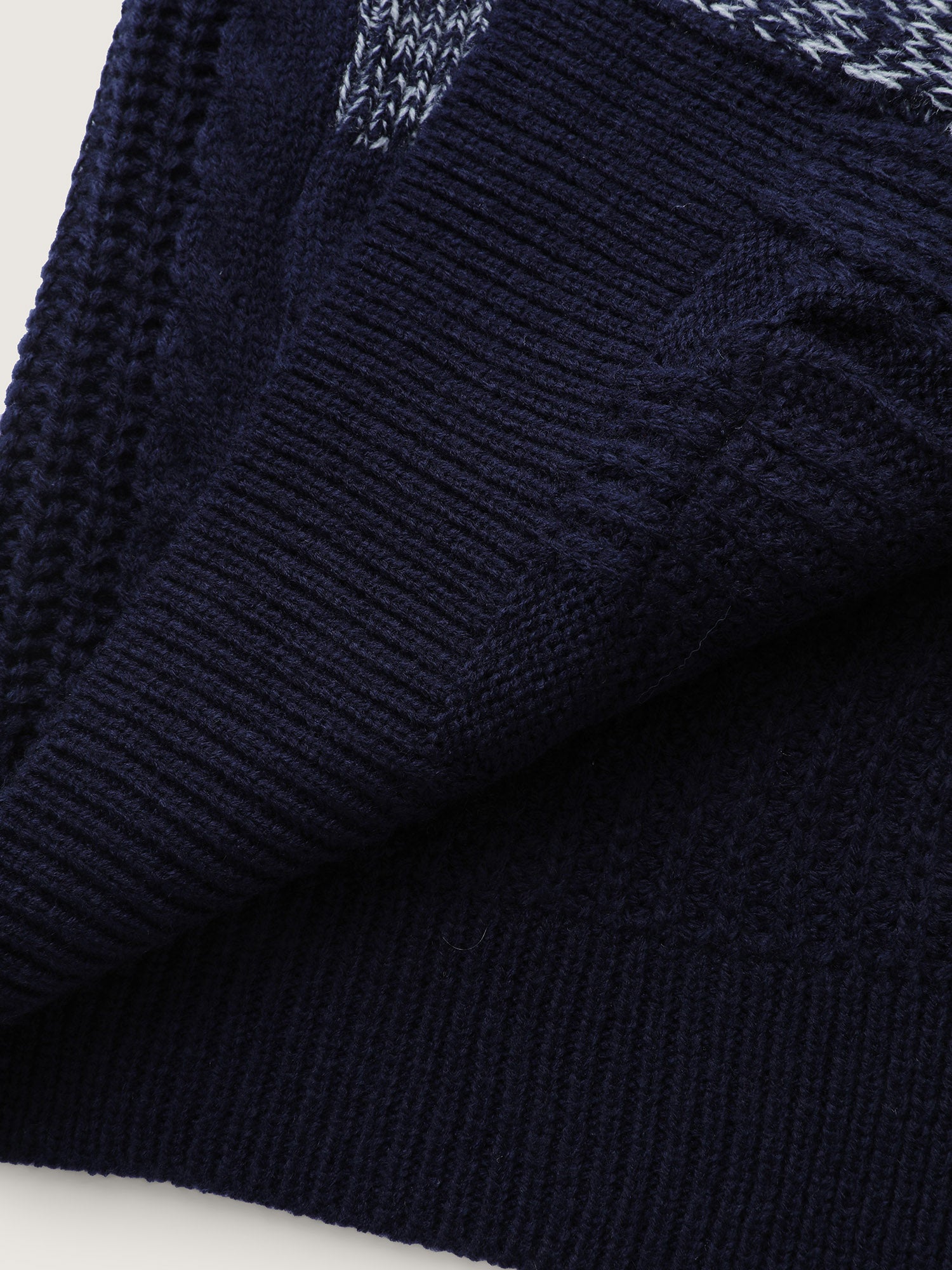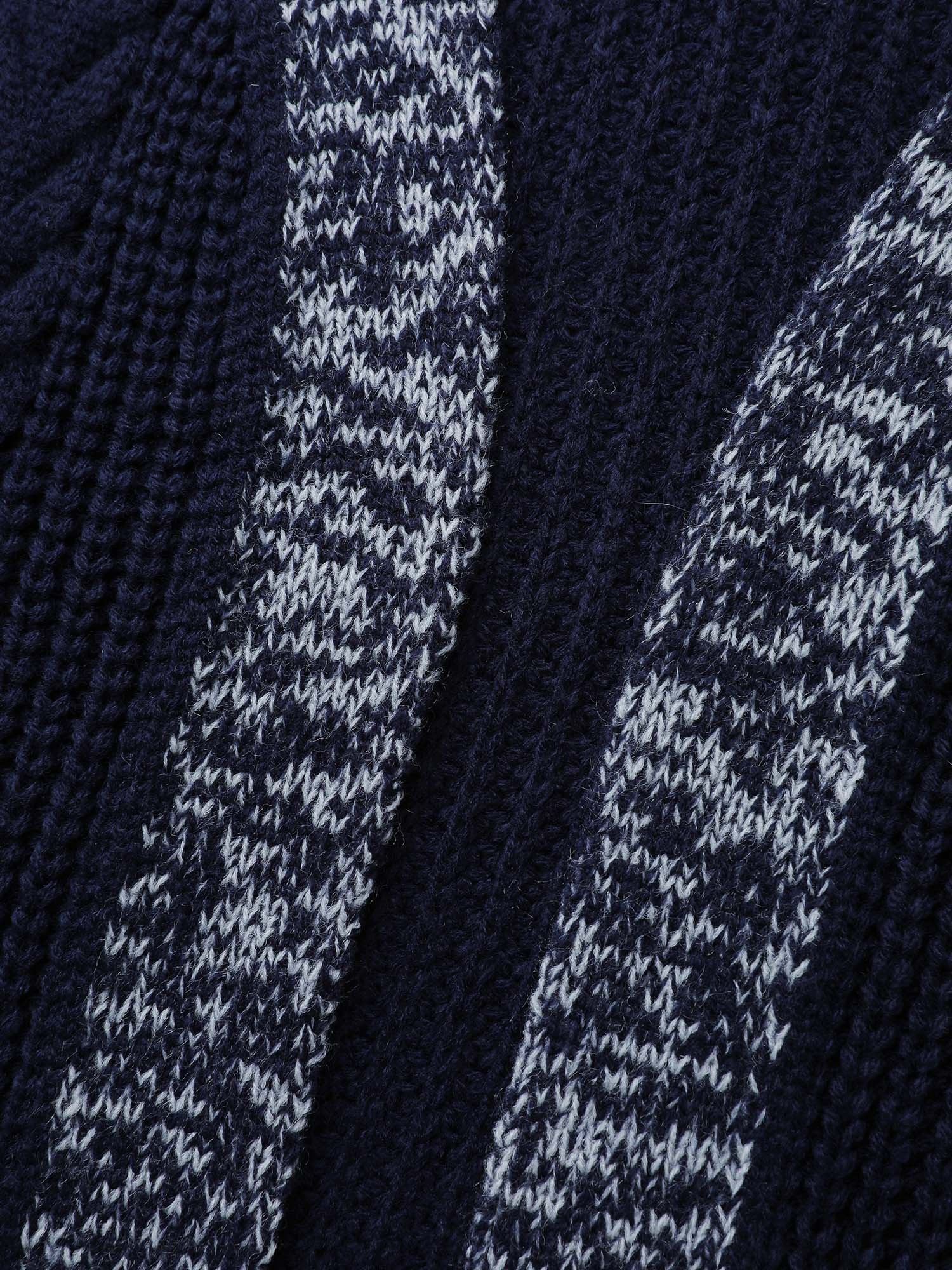 Mixed-Yarn Color Contrast Pockets Knit Cardigan