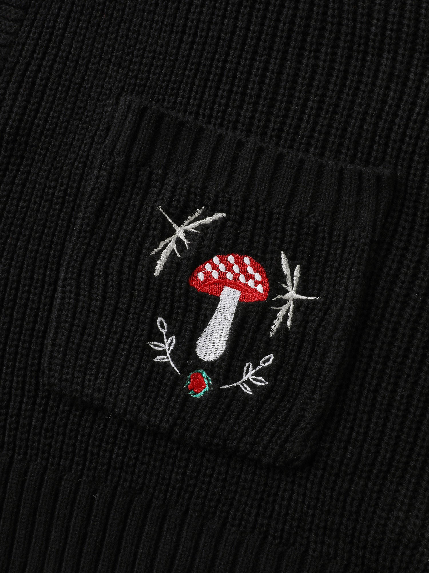 Mushroom Embroidery Textured Button Cardigan