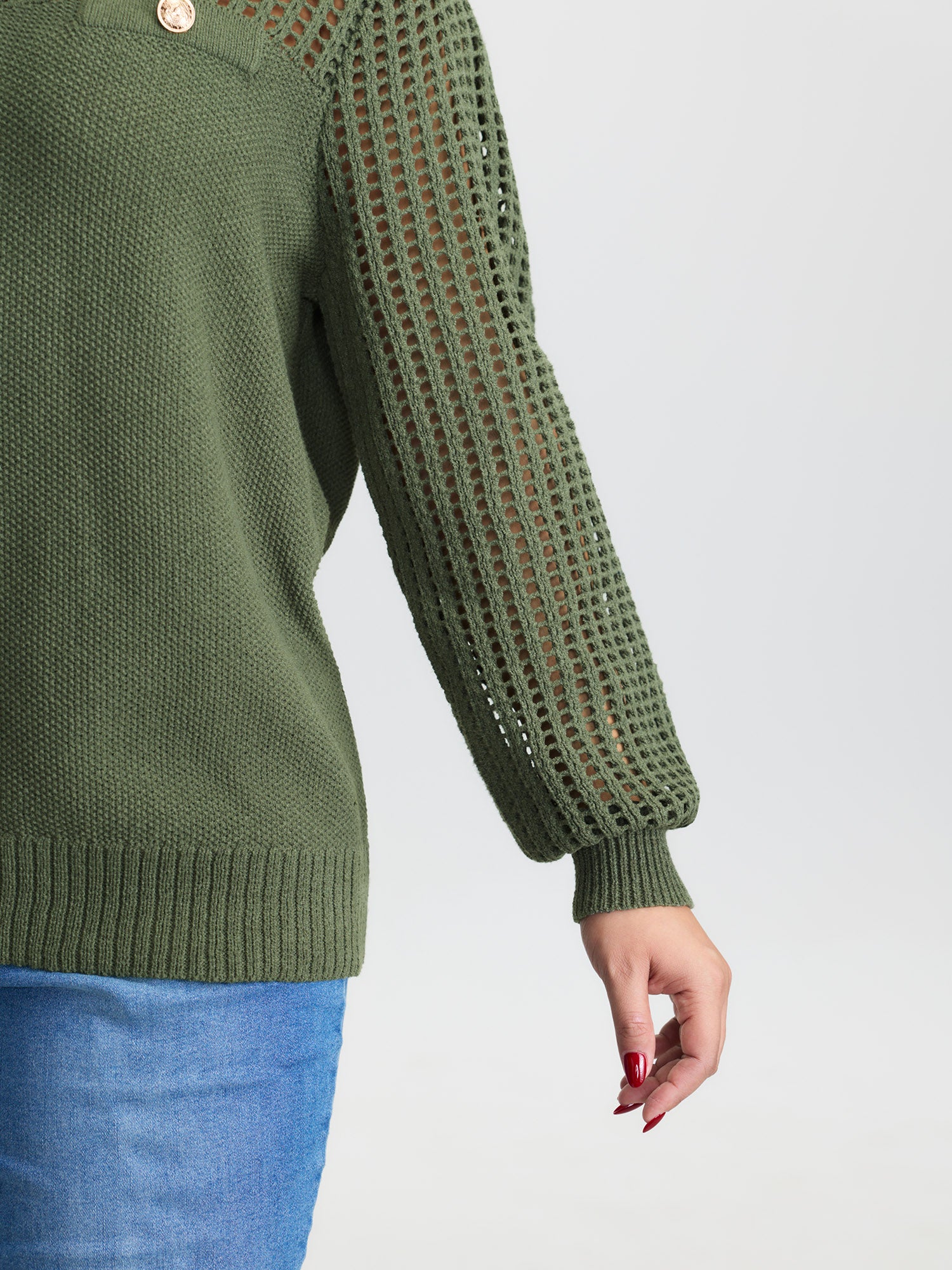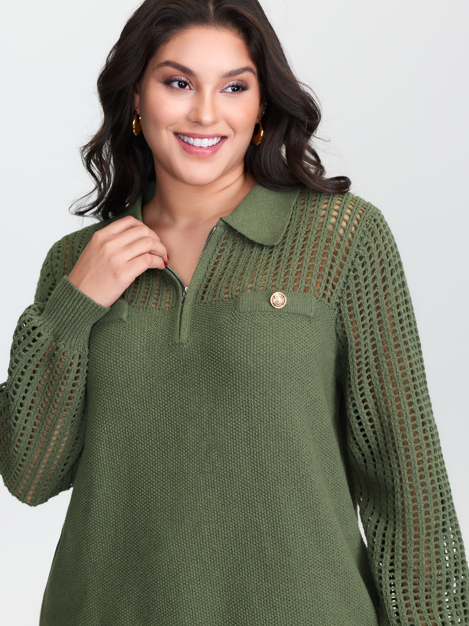 Shop Polo Collar Cut-Out Pullover now and redefine your style with confidence at BloomChic. Tailored for mid and plus-size women. This trendy Sweaters Cardigans Women, sizes 10-30. Color:Army Green;Style:Leisure;Neckline:Polo;Sleeve Type:Regular Sleeve;Prints:Non;Details:Cut-Out, Button;Pocket:No-pocket;Belt:No-belt;Closure Type:Half-open front