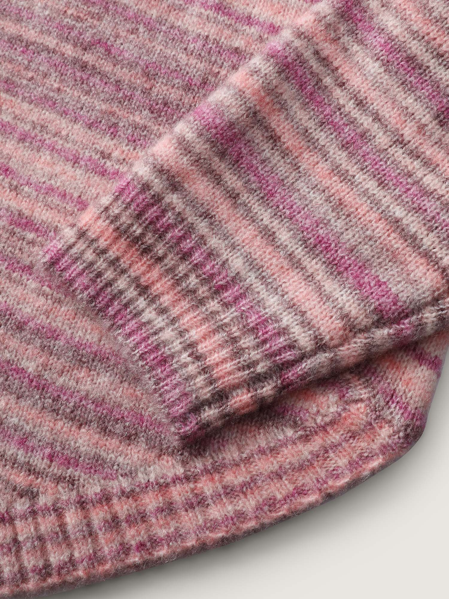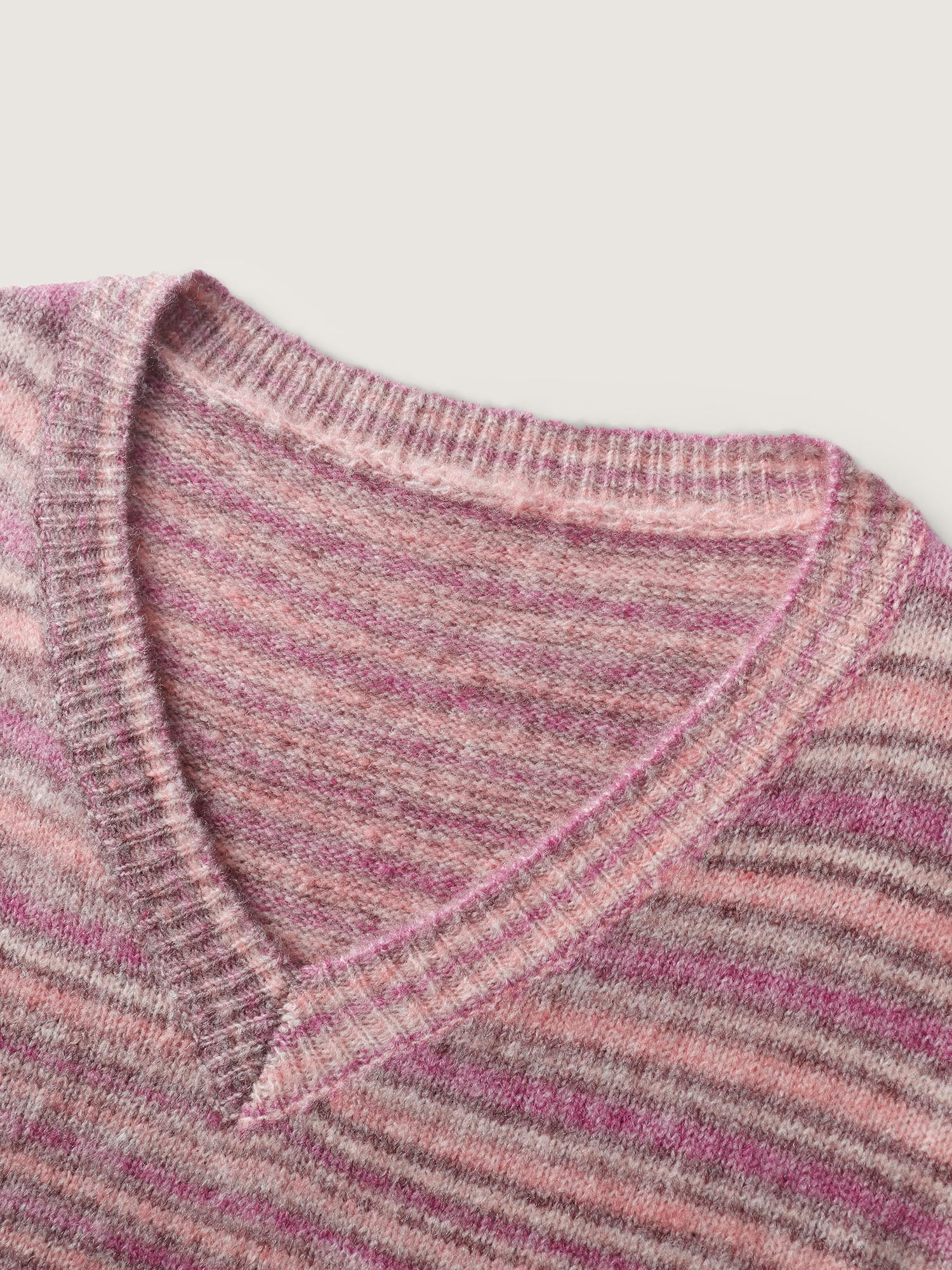 Ribbed Texture Curvy Hem V-Neck Pullover