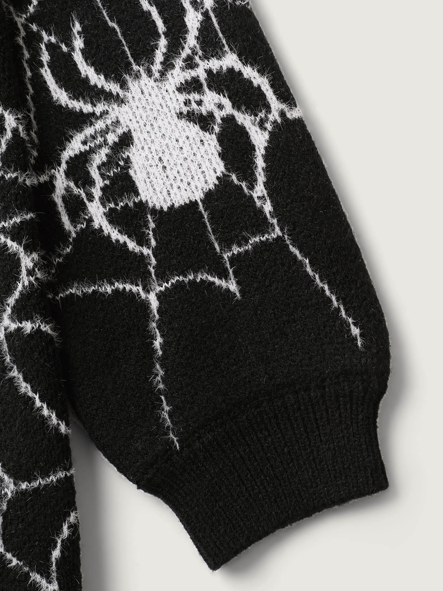 Spiderweb Jacquard Print Ribbed Pullover