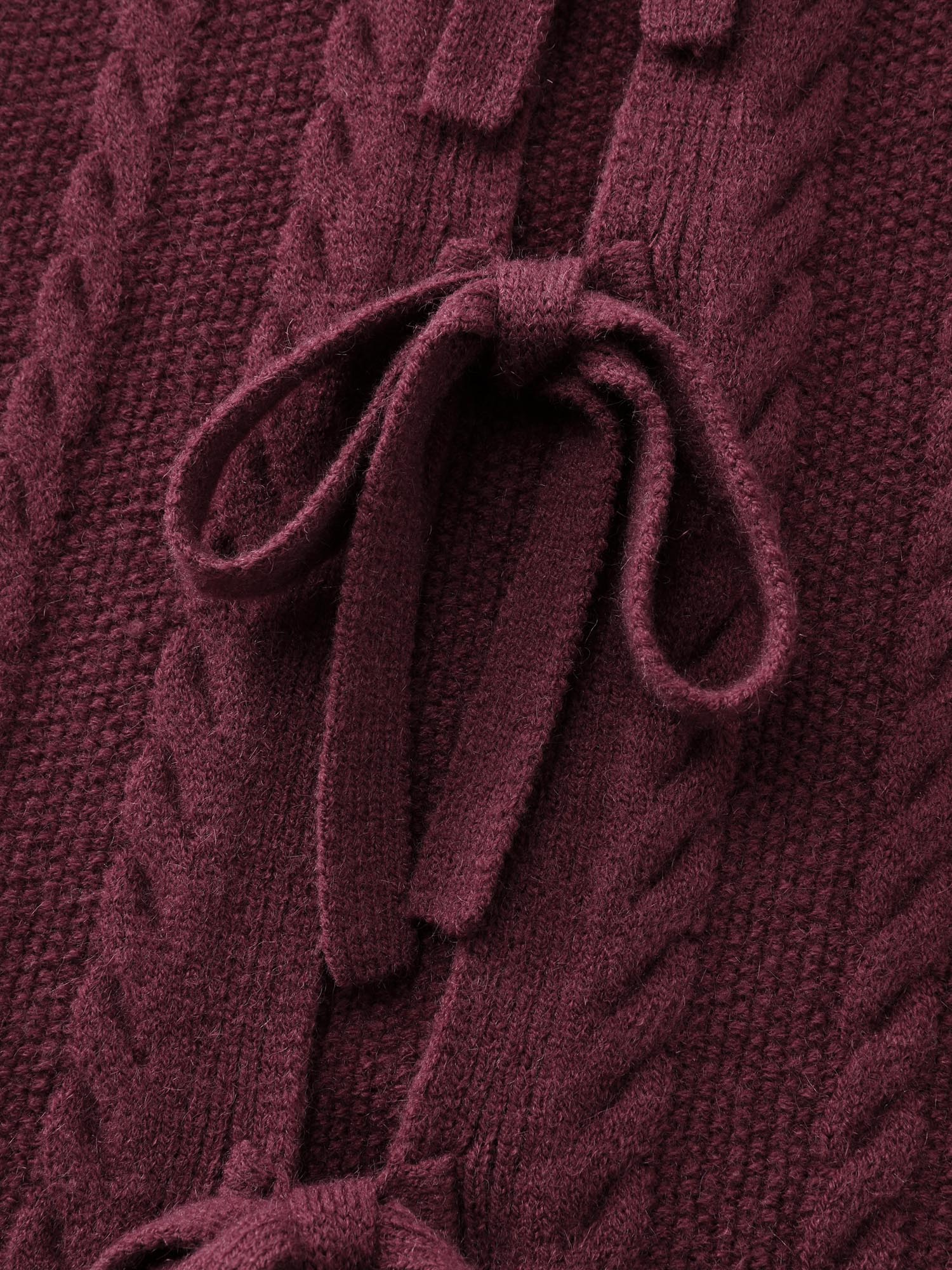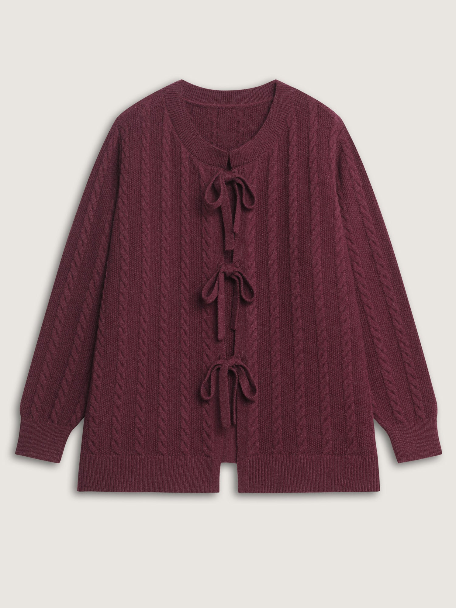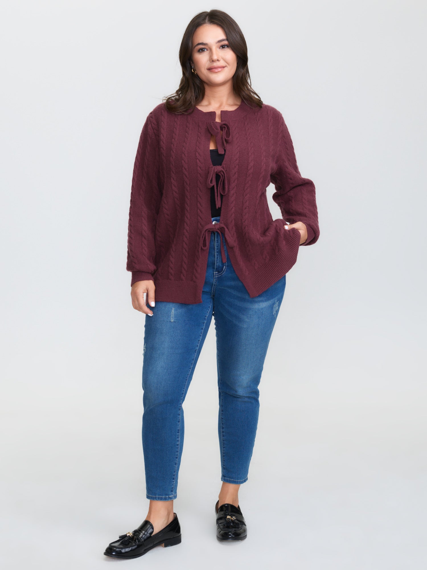 Shop Stretchy Braided Textured Front-Tie Knit Cardigan now and redefine your style with confidence at BloomChic. Tailored for mid and plus-size women. This trendy Sweaters Cardigans Women, sizes 10-30. Color:Deepred;Style:Leisure;Neckline:Round Neck;Sleeve Type:Regular Sleeve;Prints:Non;Details:Knotted, Cross straps, Texture, Cable Knit;Pocket:No-pocket;Belt:No-belt;Closure Type:Tie belt