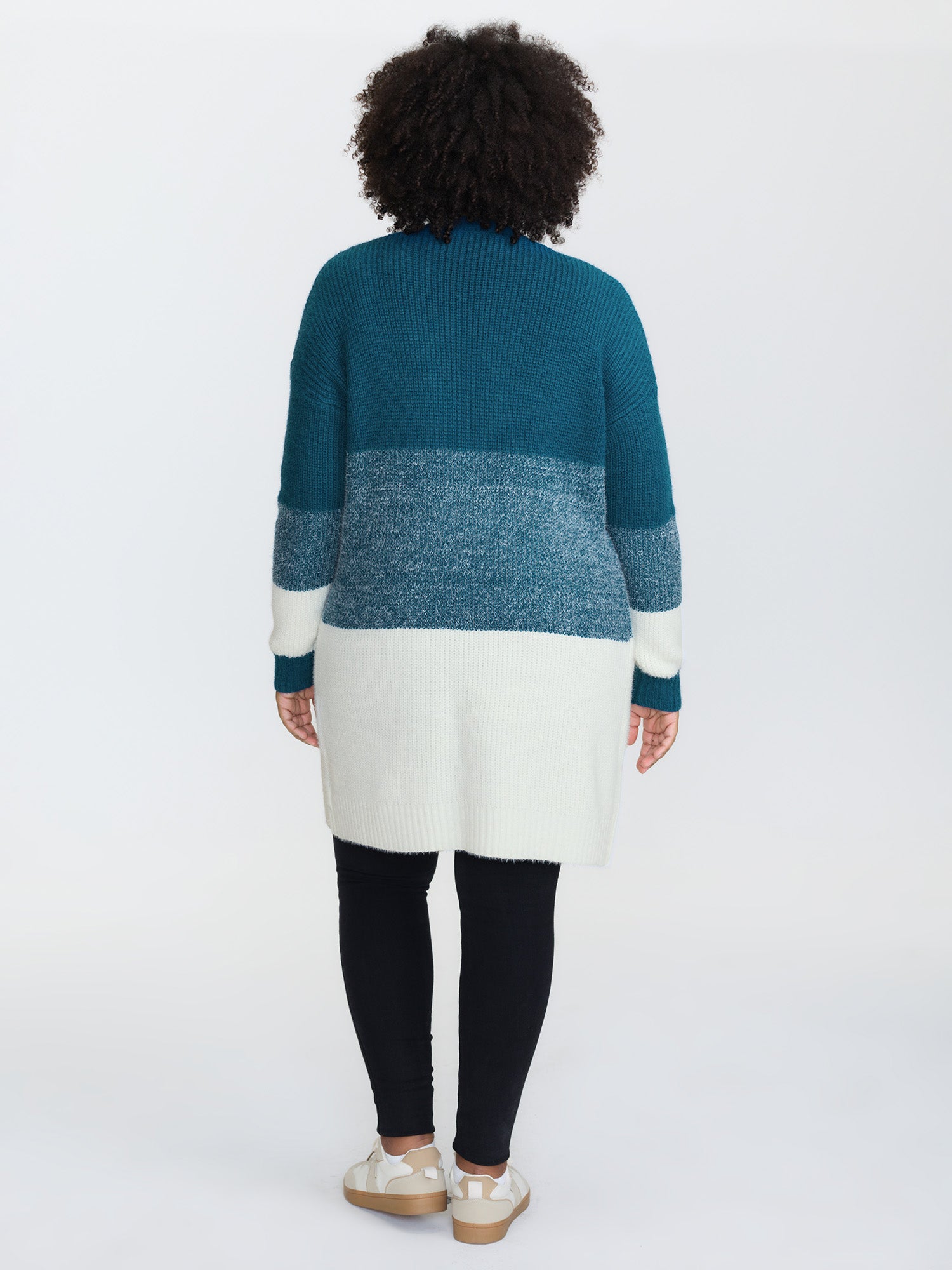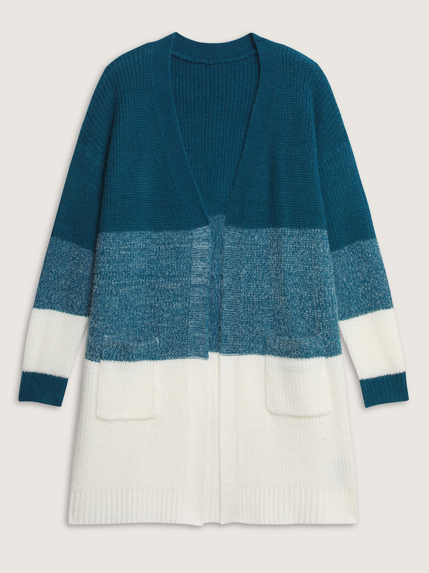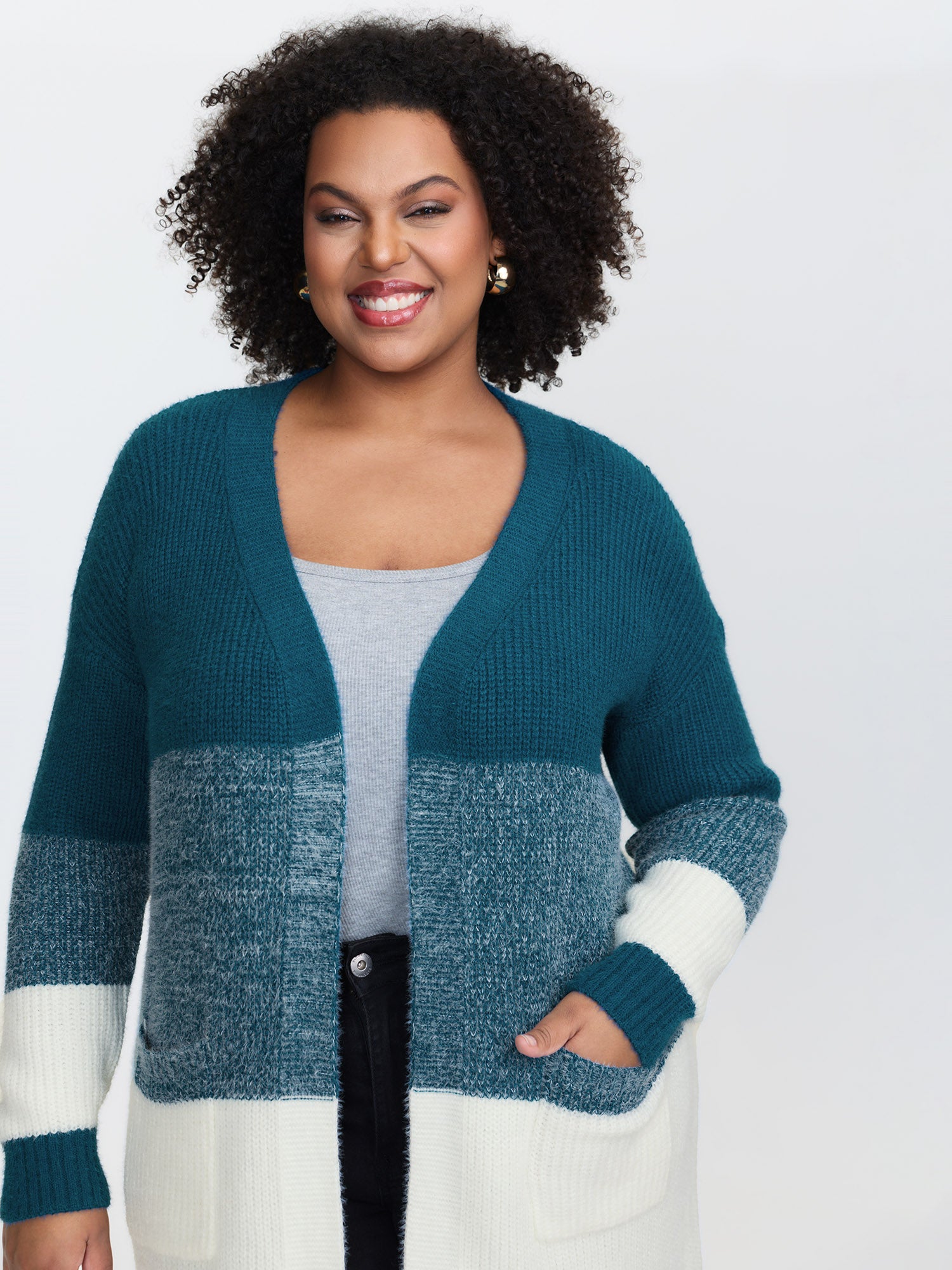 Shop Super Stretchy Colorblock Fuzzy Textured Knit Cardigan now and redefine your style with confidence at BloomChic. Tailored for mid and plus-size women. This trendy Sweaters Cardigans Women, sizes 10-30. Color:Aegean;Style:Leisure;Neckline:Kimono collar;Sleeve Type:Drop shoulder sleeve;Prints:Geometric & color block;Details:Texture;Pocket:Patch pocket;Belt:No-belt;Closure Type:Open front without closure