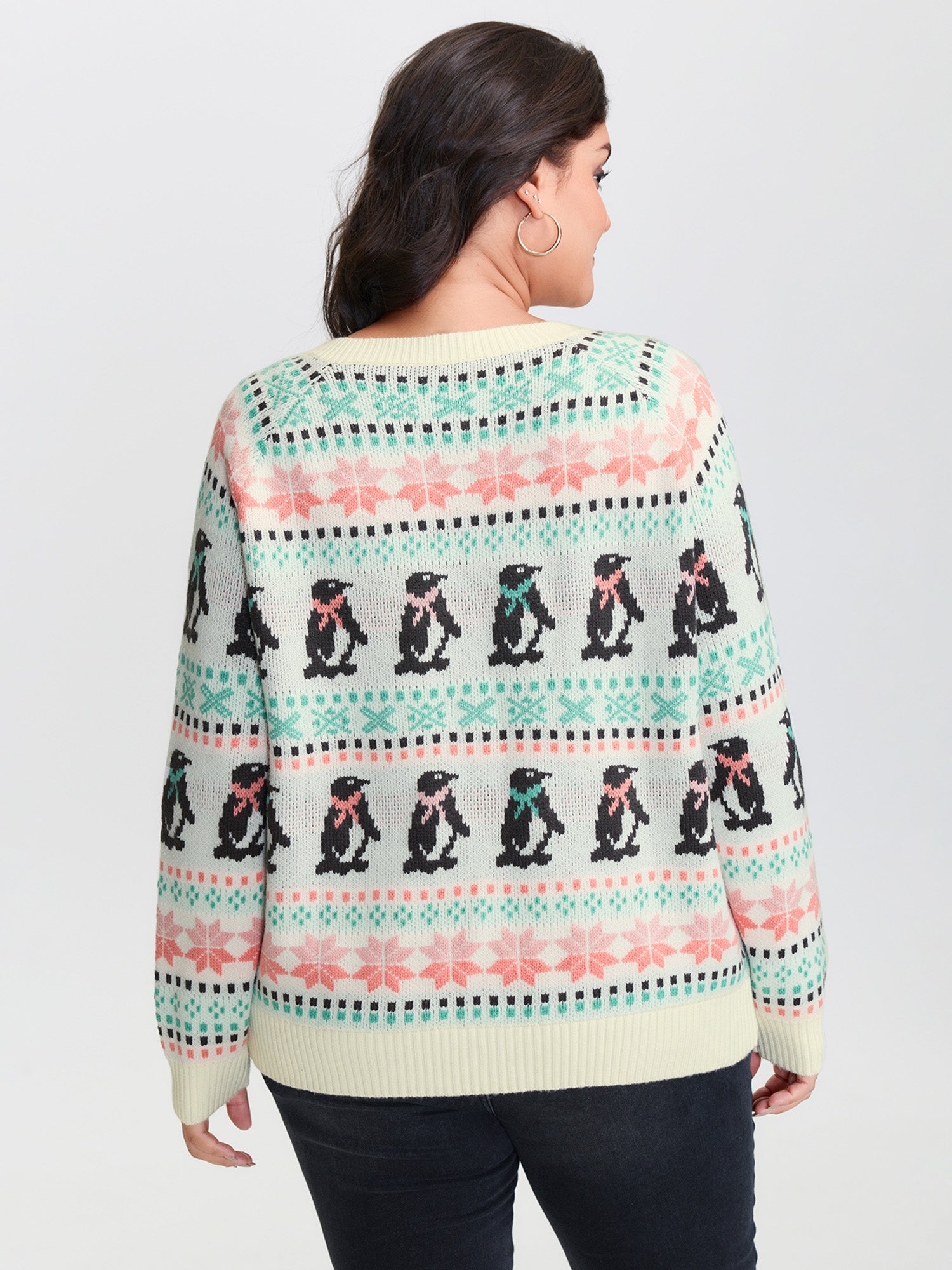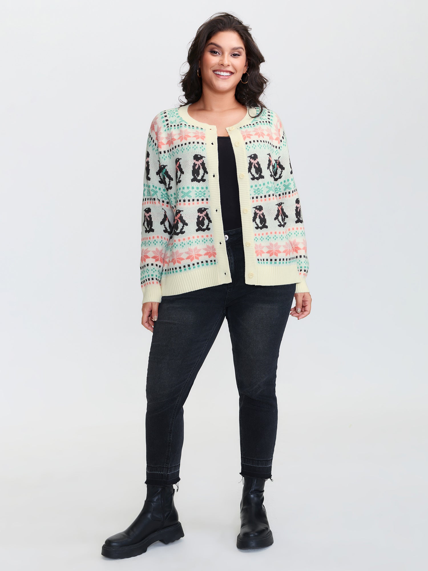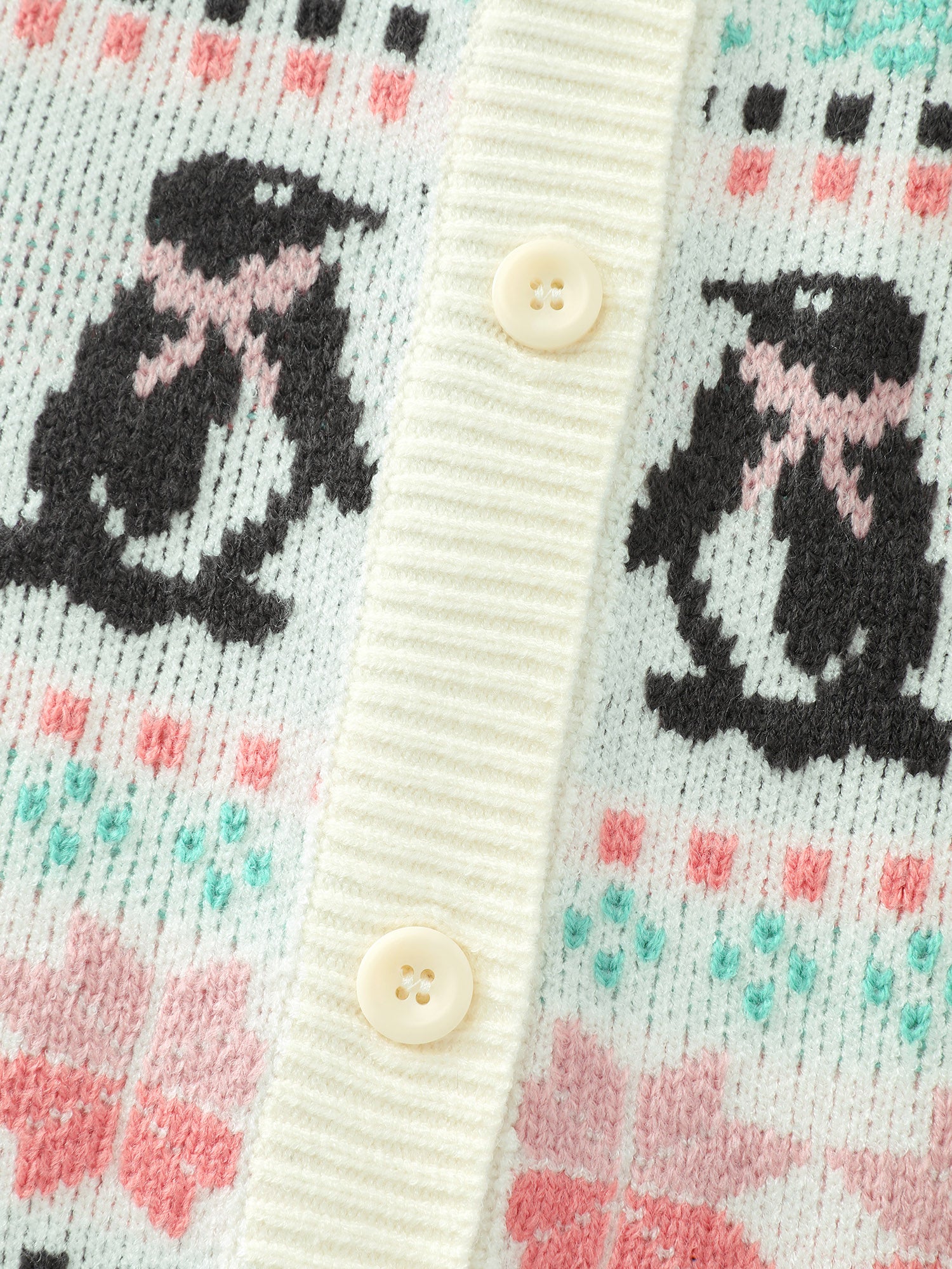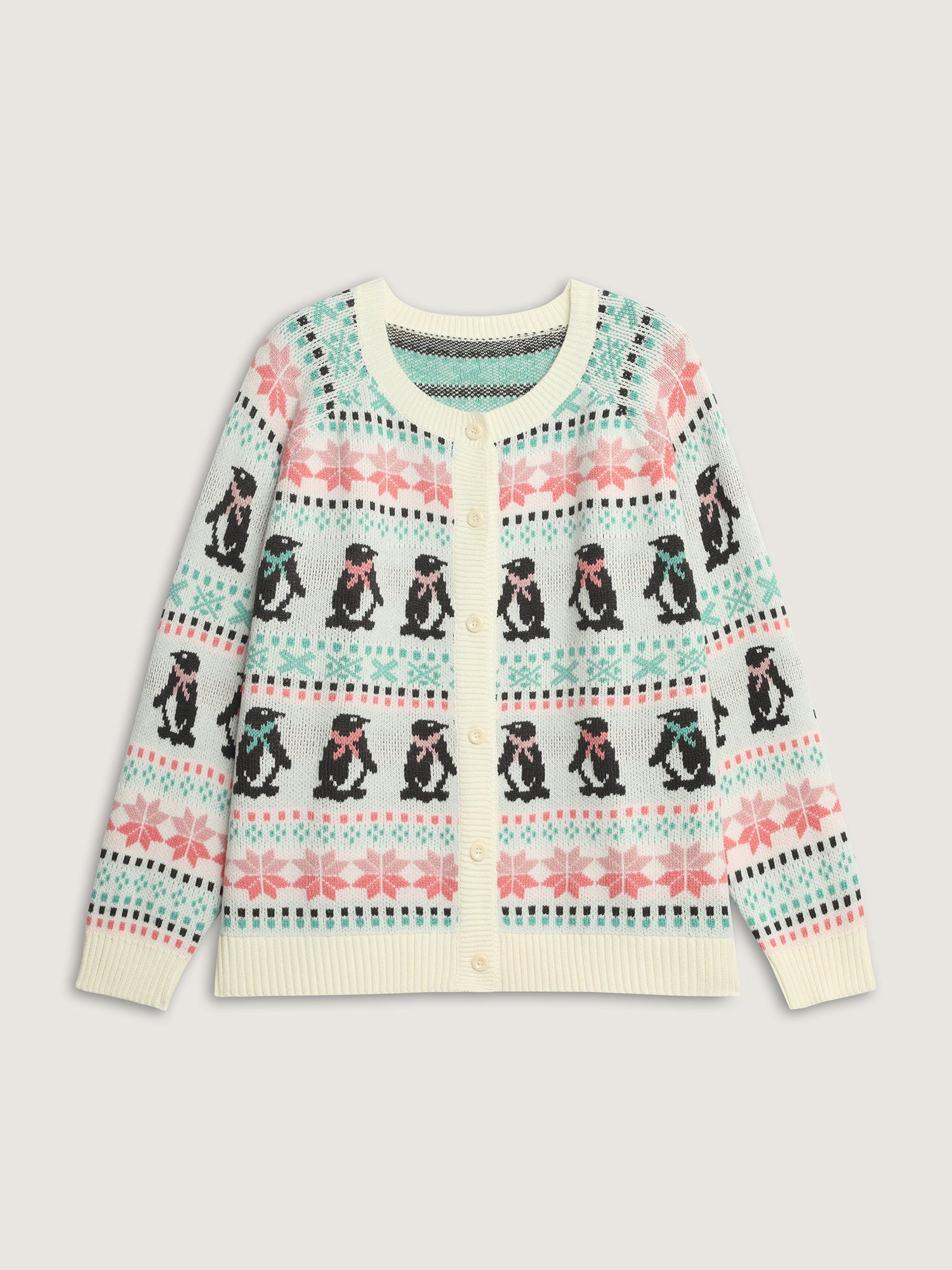 Shop Supersoft Festive Penguin Pattern Jacquard Knit Cardigan now and redefine your style with confidence at BloomChic. Tailored for mid and plus-size women. This trendy Sweaters Cardigans Women, sizes 10-30. Color:Ivory;Style:Playful;Neckline:Round Neck;Sleeve Type:Raglan sleeve;Pattern Type:Animals;Prints:Animal print;Details:Button;Pocket:No-pocket;Belt:No-belt;Closure Type:Button