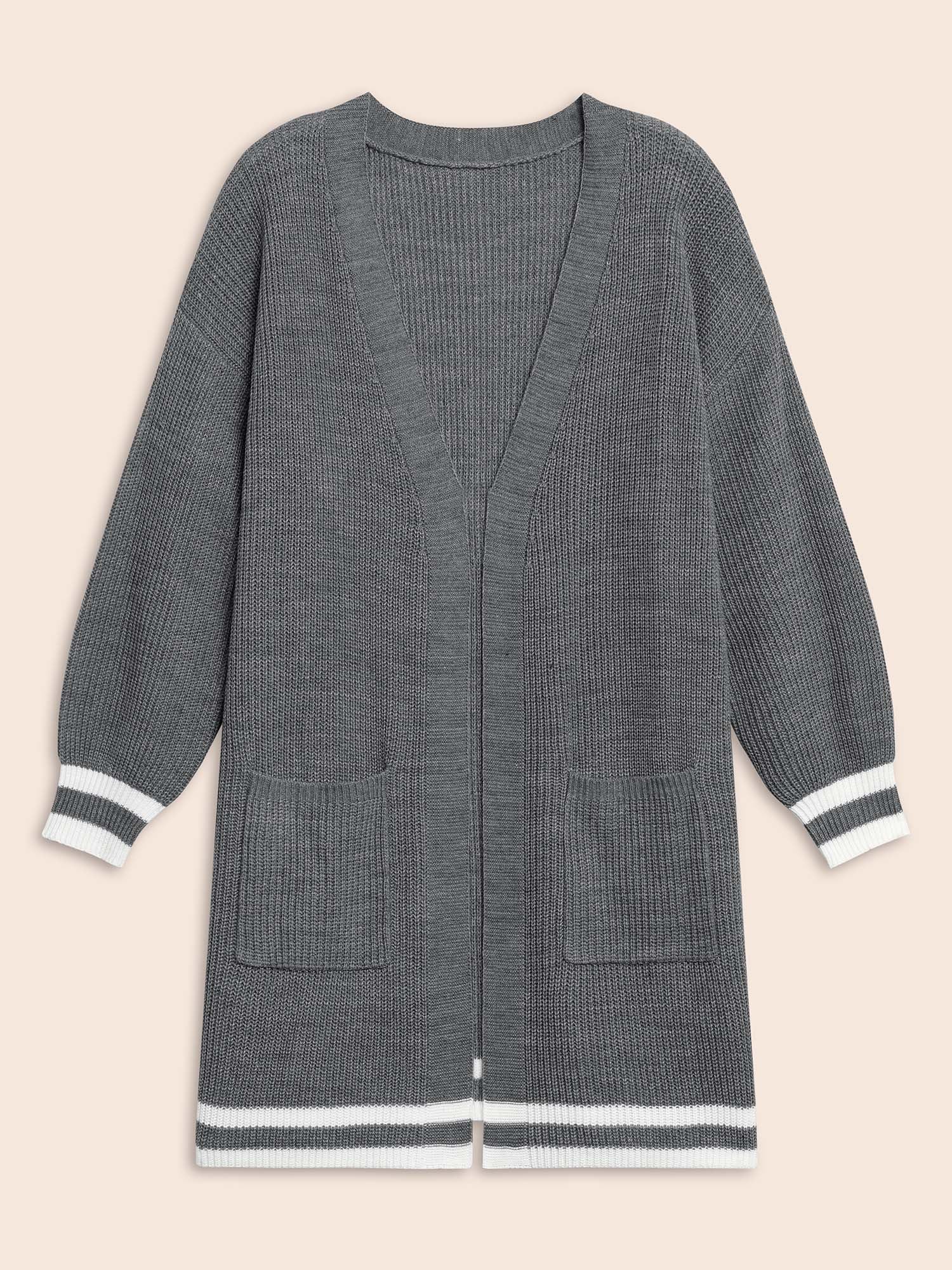 Shop Texture Striped Patchwork Patched Pocket Cardigan now and redefine your style with confidence at BloomChic. Tailored for mid and plus-size women. This trendy Sweaters Cardigans Women, sizes 10-30. Season:Winter;Color:DarkGray;Style:Casual;Neckline:Kimono collar;Sleeve Type:Drop shoulder sleeve;Prints:Non;Details:Contrast, Texture;Pocket:Patch pocket;Belt:No-belt;Closure Type:Open front without closure